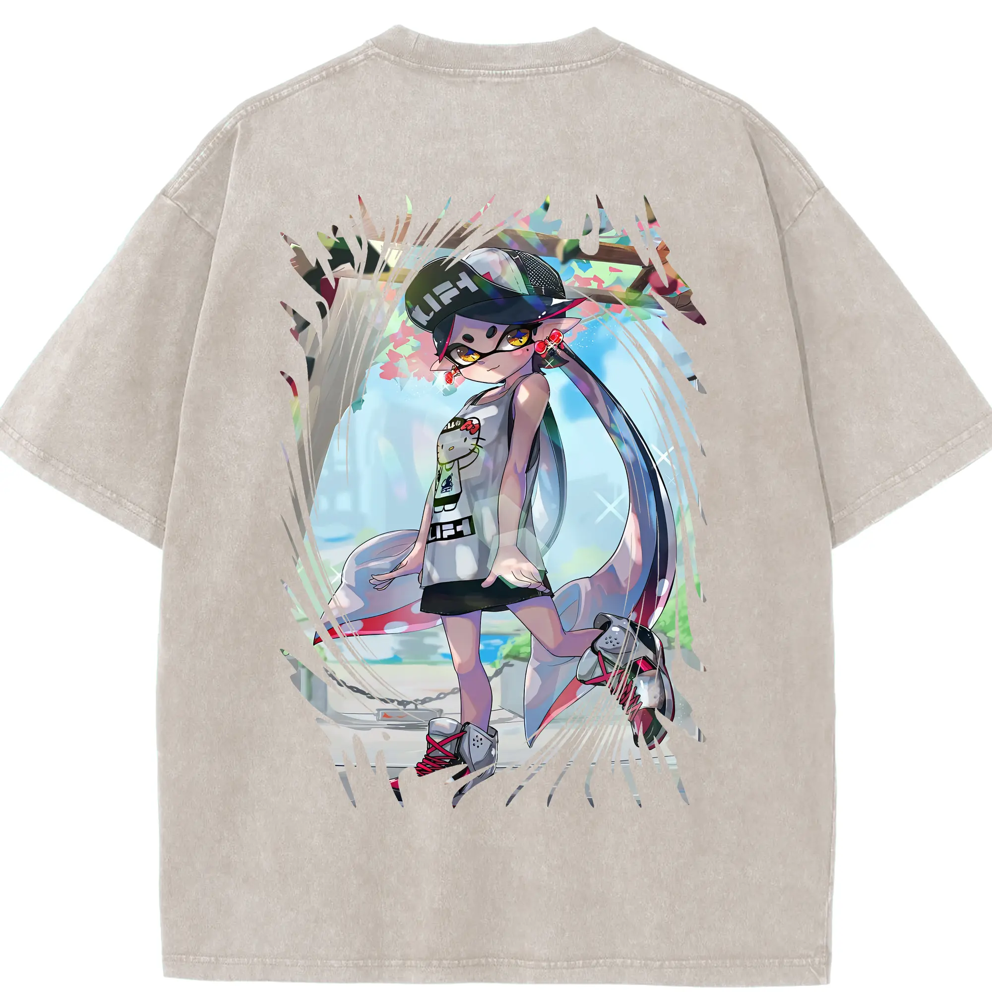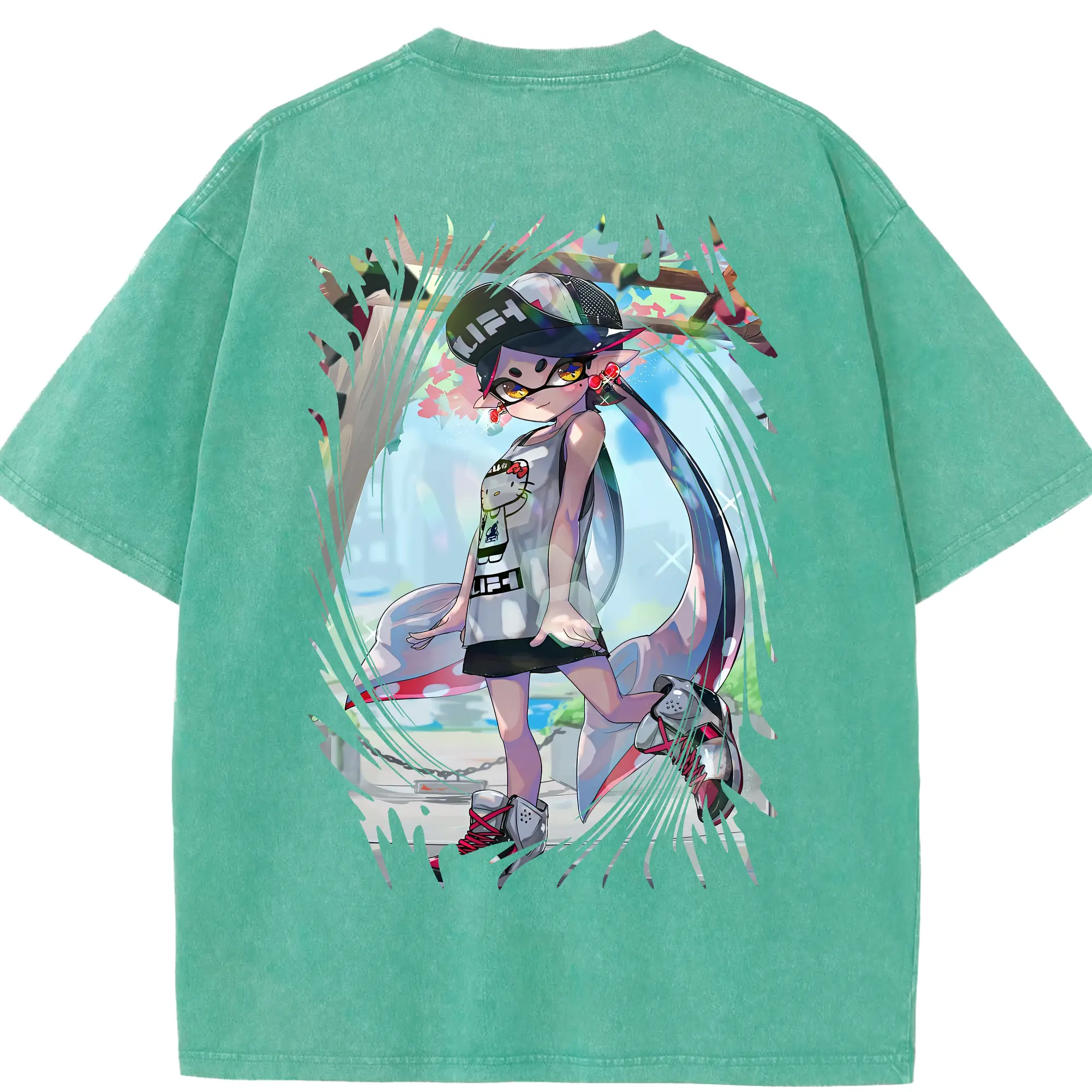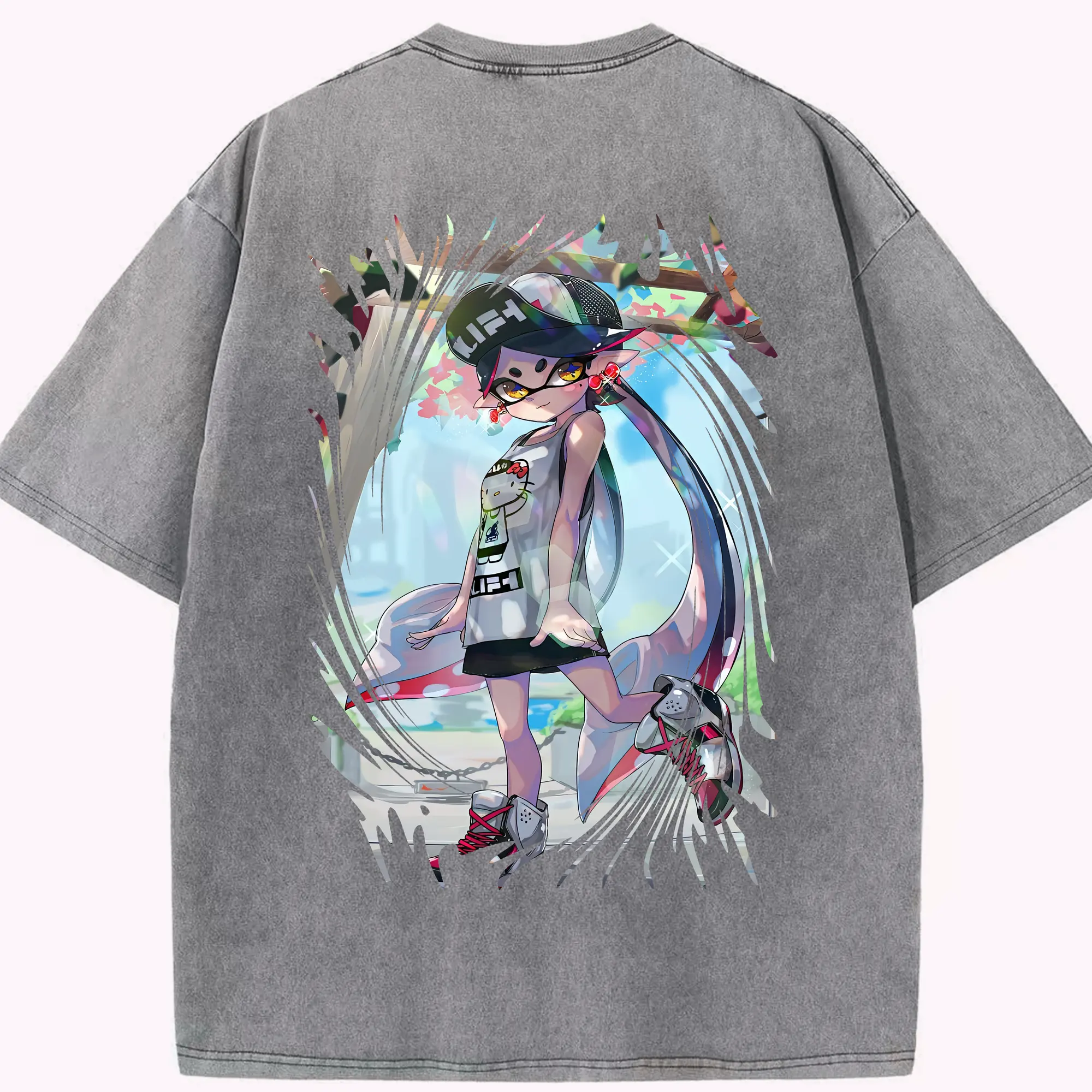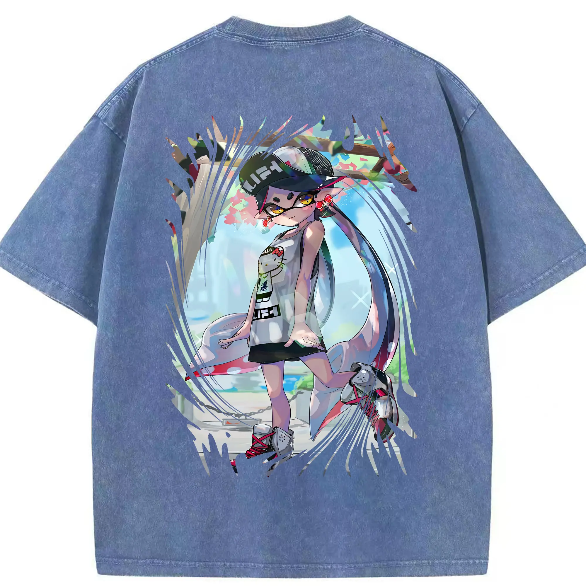 スプラトゥーン グッズ,シオカラーズ アオリ - 綿100% ヴィンテージ風 半袖Tシャツ ・ フロントプリント ・ 柔らか肌触り ・ 通気性 快適 ・ スポーツ カジュアル 外出用