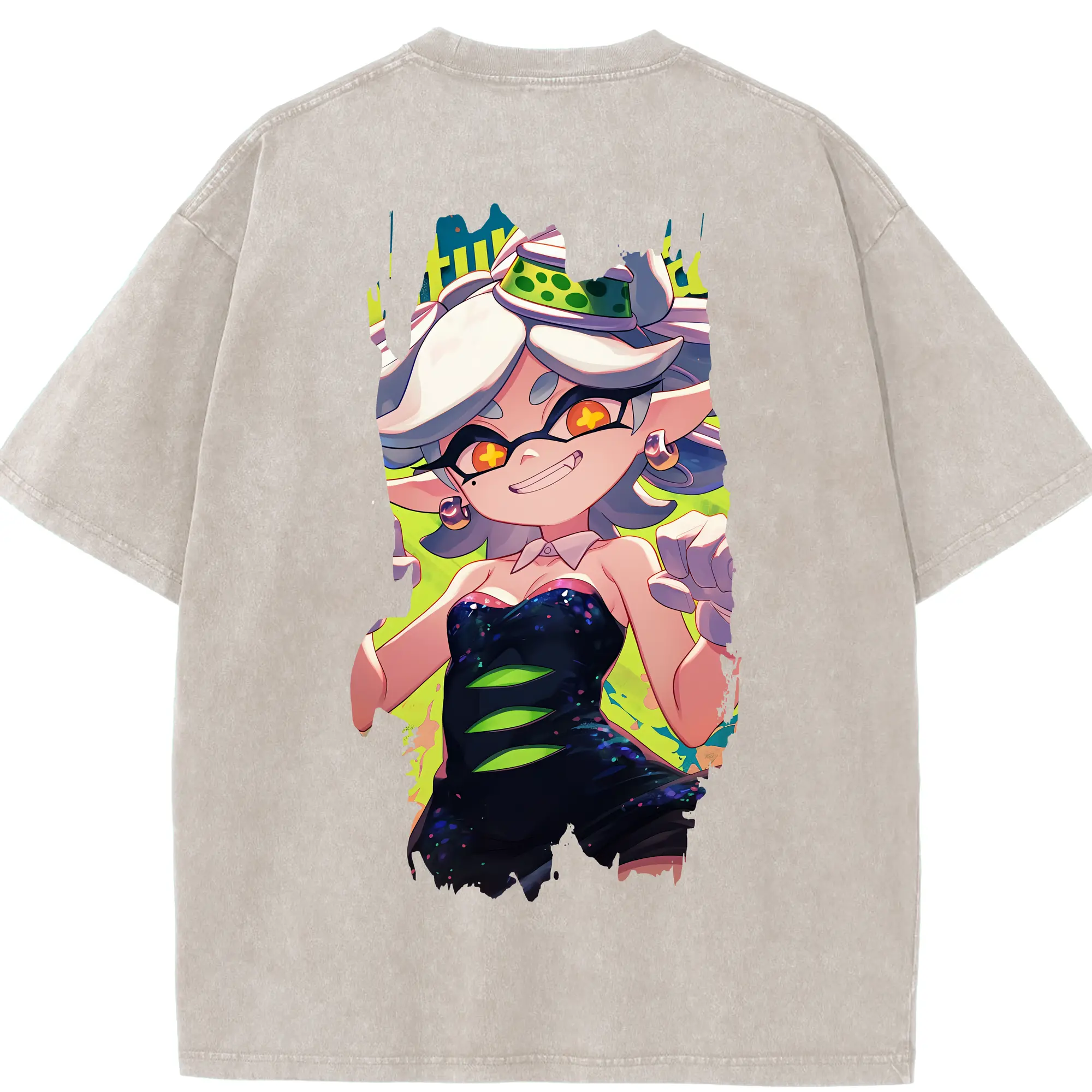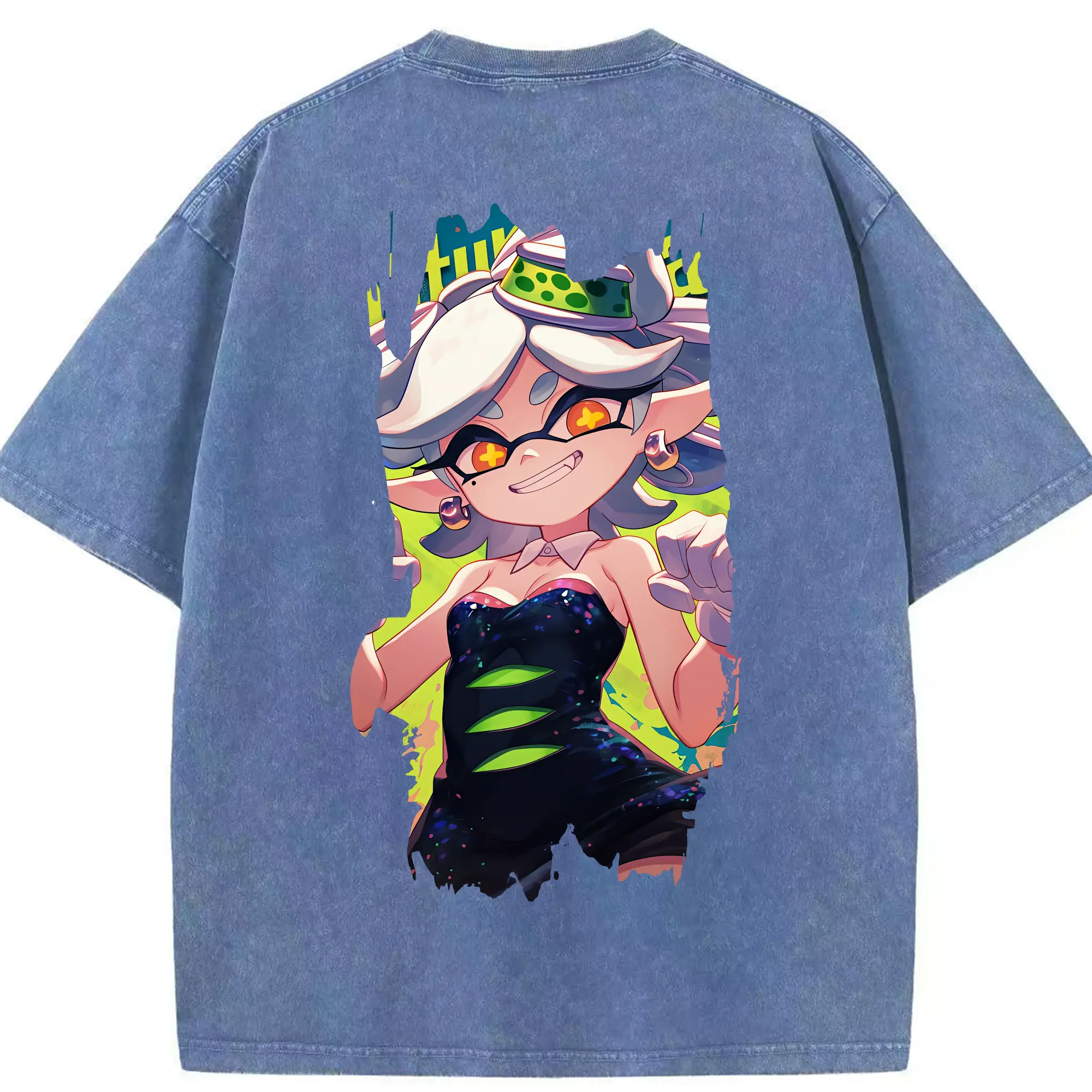 スプラトゥーン グッズ,シオカラーズ ホタル - 綿100% ヴィンテージ風 半袖Tシャツ ・ フロントプリント ・ 柔らか肌触り ・ 通気性 快適 ・ スポーツ カジュアル 外出用