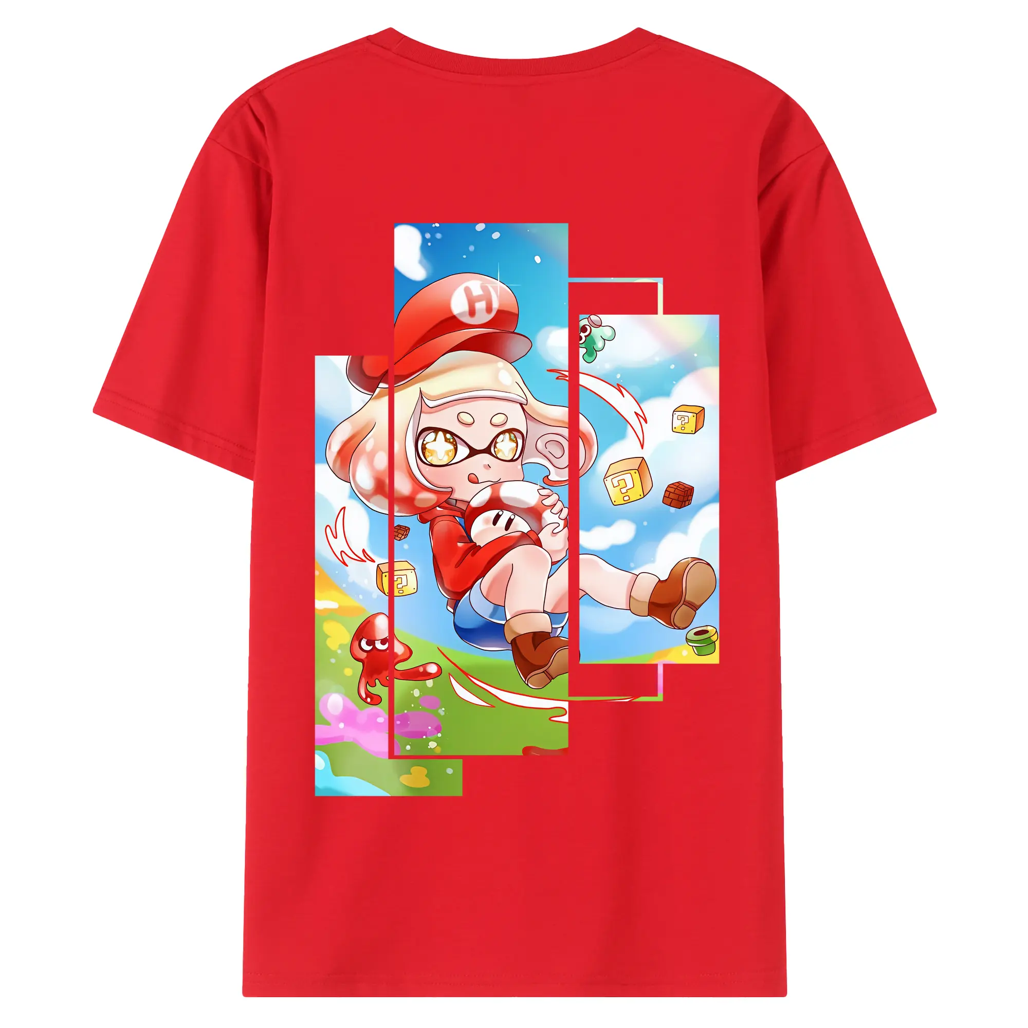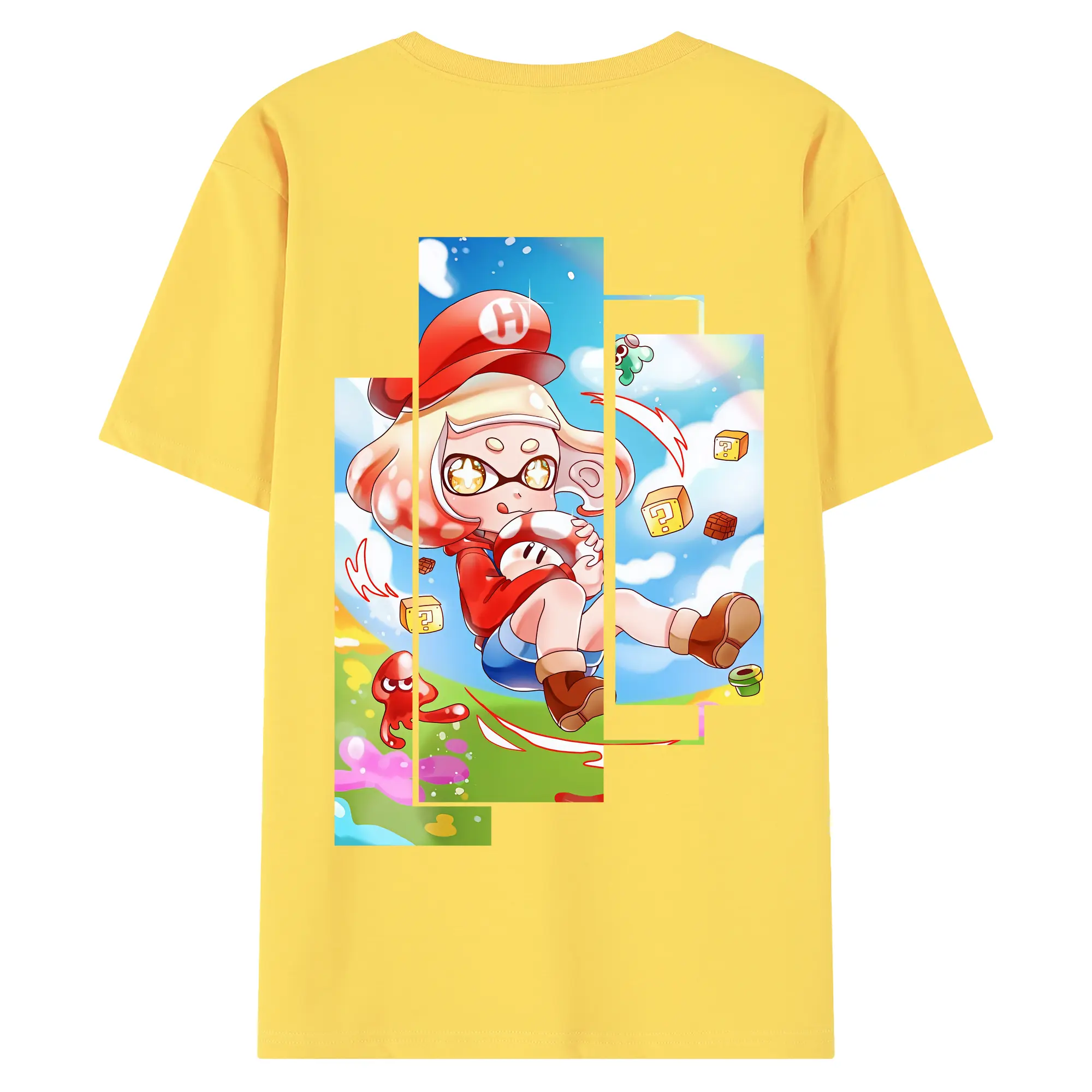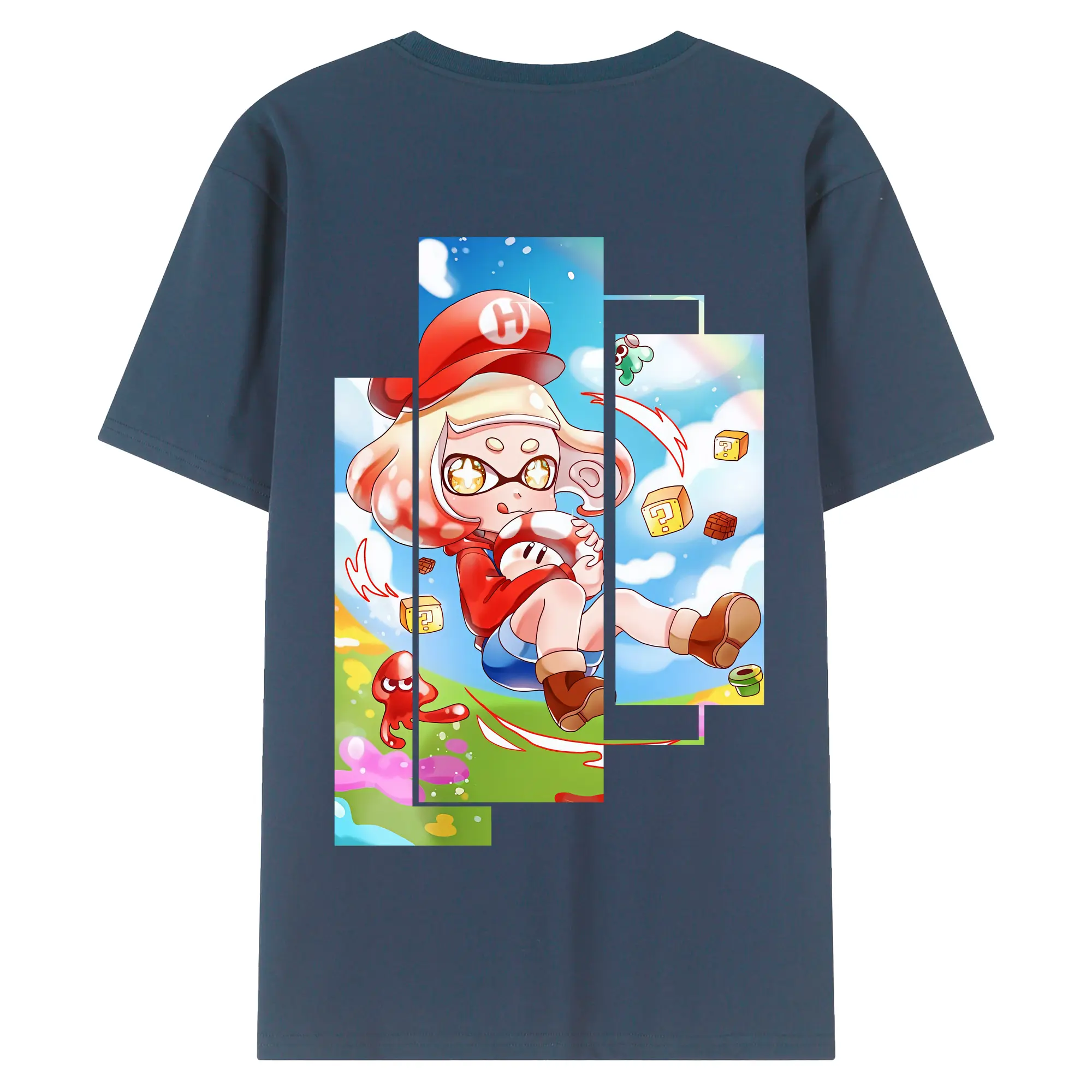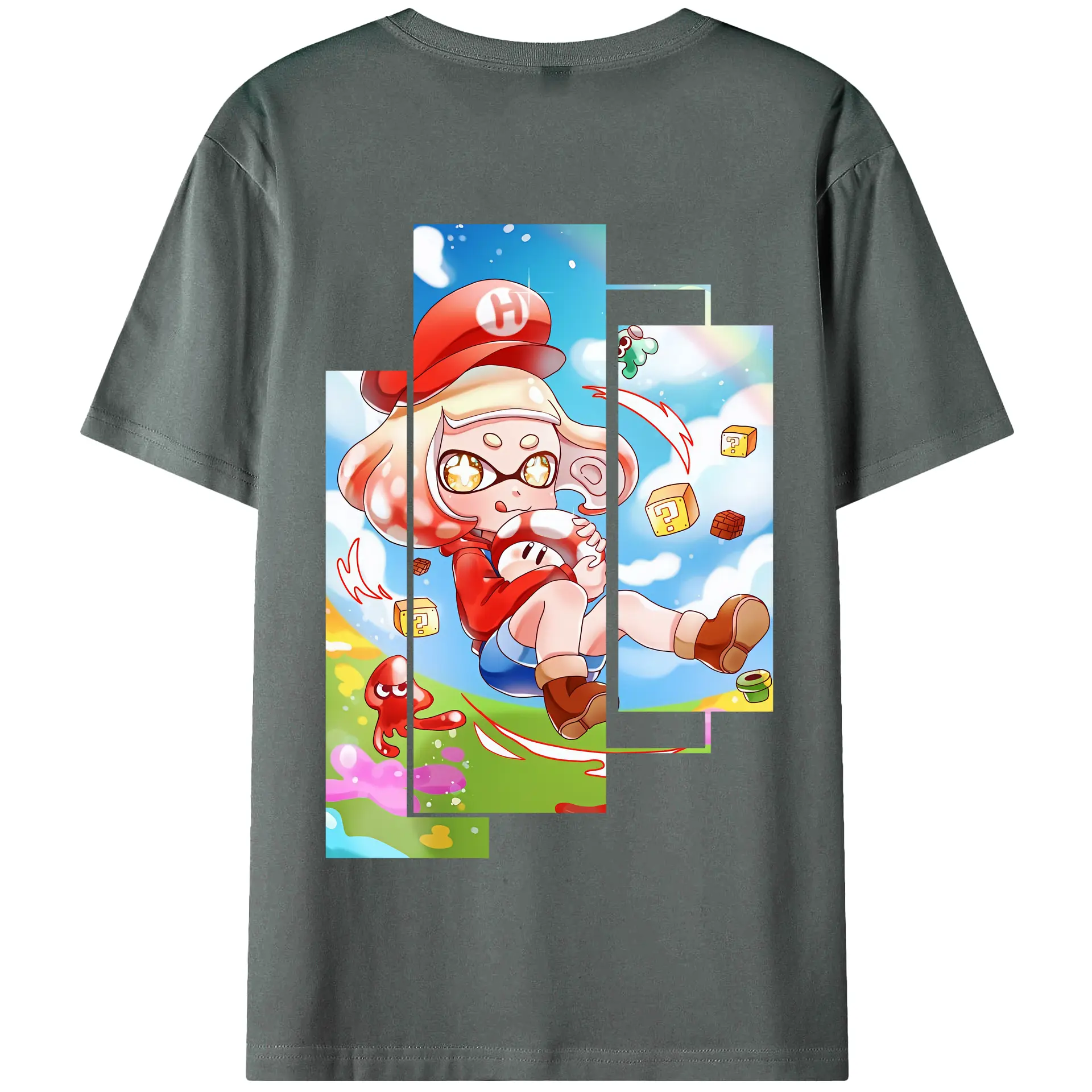 スプラトゥーン グッズ,ヒメ - 綿100% ヴィンテージ風 半袖Tシャツ ・ 背面プリント ・ 柔らか肌触り ・ 通気性 快適 ・ スポーツ カジュアル 外出用