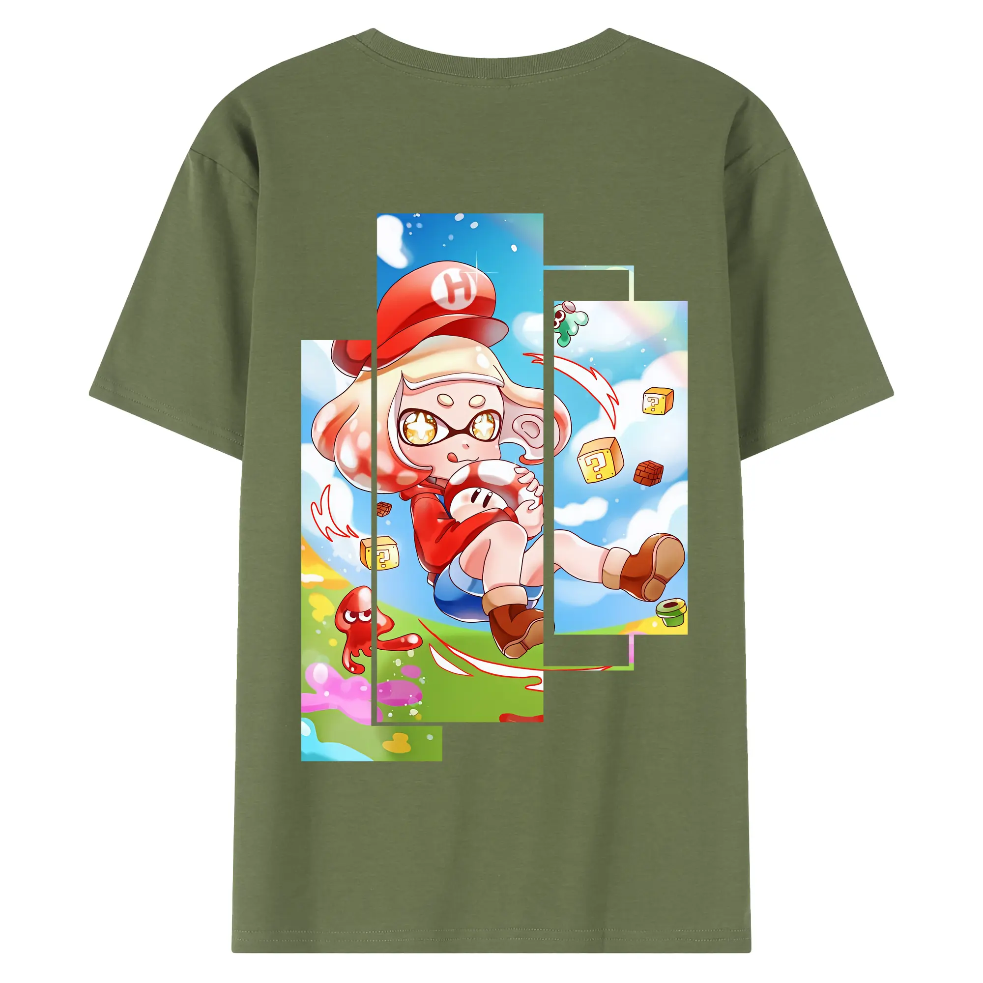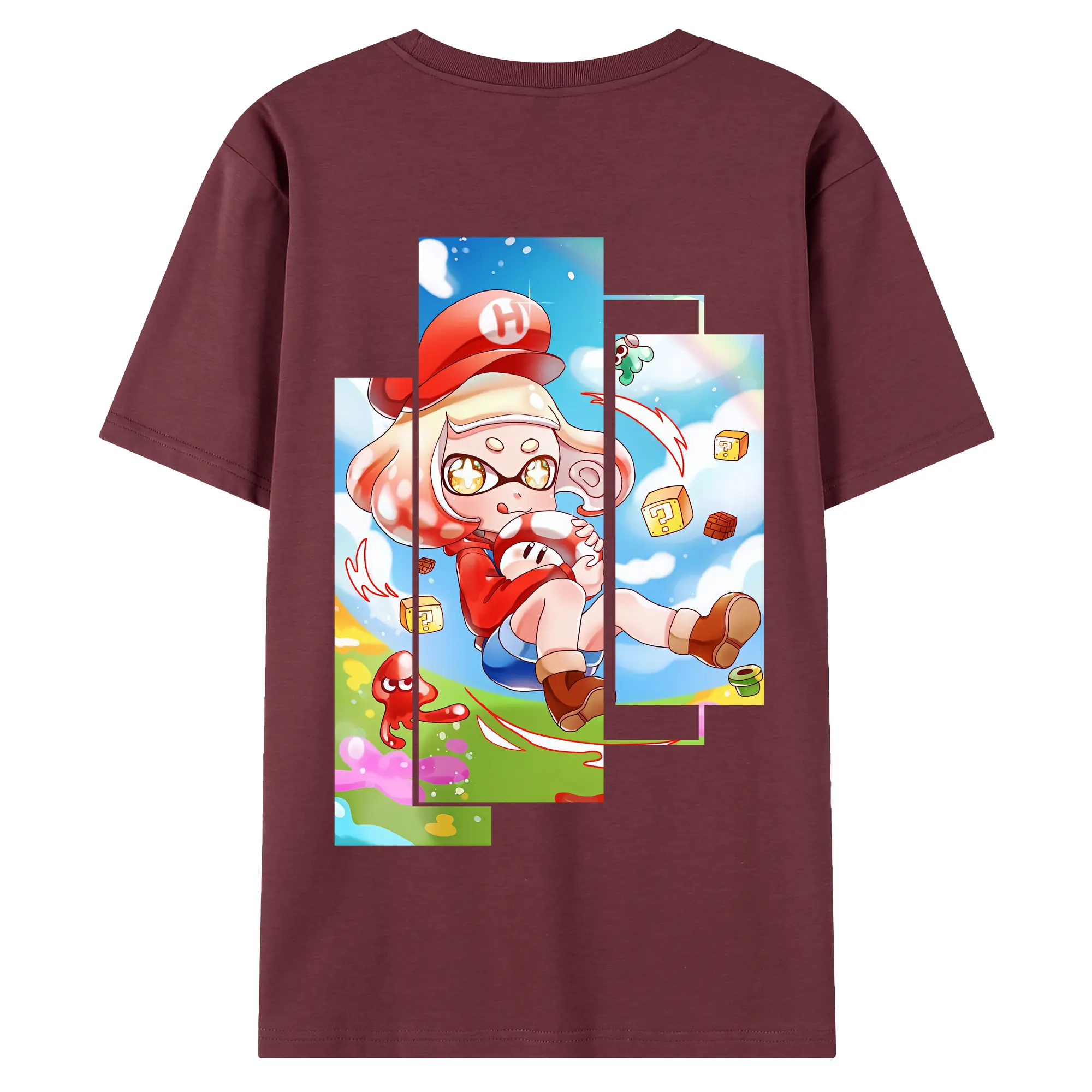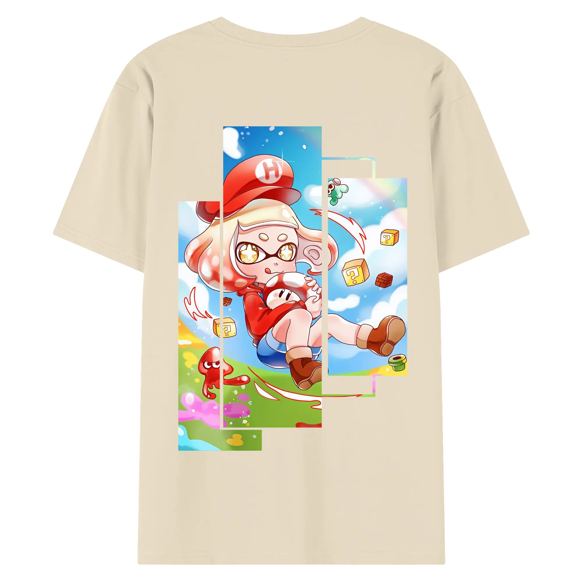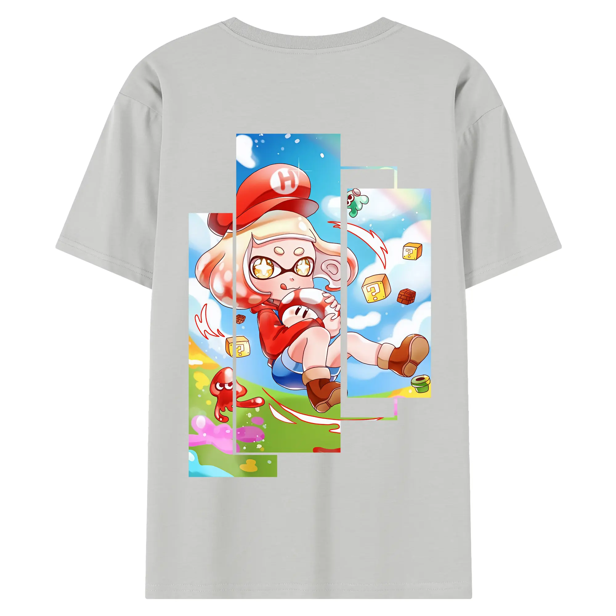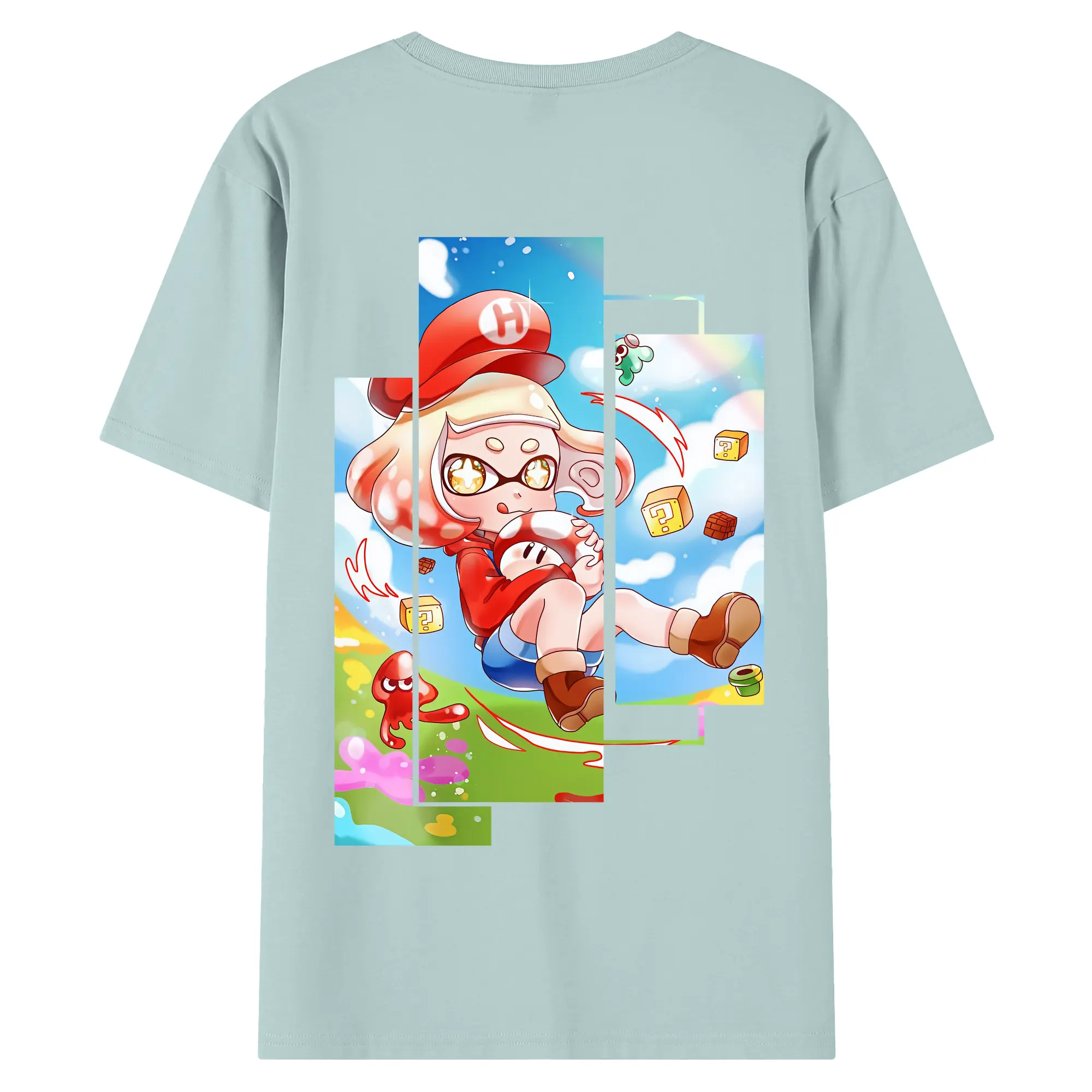 スプラトゥーン グッズ,ヒメ - 綿100% ヴィンテージ風 半袖Tシャツ ・ 背面プリント ・ 柔らか肌触り ・ 通気性 快適 ・ スポーツ カジュアル 外出用