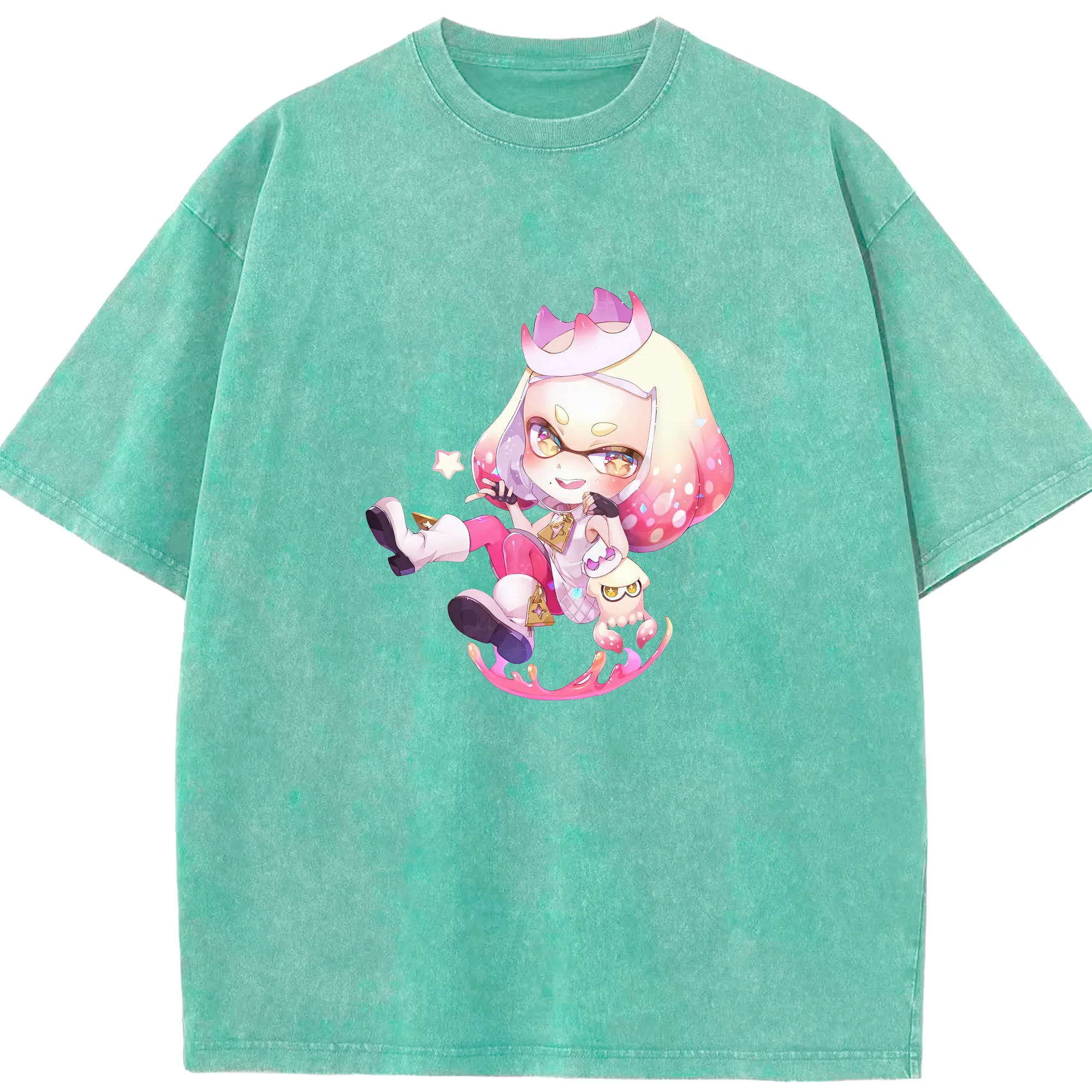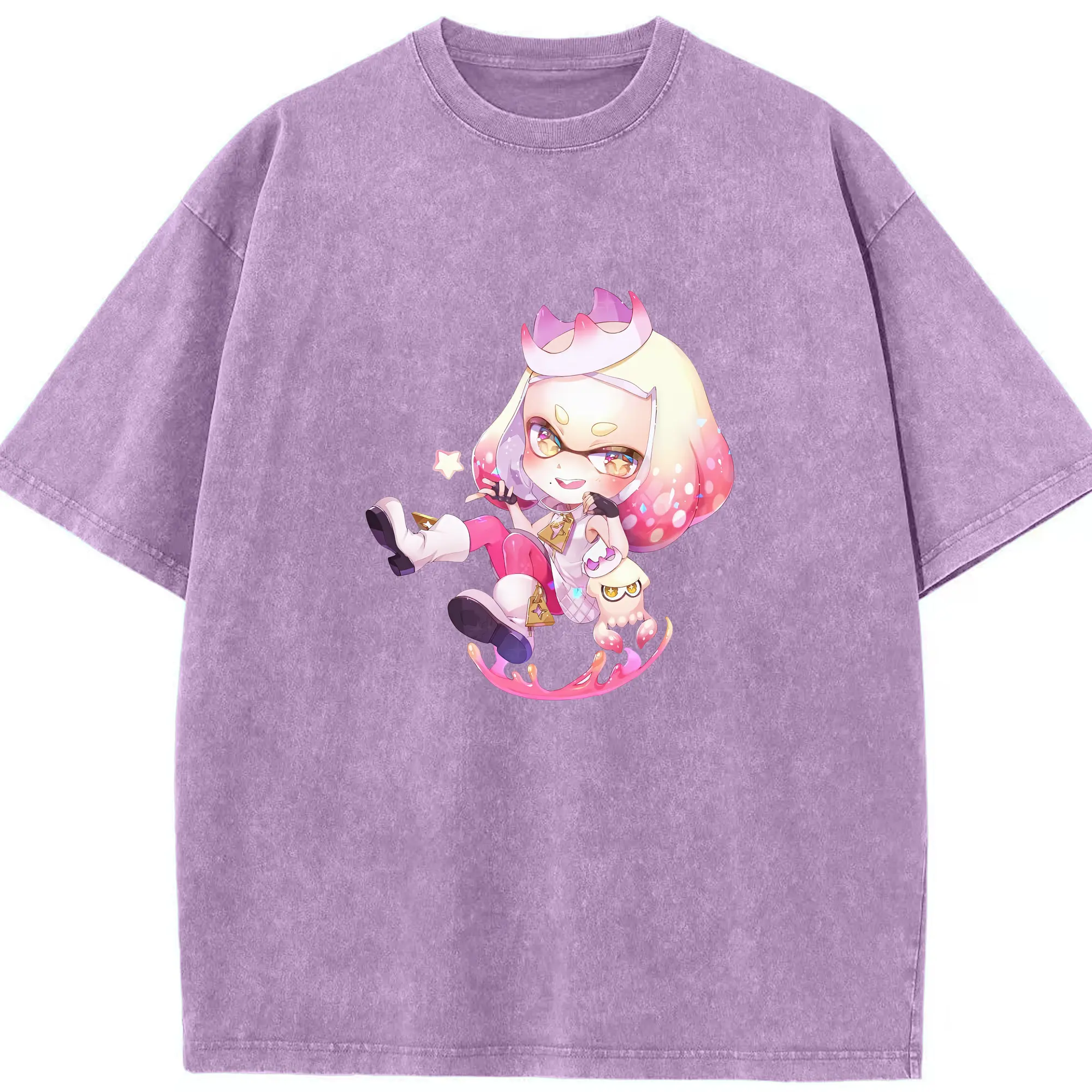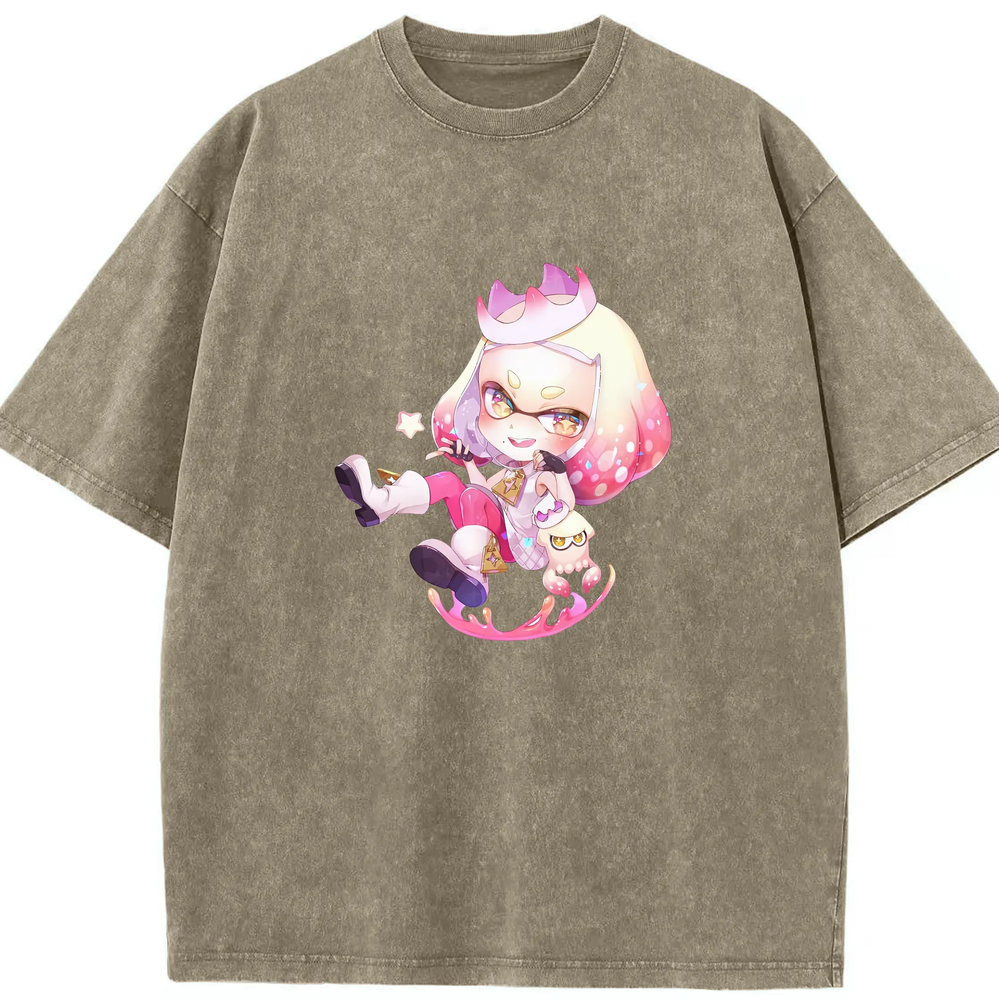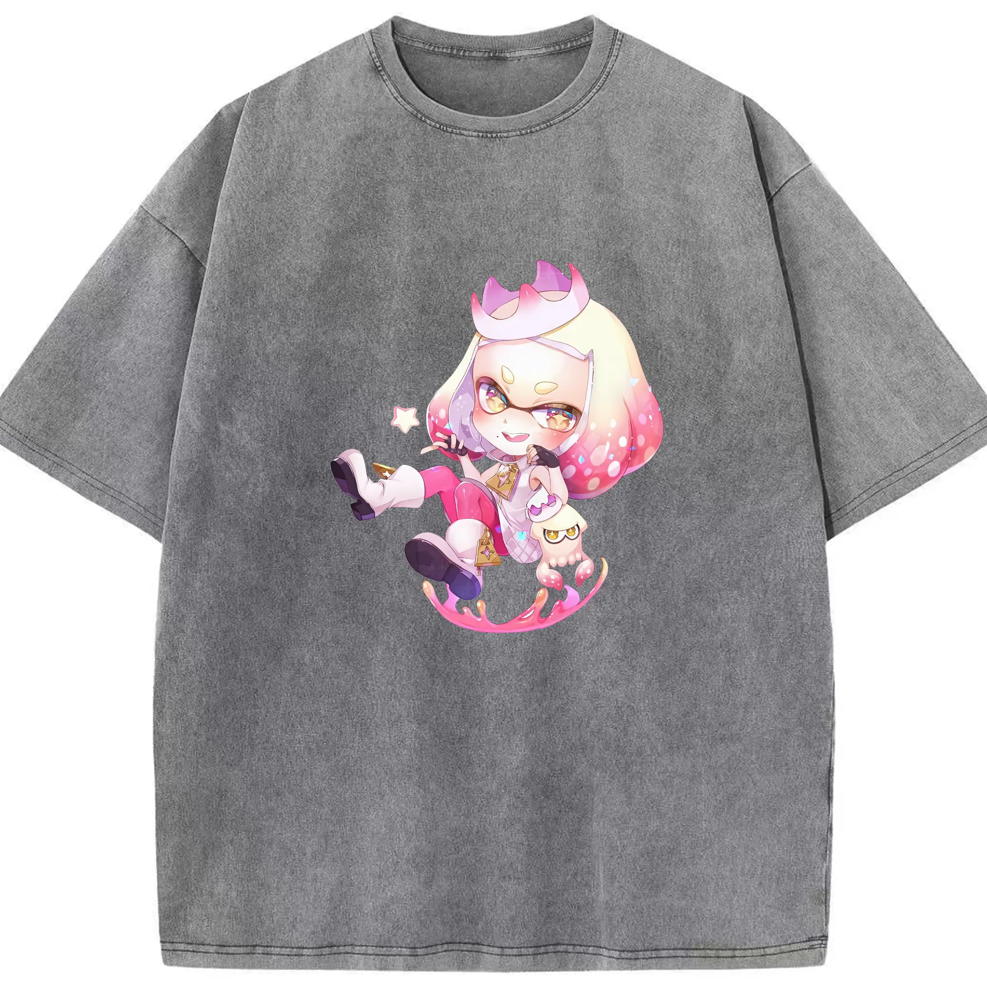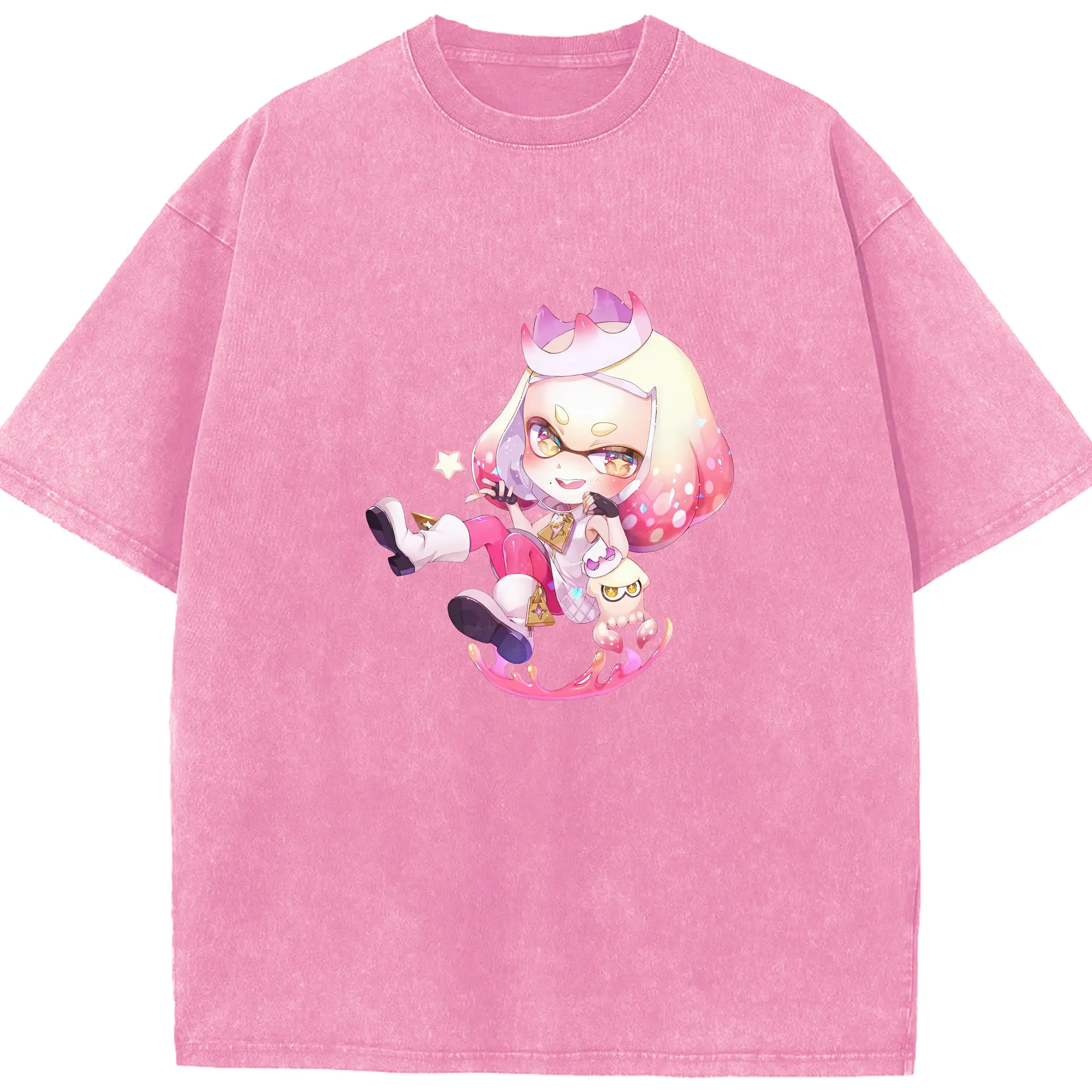 スプラトゥーン グッズ,ヒメ - 綿100% ヴィンテージ風 半袖Tシャツ ・ 背面プリント ・ 柔らか肌触り ・ 通気性 快適 ・ スポーツ カジュアル 外出用