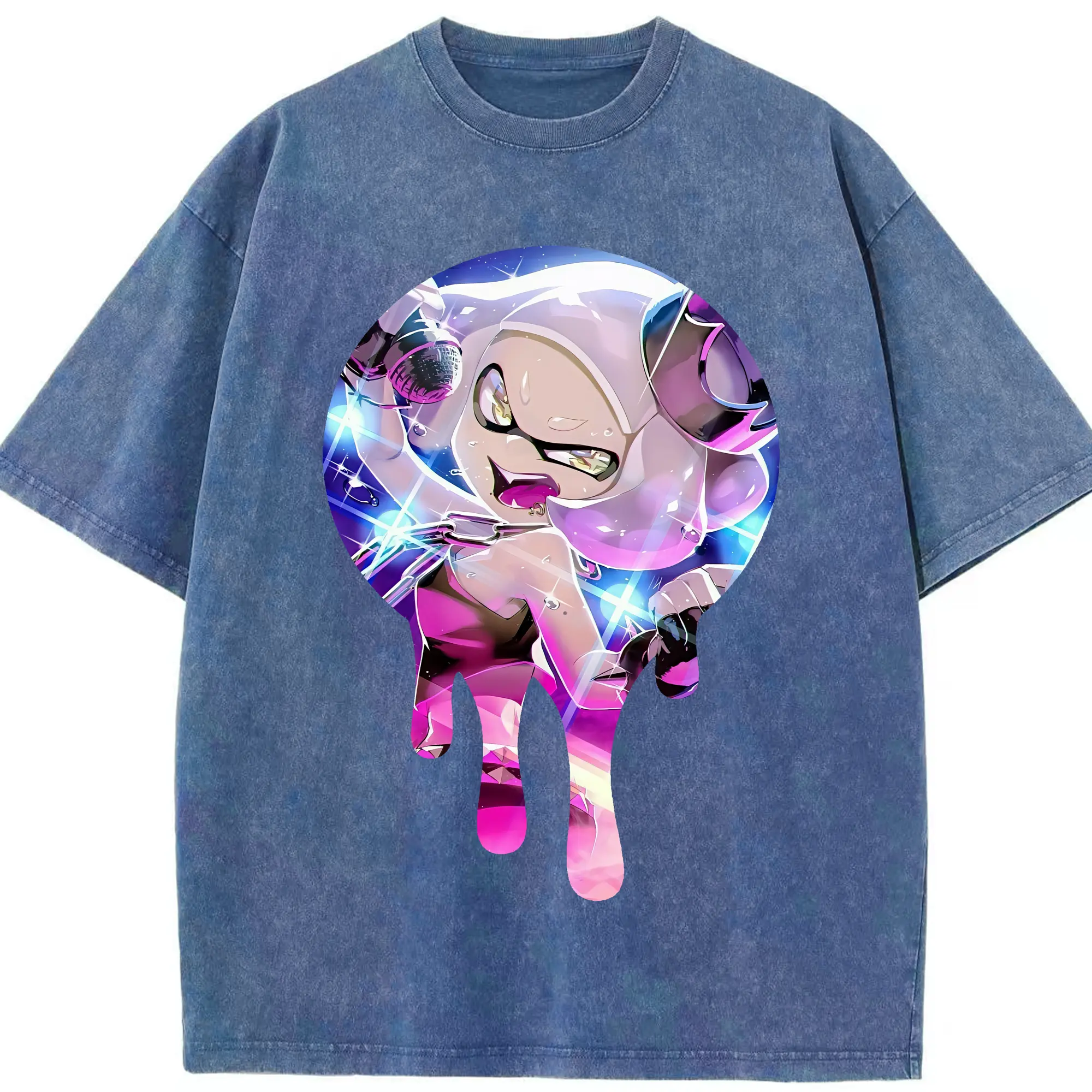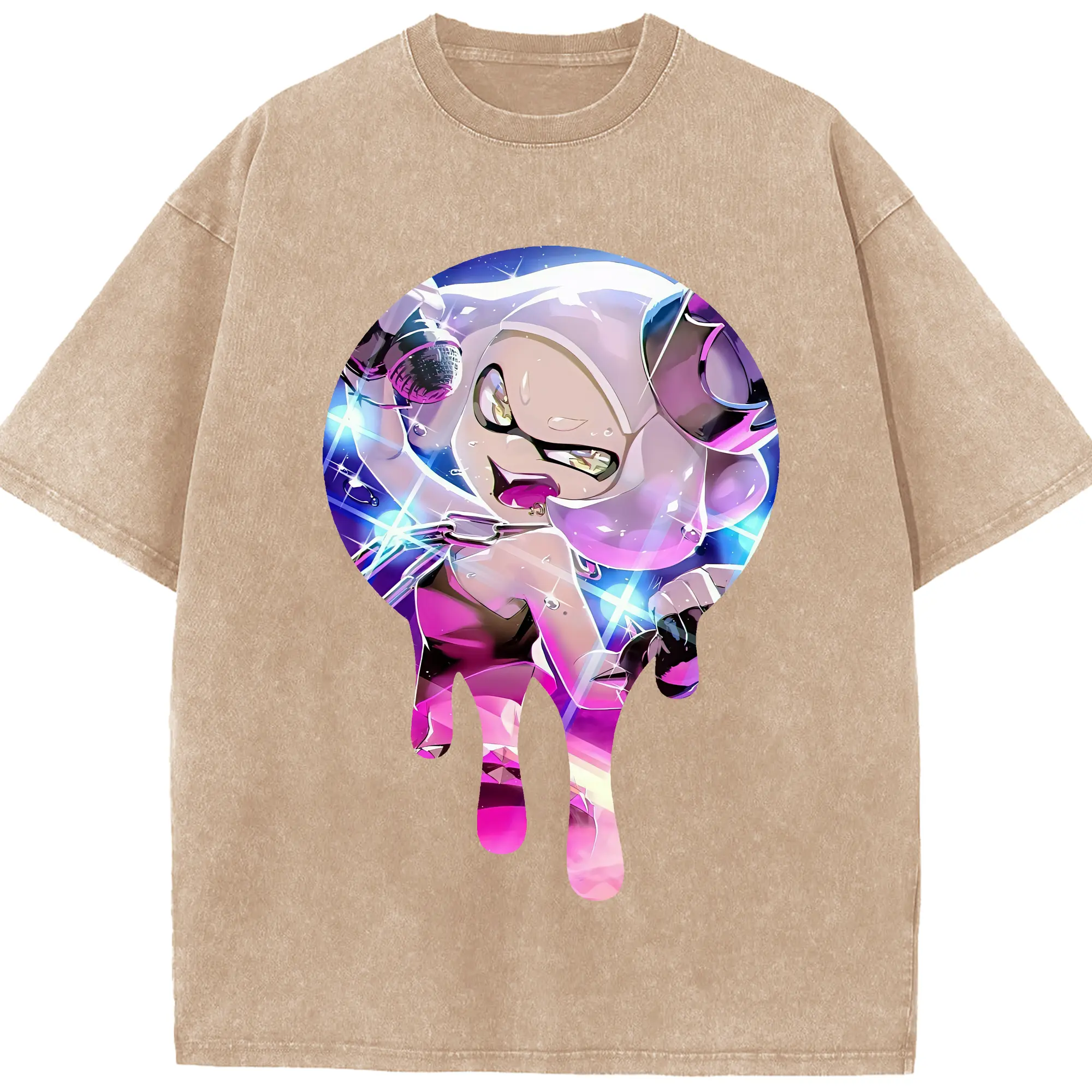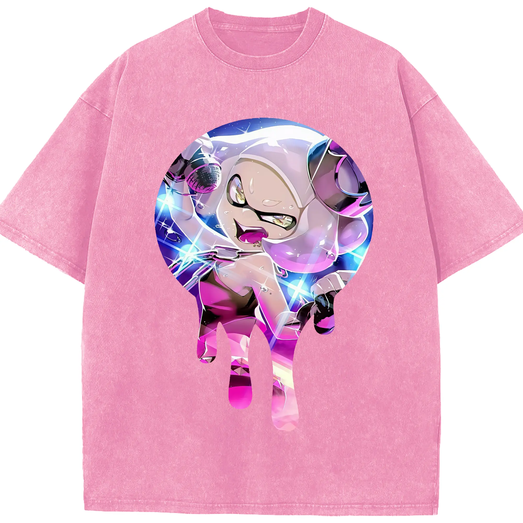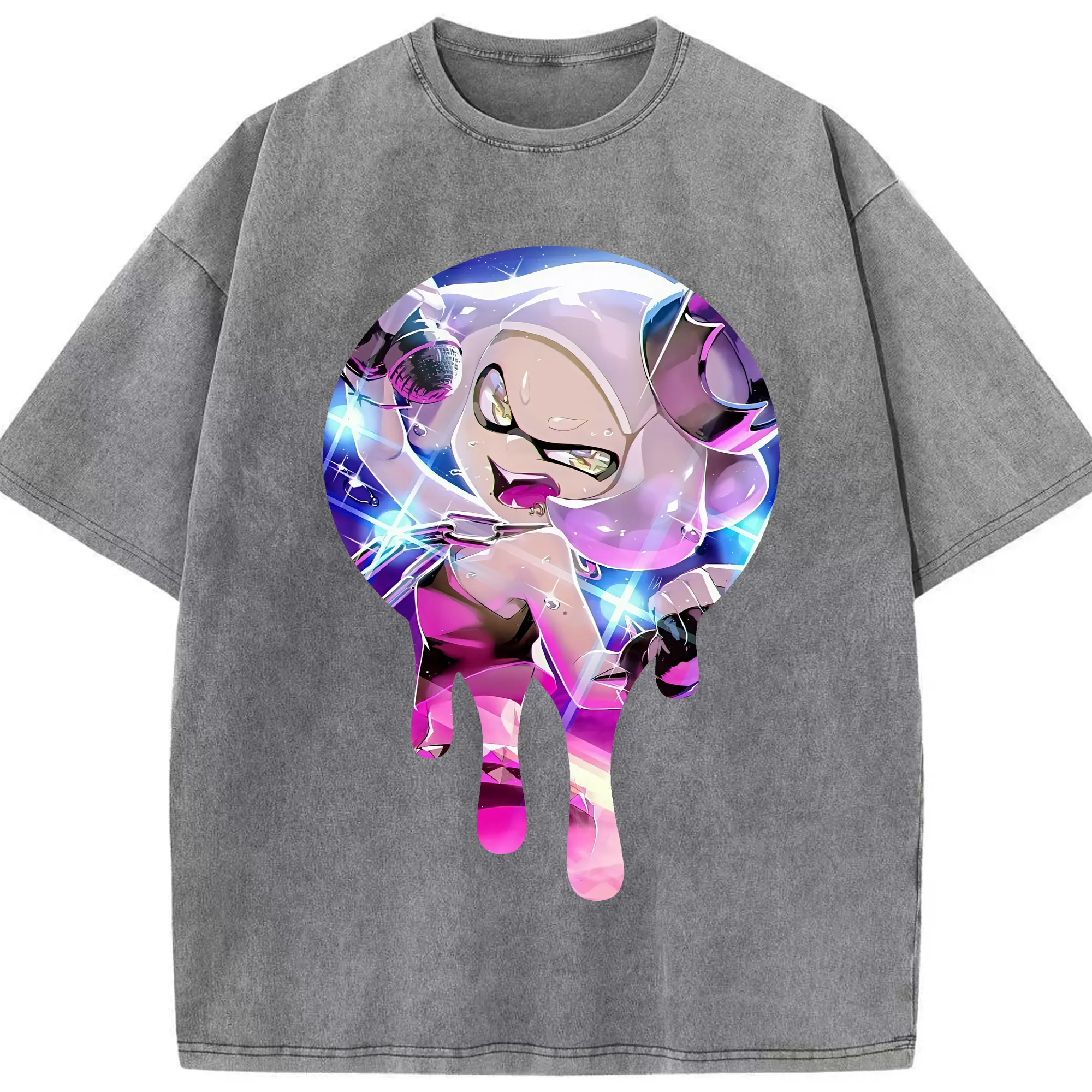スプラトゥーン グッズ,ヒメ - 綿100% ヴィンテージ風 半袖Tシャツ ・ 背面プリント ・ 柔らか肌触り ・ 通気性 快適 ・ スポーツ カジュアル 外出用