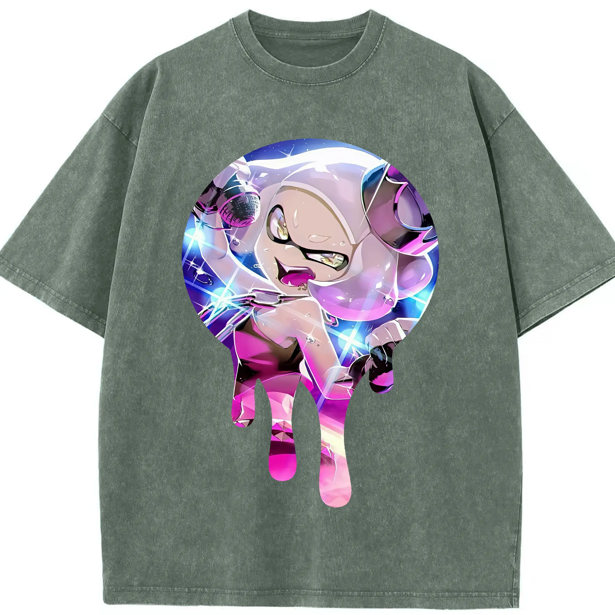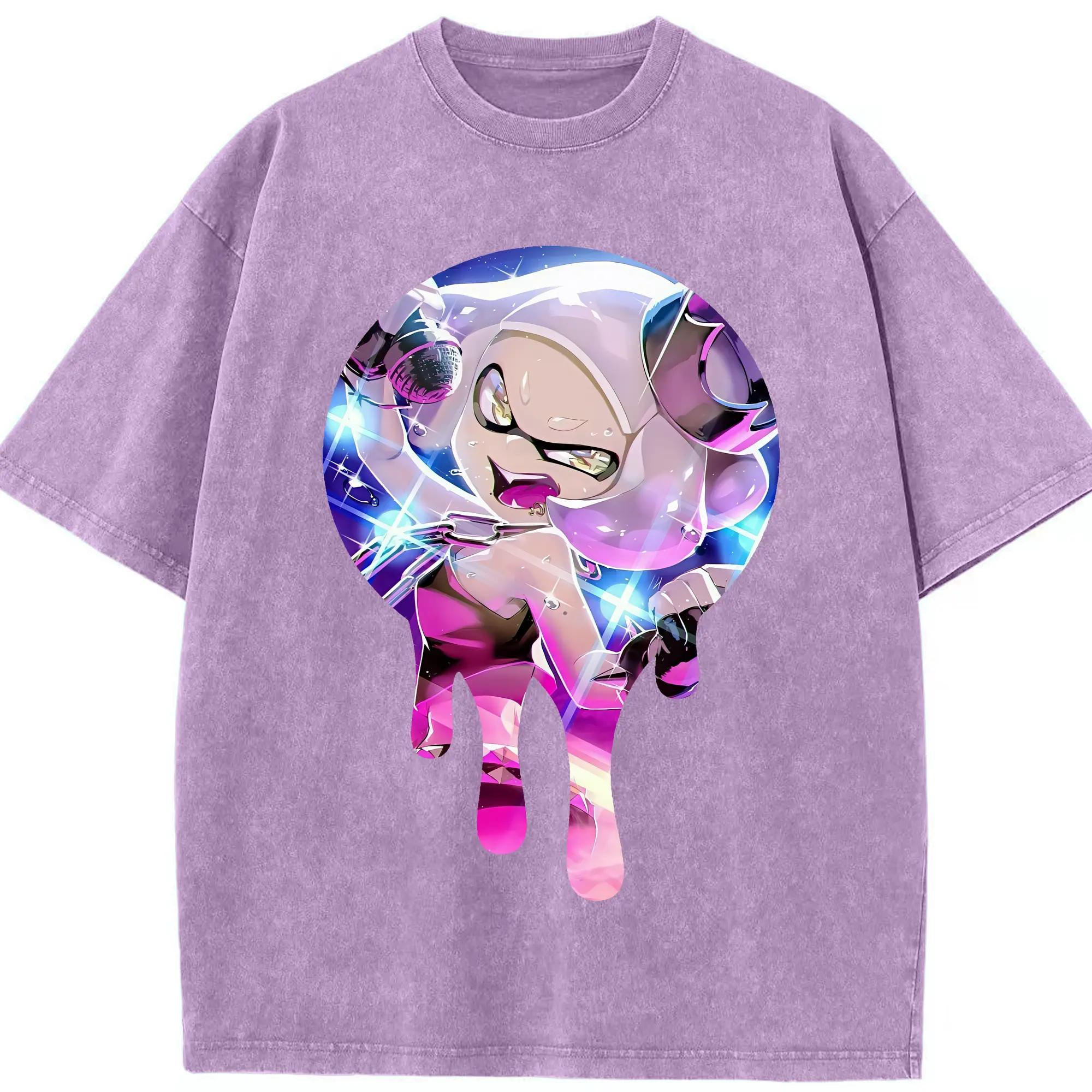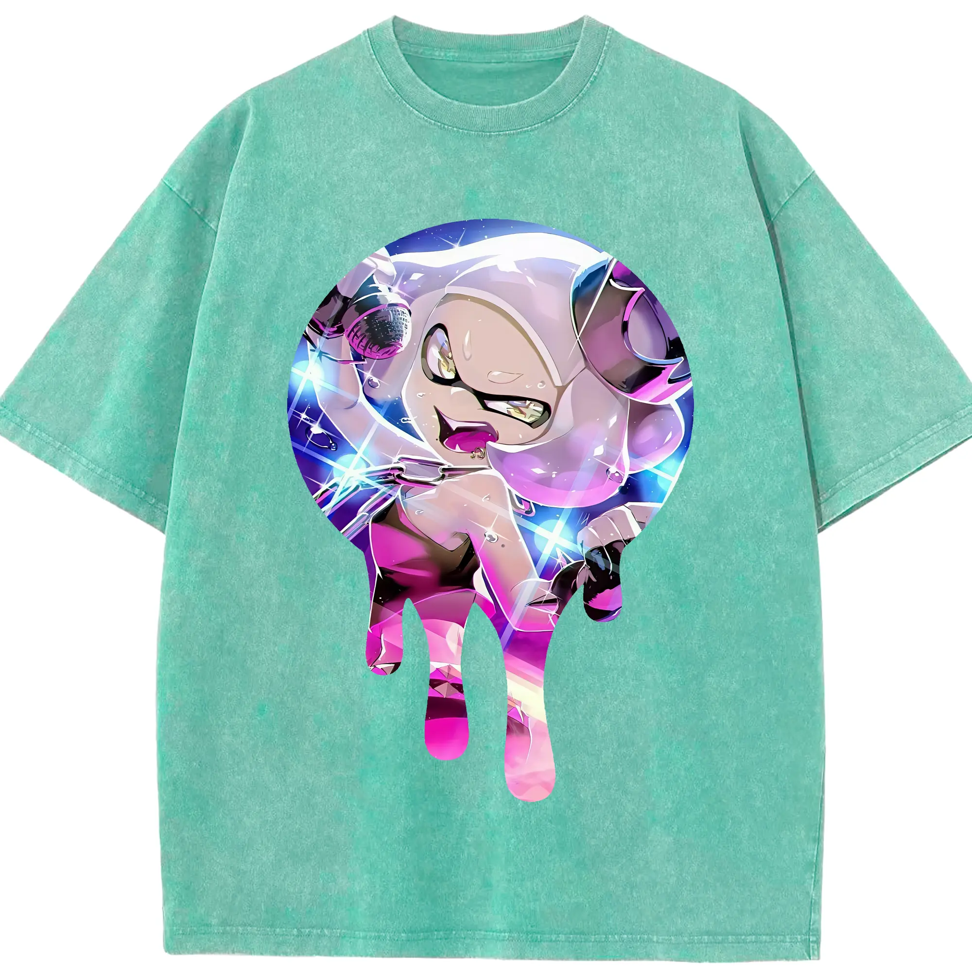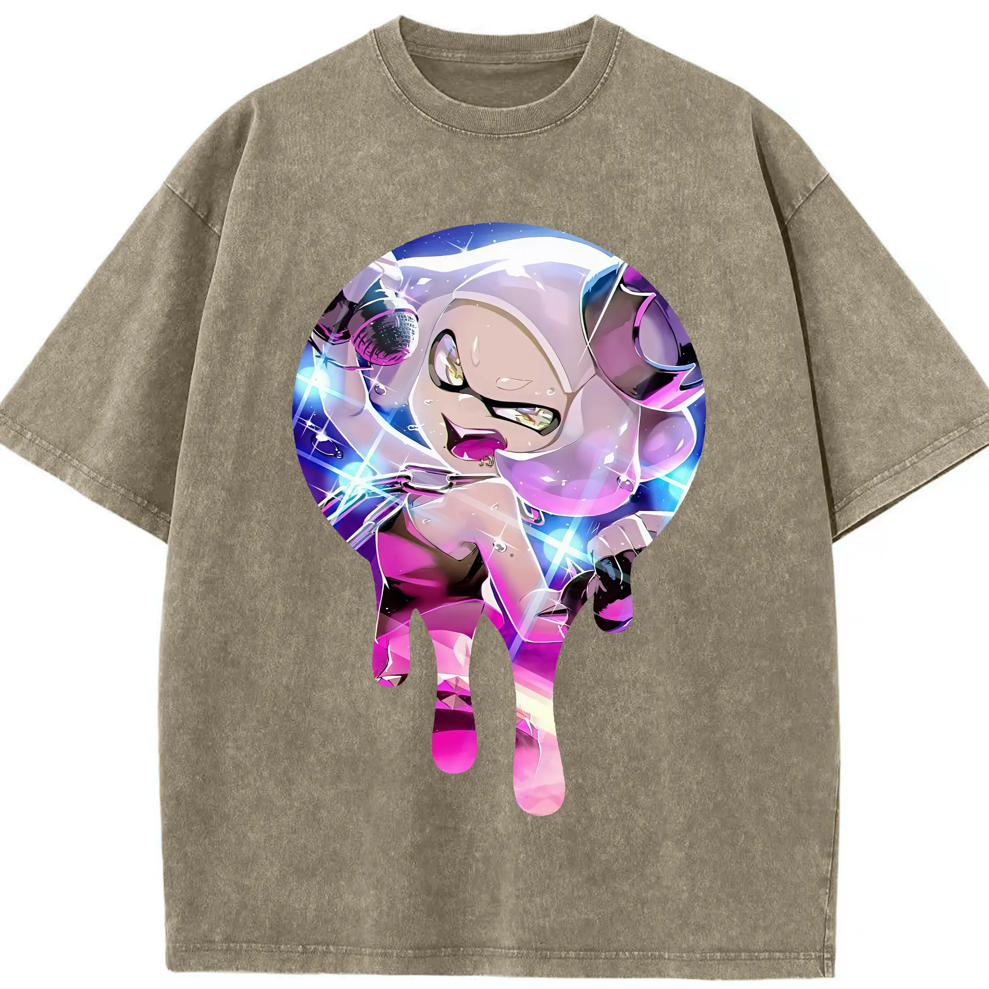 スプラトゥーン グッズ,ヒメ - 綿100% ヴィンテージ風 半袖Tシャツ ・ 背面プリント ・ 柔らか肌触り ・ 通気性 快適 ・ スポーツ カジュアル 外出用