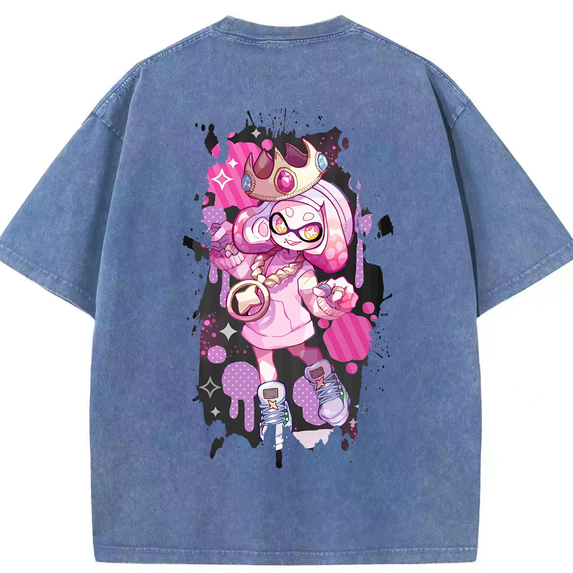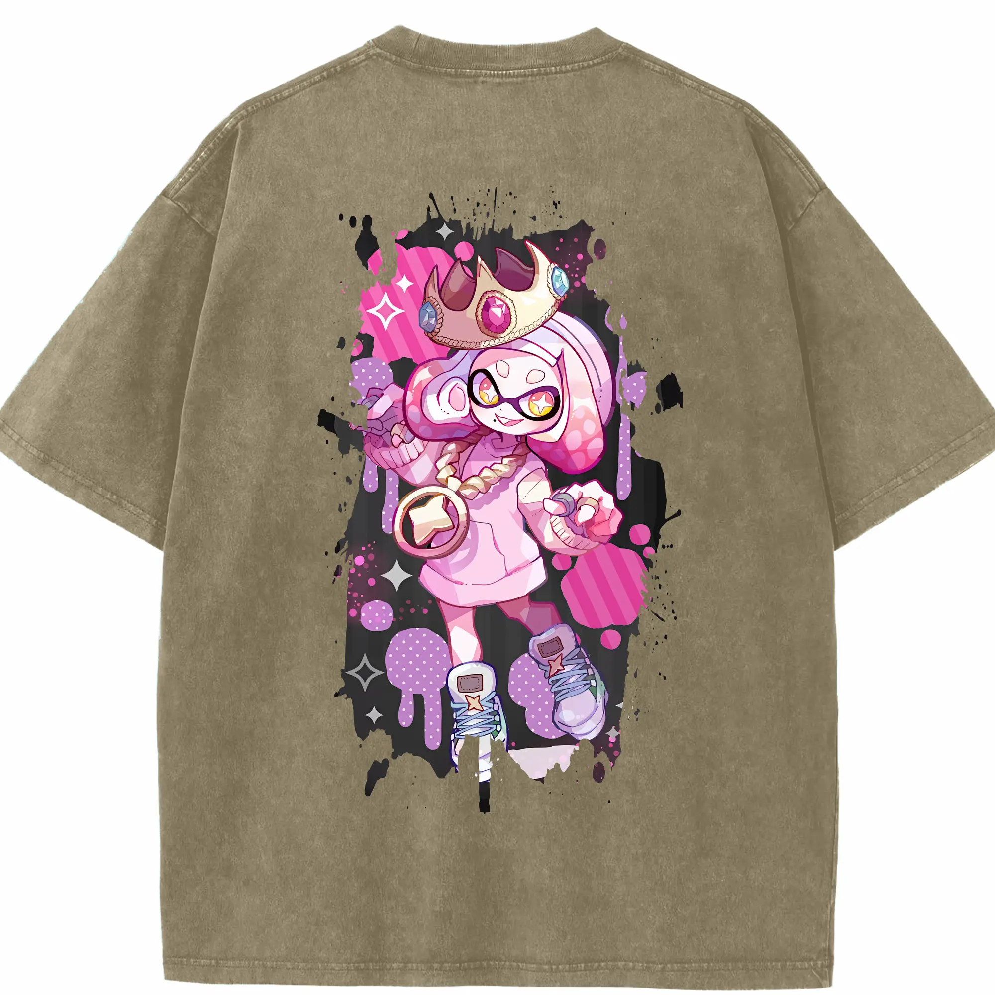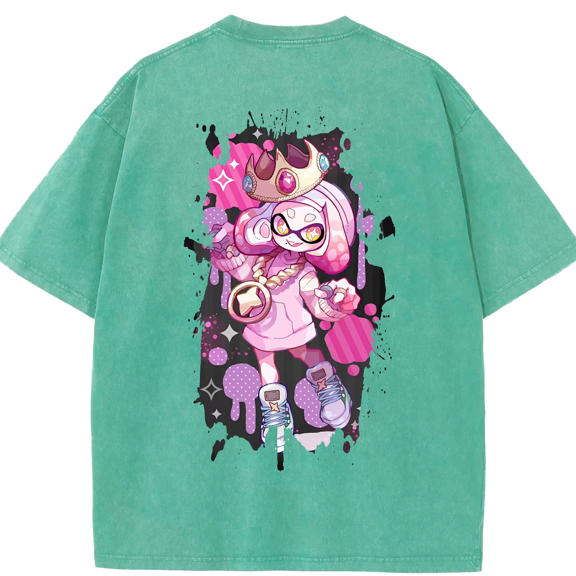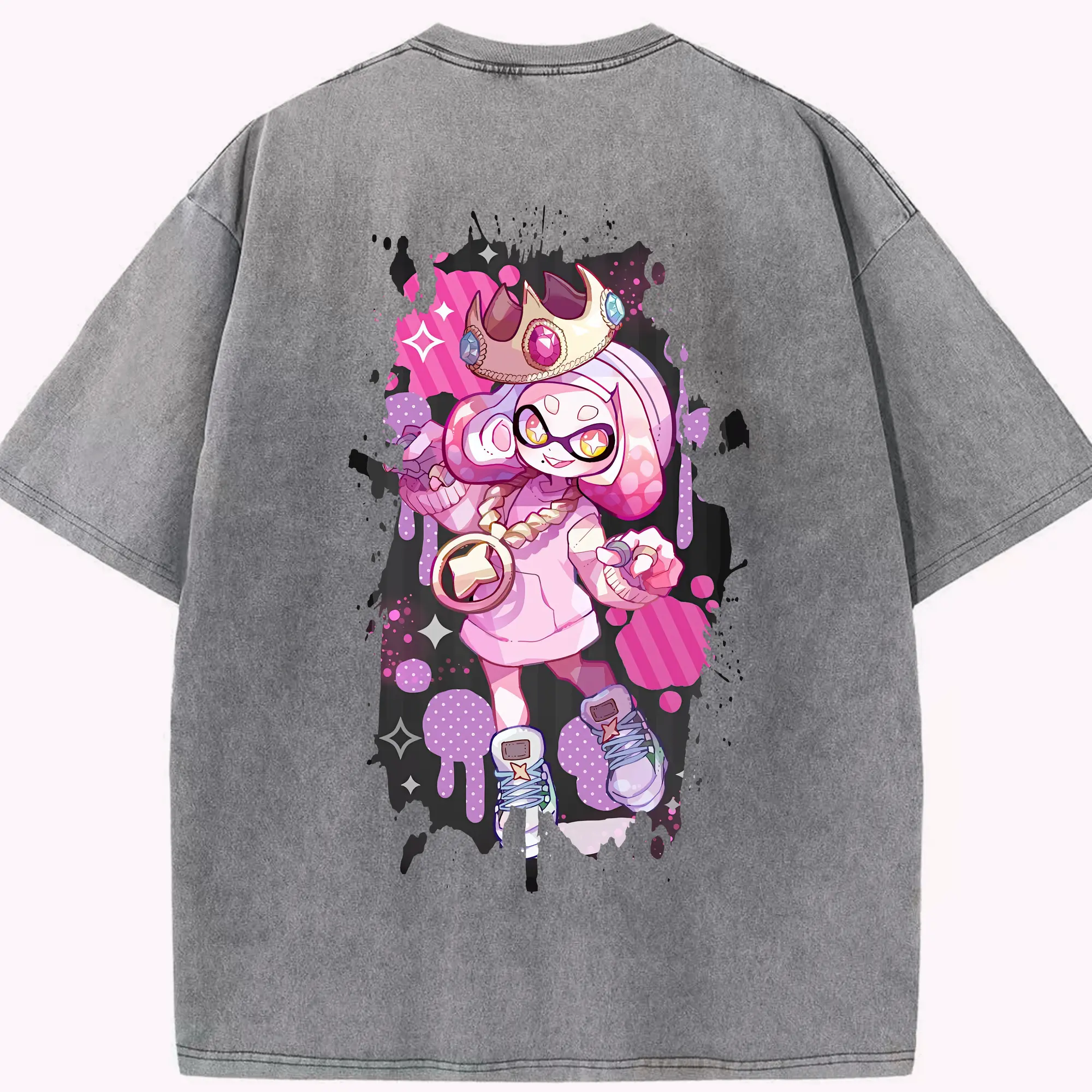 スプラトゥーン グッズ,ヒメ - 綿100% ヴィンテージ風 半袖Tシャツ ・ フロントプリント ・ 柔らか肌触り ・ 通気性 快適 ・ スポーツ カジュアル 外出用