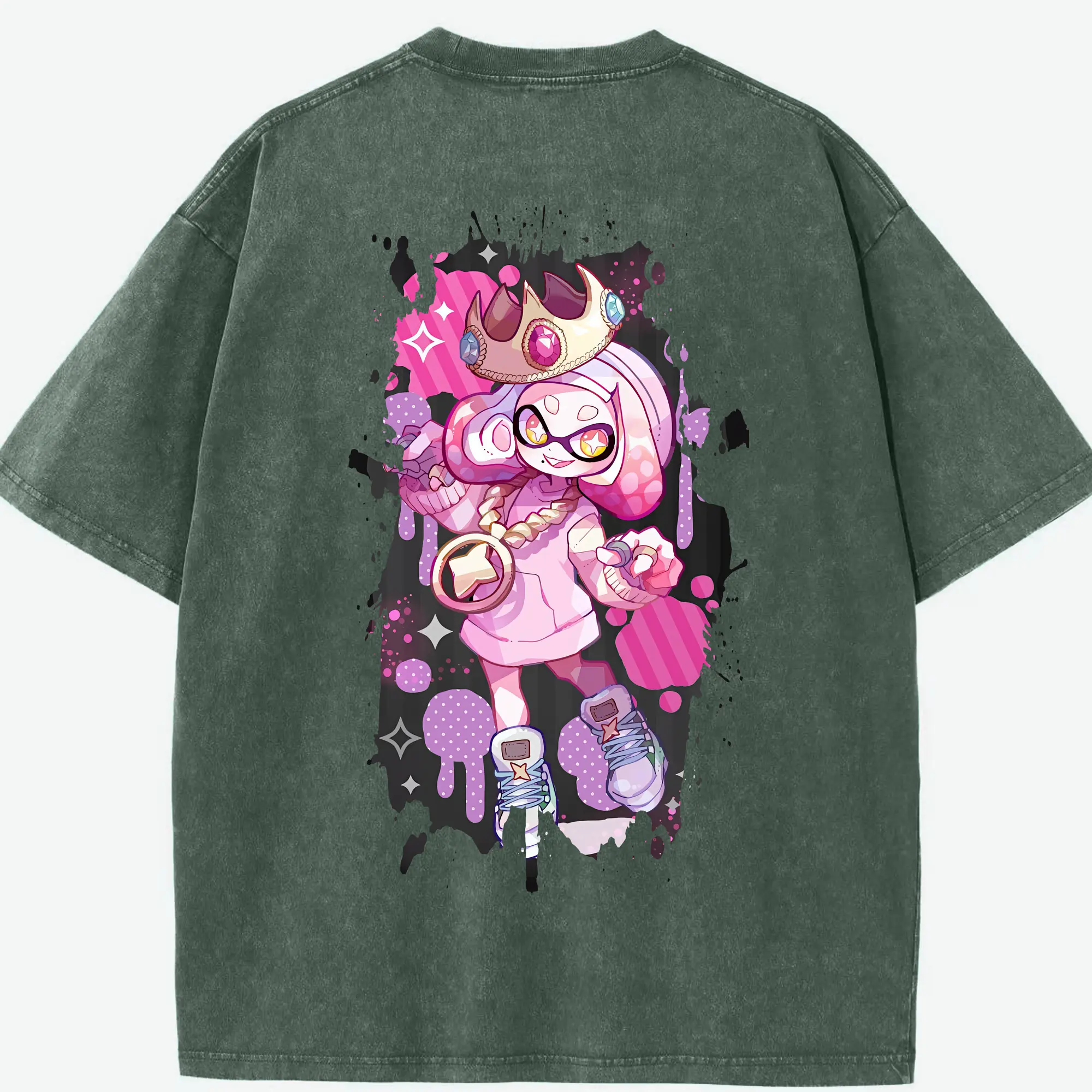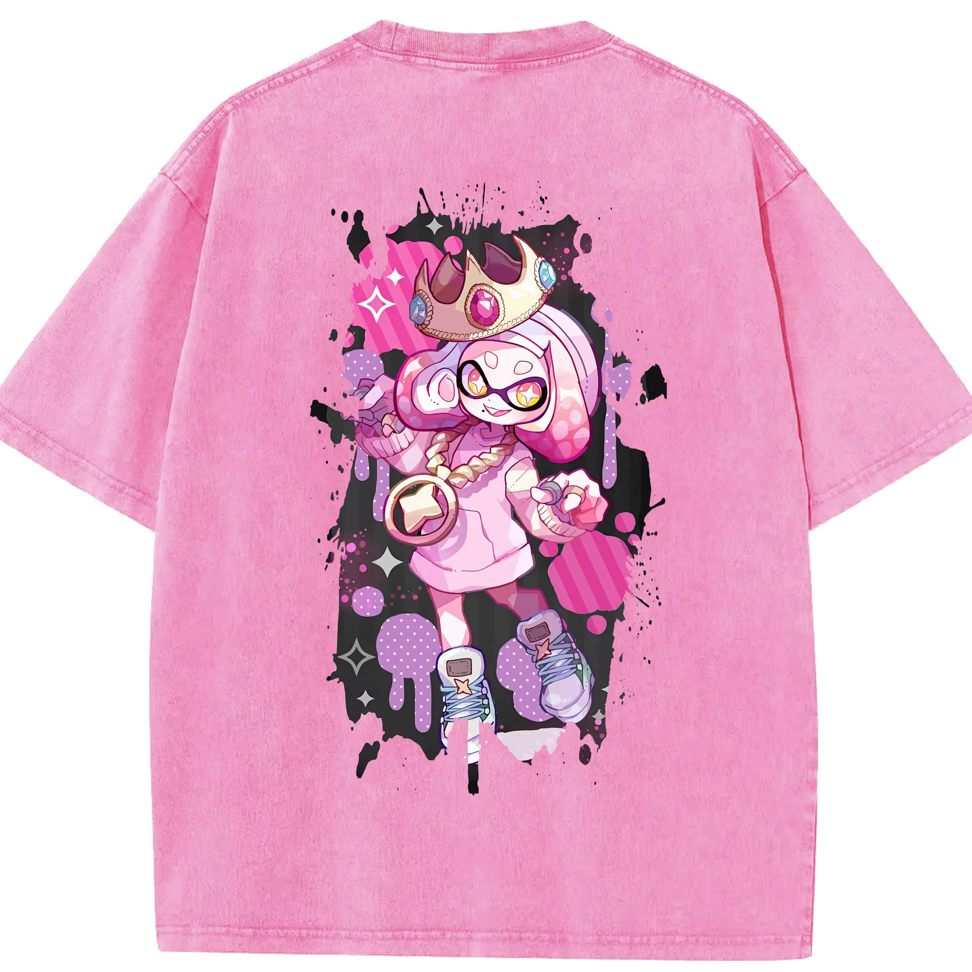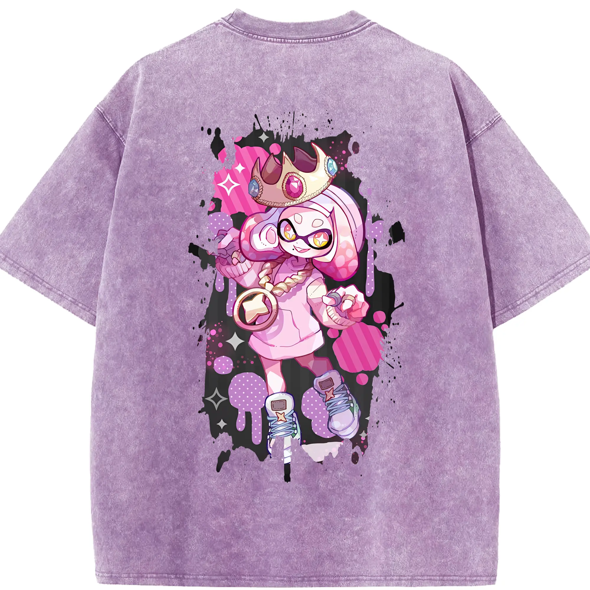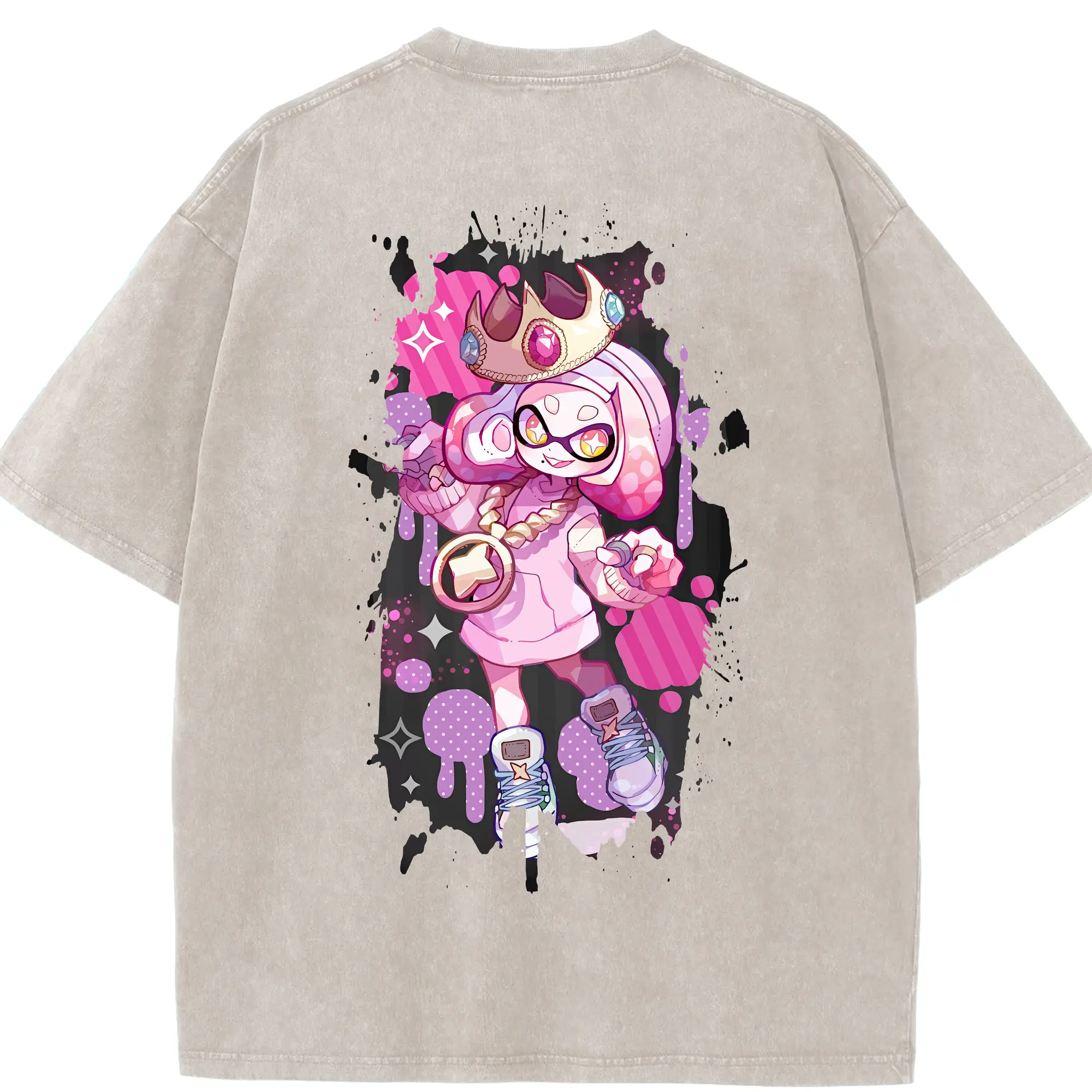 スプラトゥーン グッズ,ヒメ - 綿100% ヴィンテージ風 半袖Tシャツ ・ フロントプリント ・ 柔らか肌触り ・ 通気性 快適 ・ スポーツ カジュアル 外出用