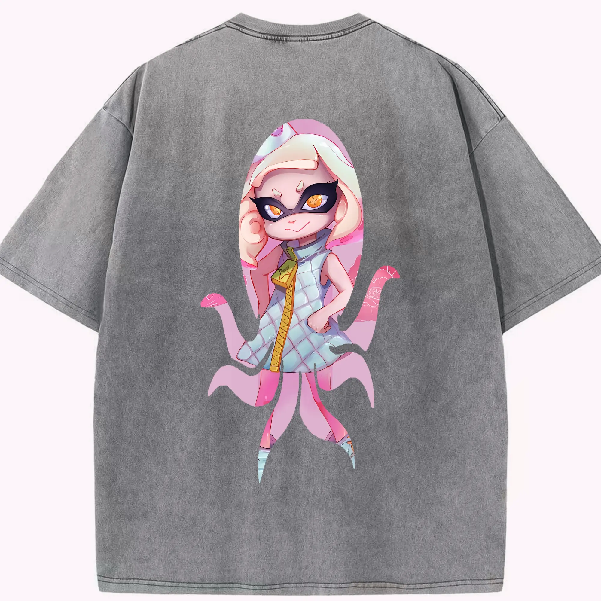 スプラトゥーン グッズ,ヒメ - 綿100% ヴィンテージ風 半袖Tシャツ ・ フロントプリント ・ 柔らか肌触り ・ 通気性 快適 ・ スポーツ カジュアル 外出用