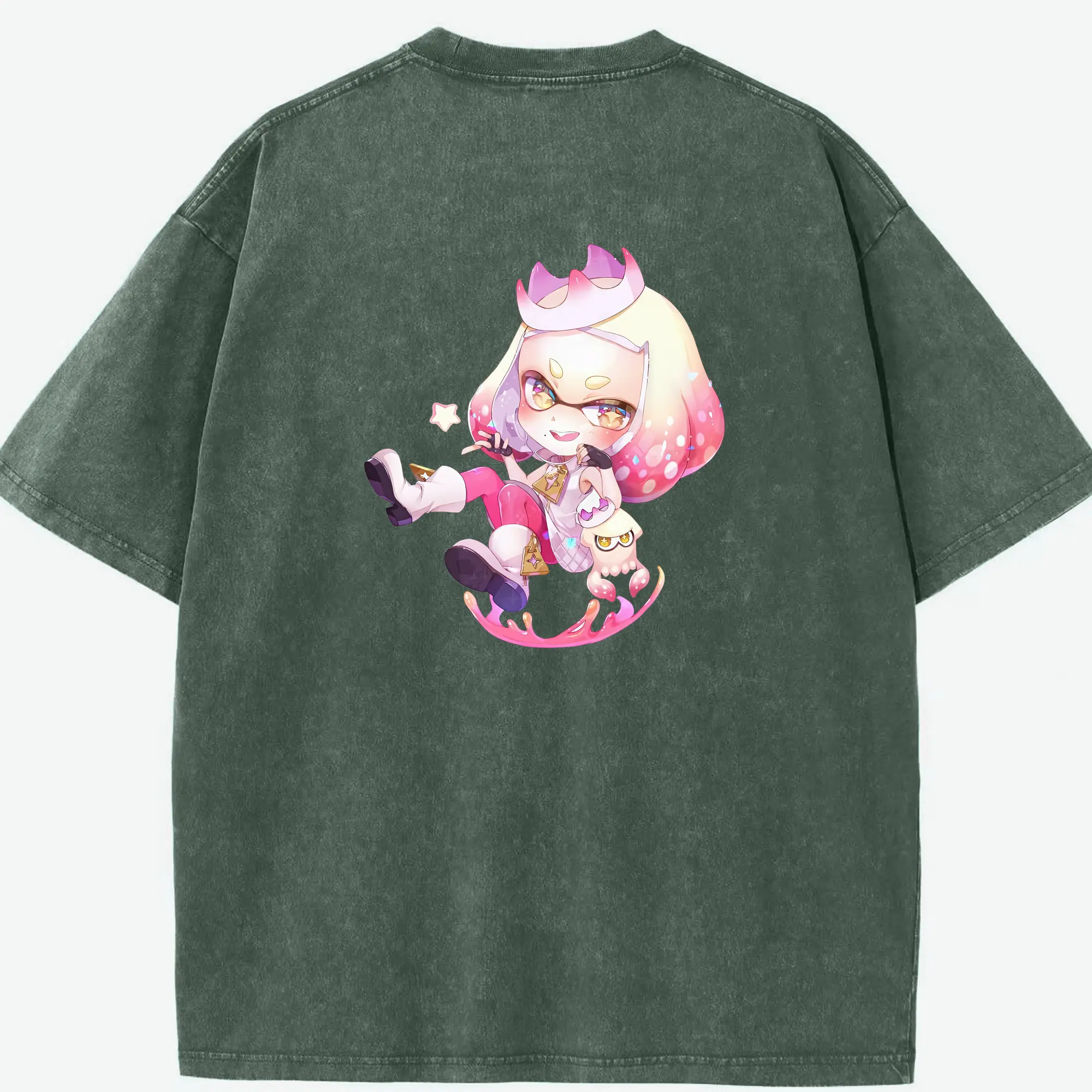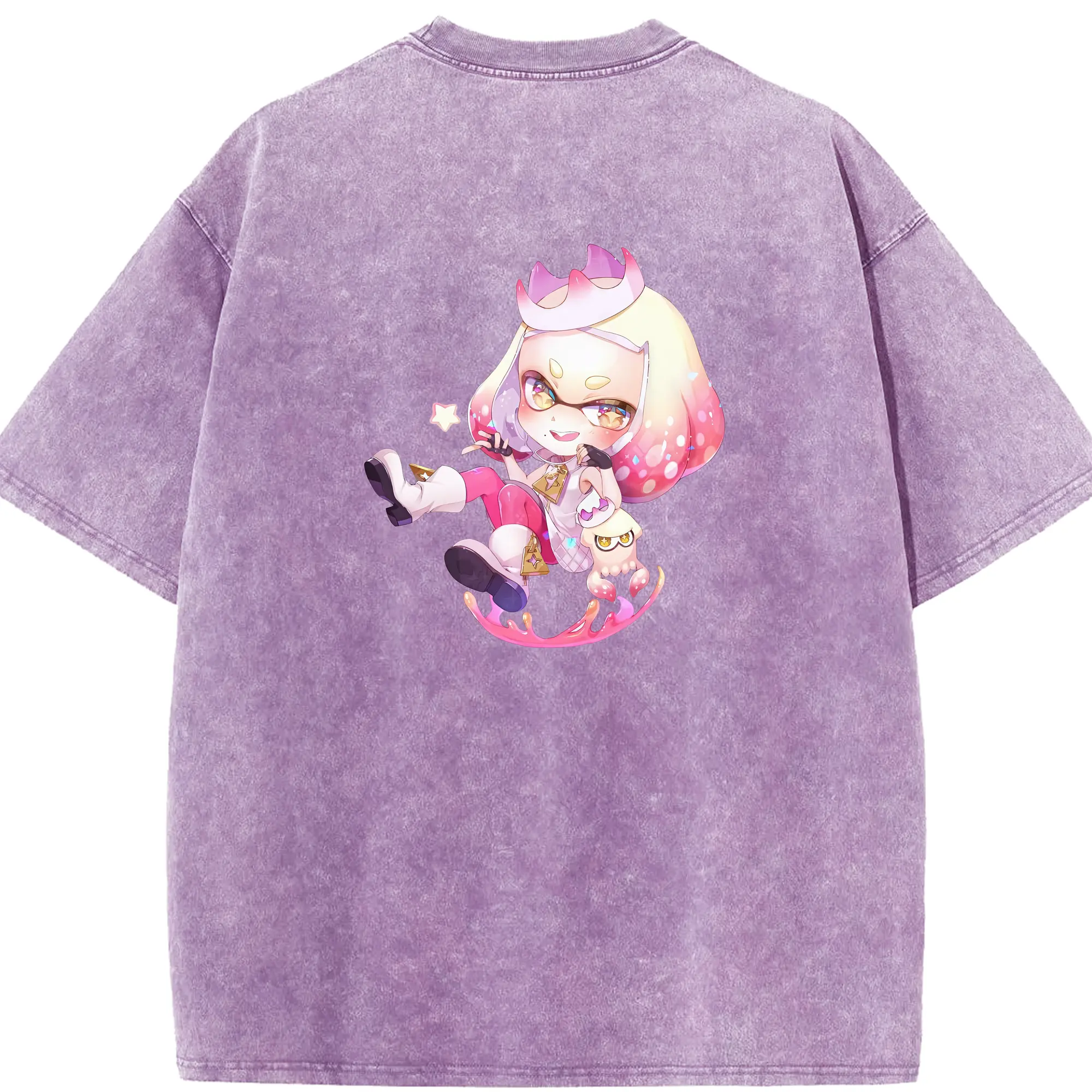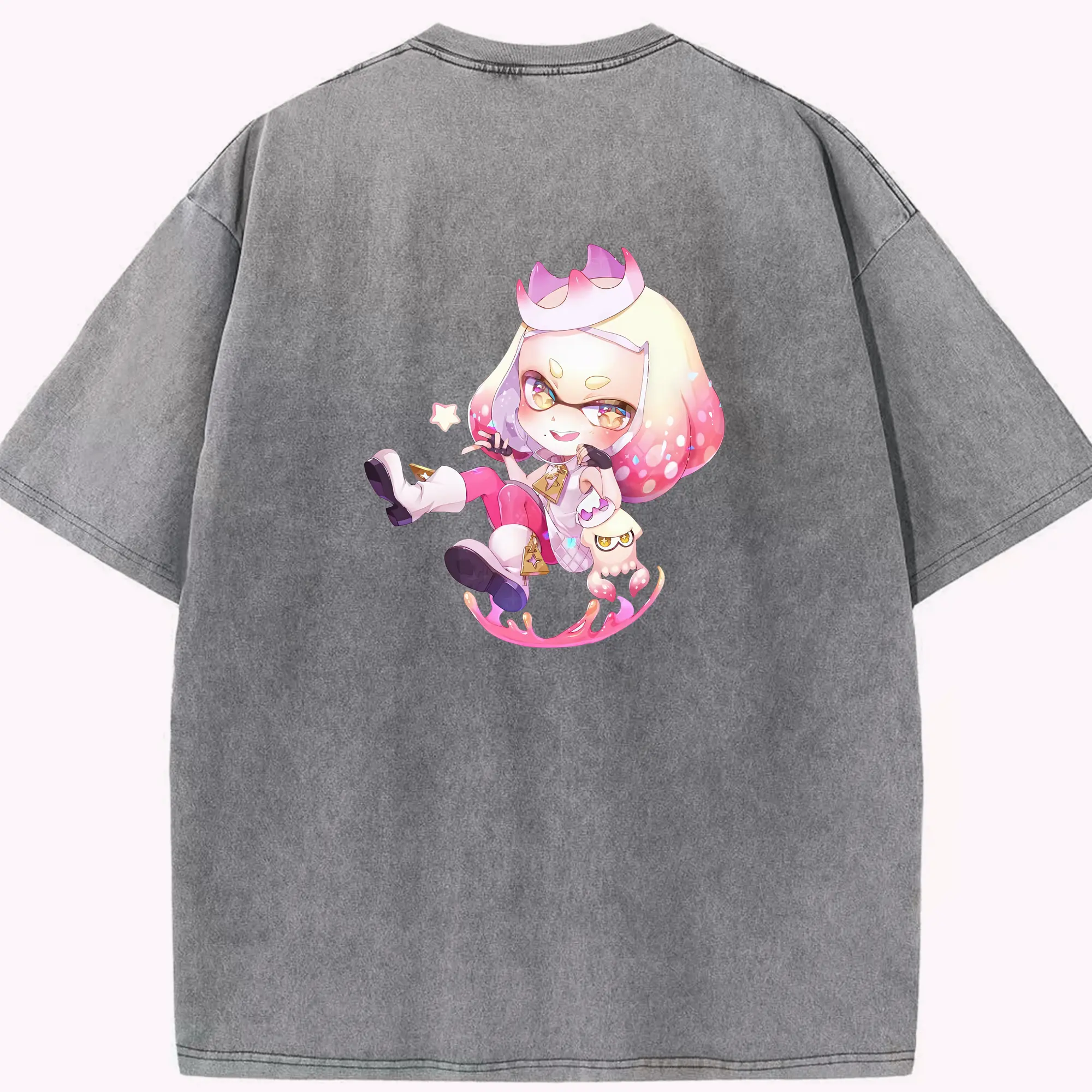 スプラトゥーン グッズ,ヒメ - 綿100% ヴィンテージ風 半袖Tシャツ ・ フロントプリント ・ 柔らか肌触り ・ 通気性 快適 ・ スポーツ カジュアル 外出用
