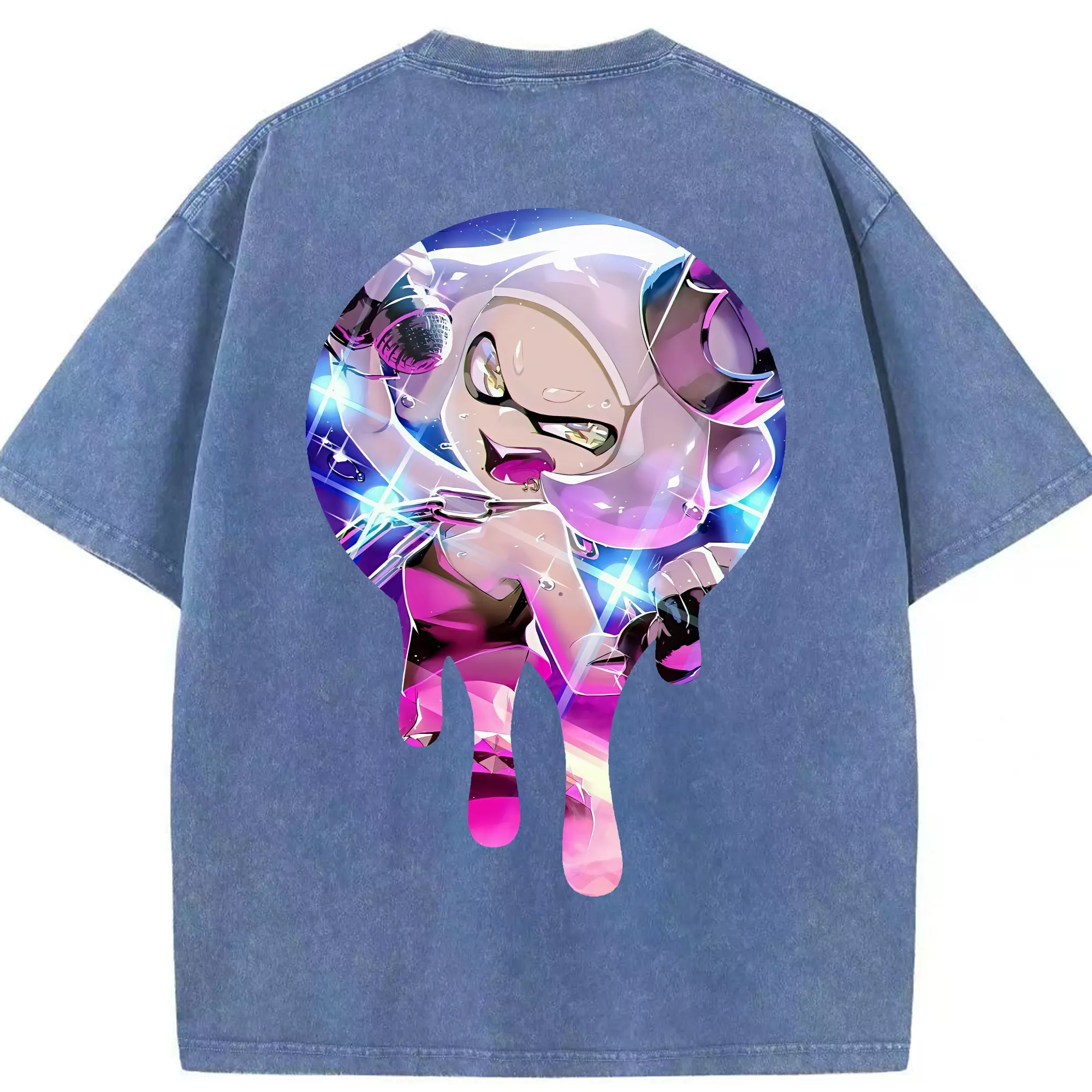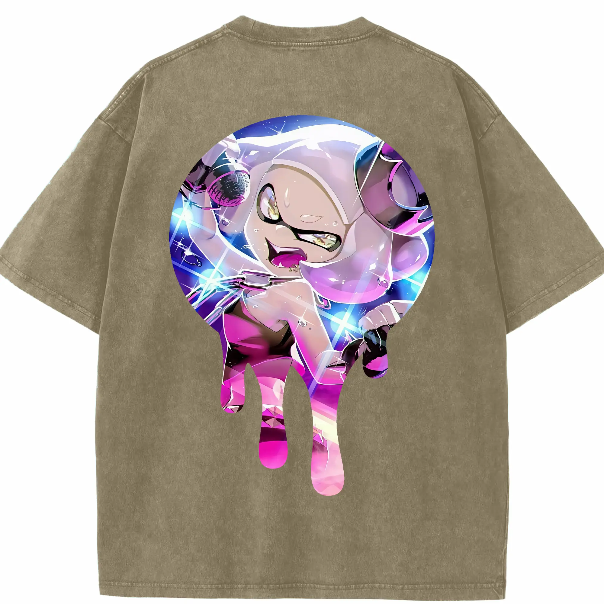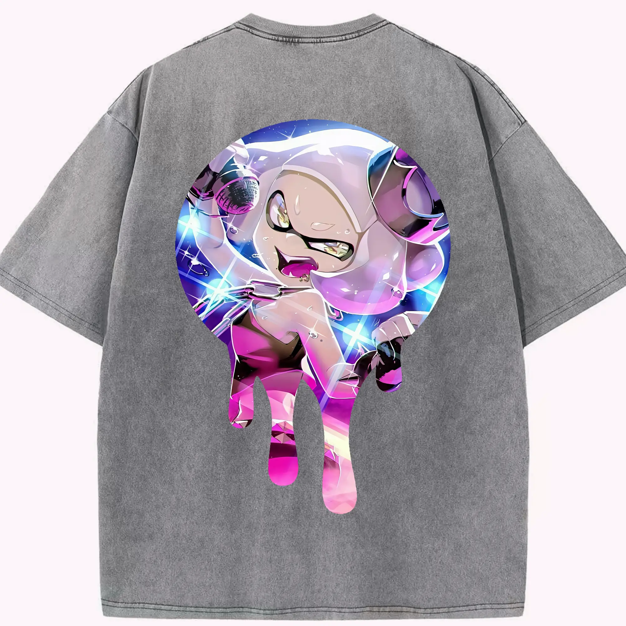 スプラトゥーン グッズ,ヒメ - 綿100% ヴィンテージ風 半袖Tシャツ ・ フロントプリント ・ 柔らか肌触り ・ 通気性 快適 ・ スポーツ カジュアル 外出用