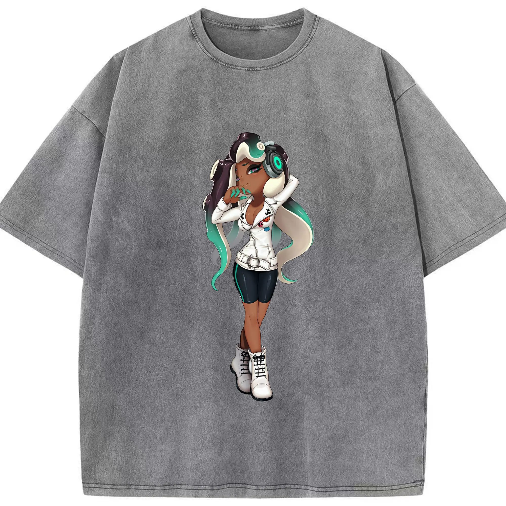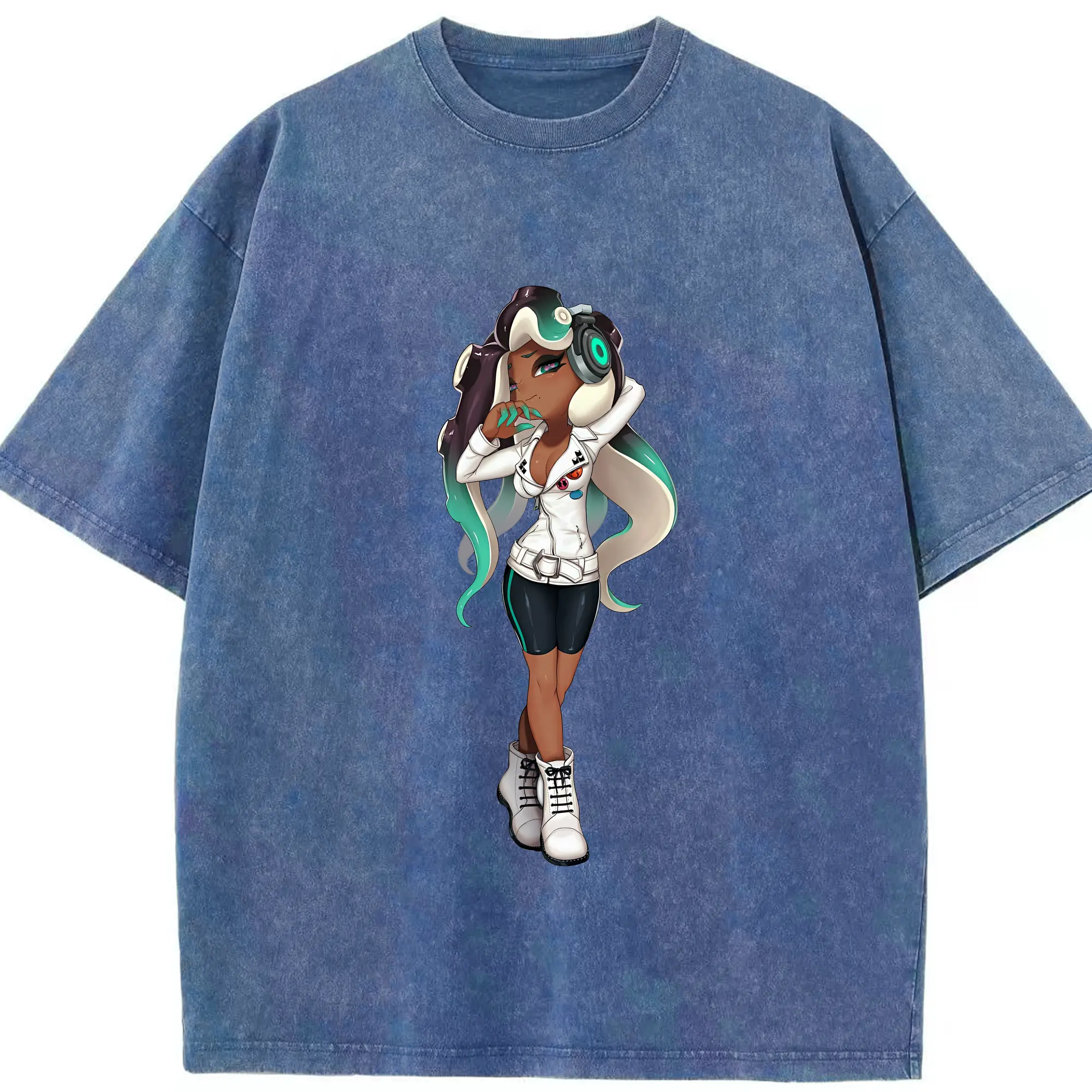 スプラトゥーン グッズ,シオカラーズ アオリ - 綿100% ヴィンテージ風 半袖Tシャツ ・ フロントプリント ・ 柔らか肌触り ・ 通気性 快適 ・ スポーツ カジュアル 外出用