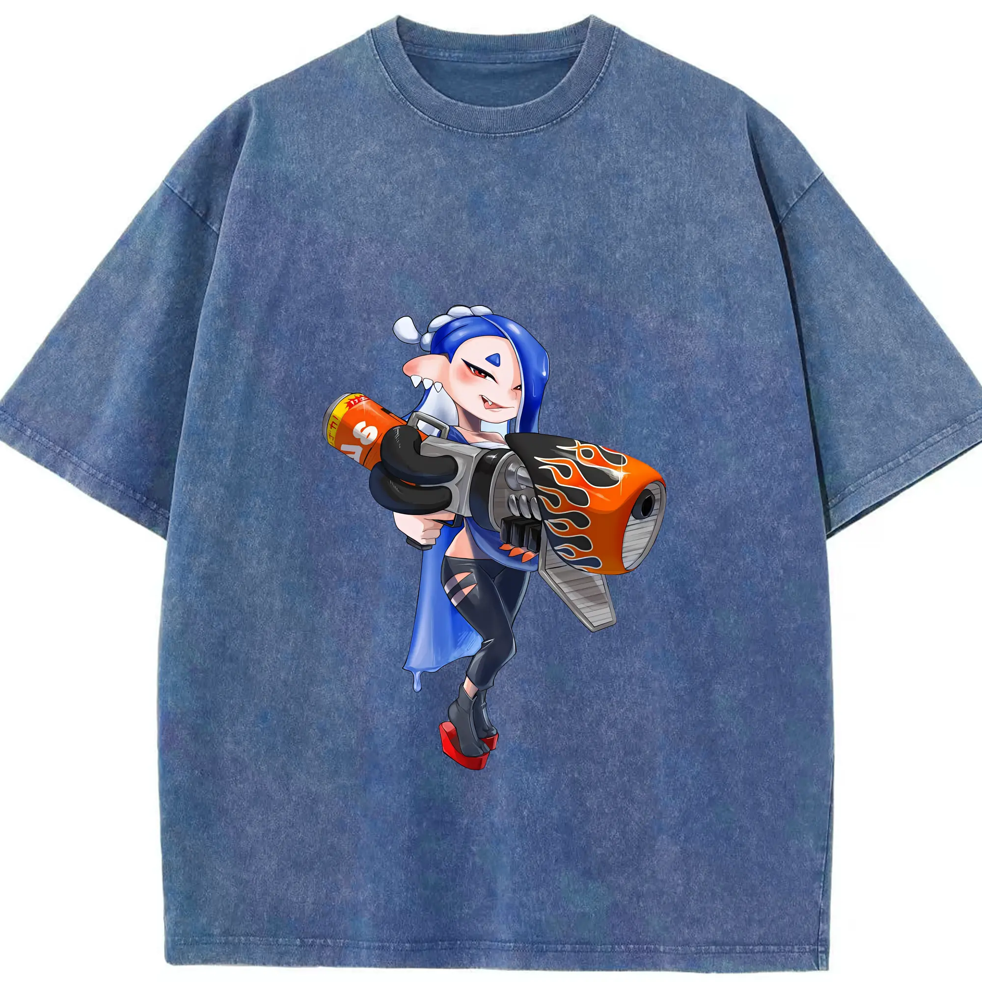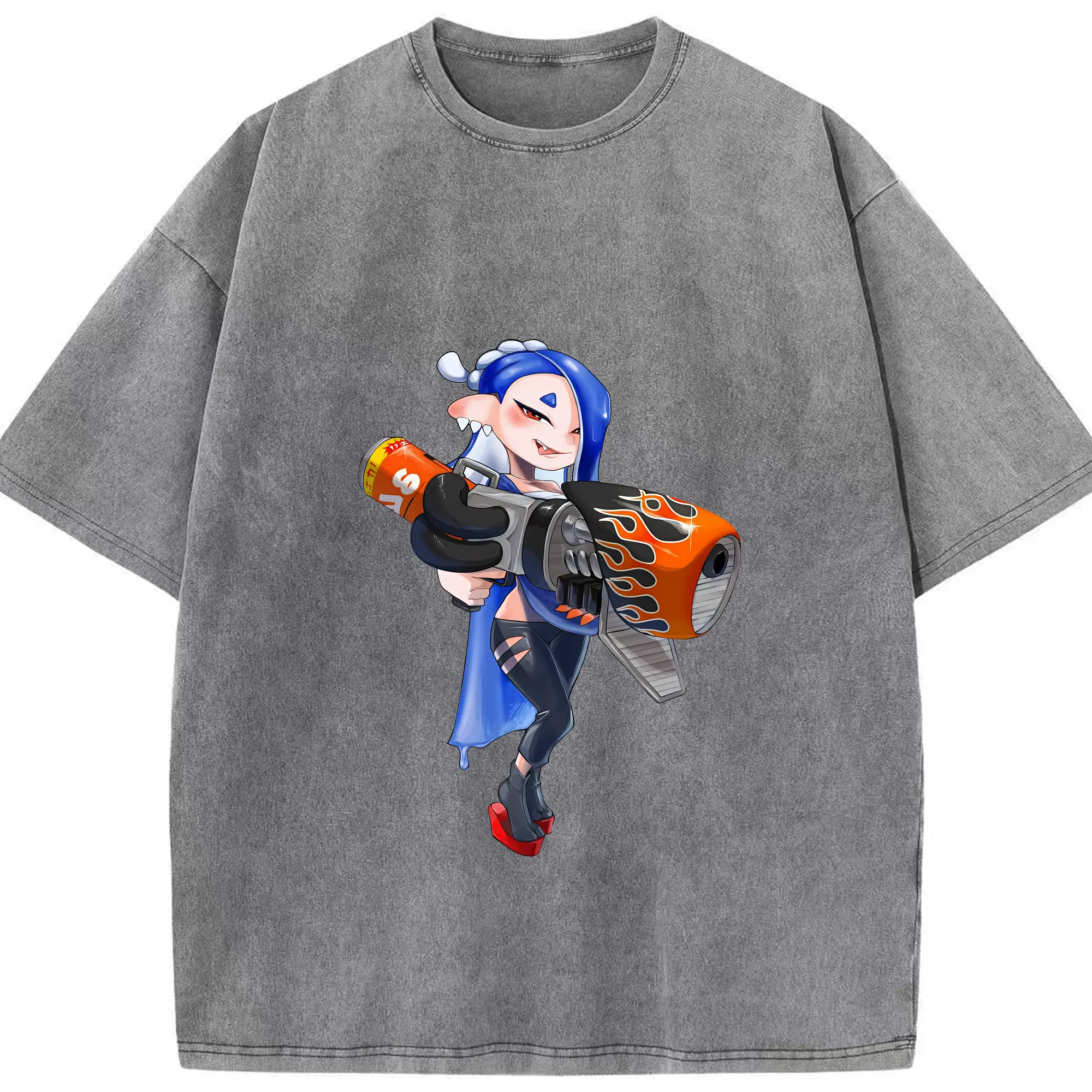 スプラトゥーン グッズ,フウカ - 綿100% ヴィンテージ風 半袖Tシャツ ・ 背面プリント ・ 柔らか肌触り ・ 通気性 快適 ・ スポーツ カジュアル 外出用