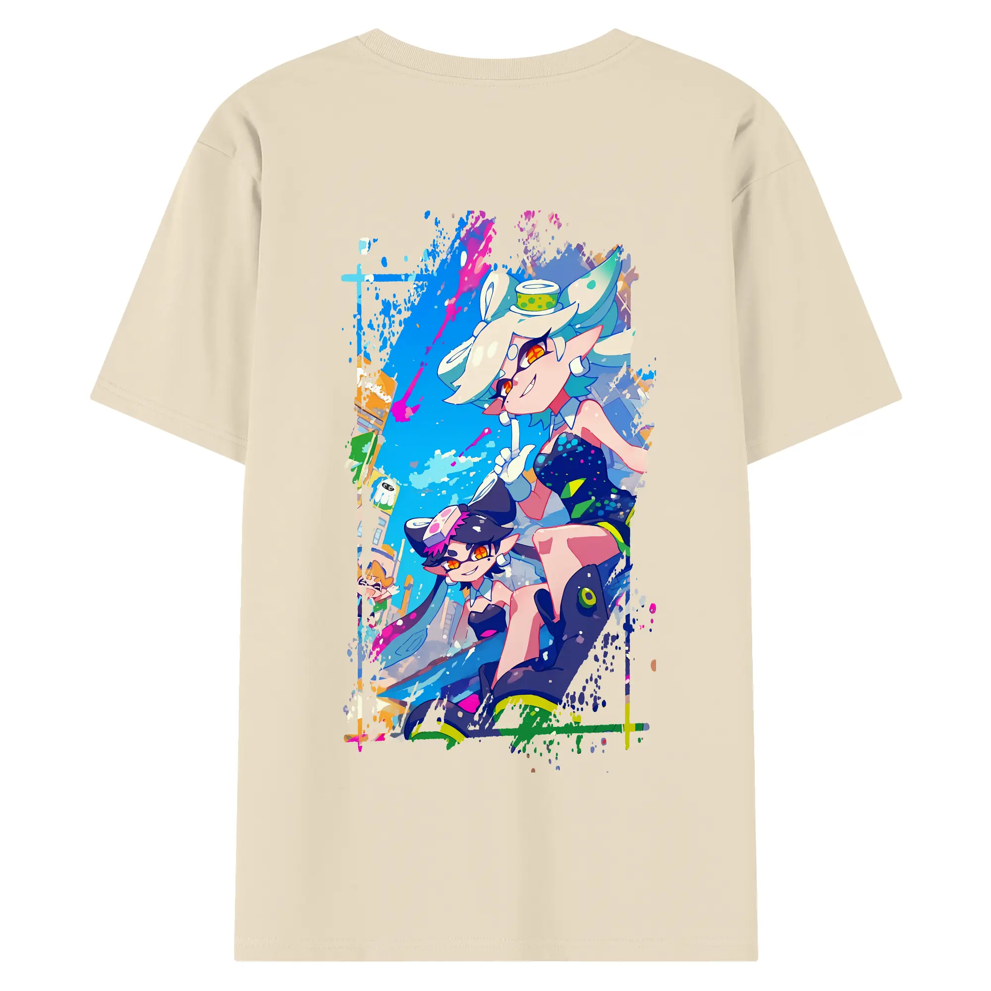 スプラトゥーン グッズ,シオカラーズ - 綿100% ヴィンテージ風 半袖Tシャツ ・ 背面プリント ・ 柔らか肌触り ・ 通気性 快適 ・ スポーツ カジュアル 外出用