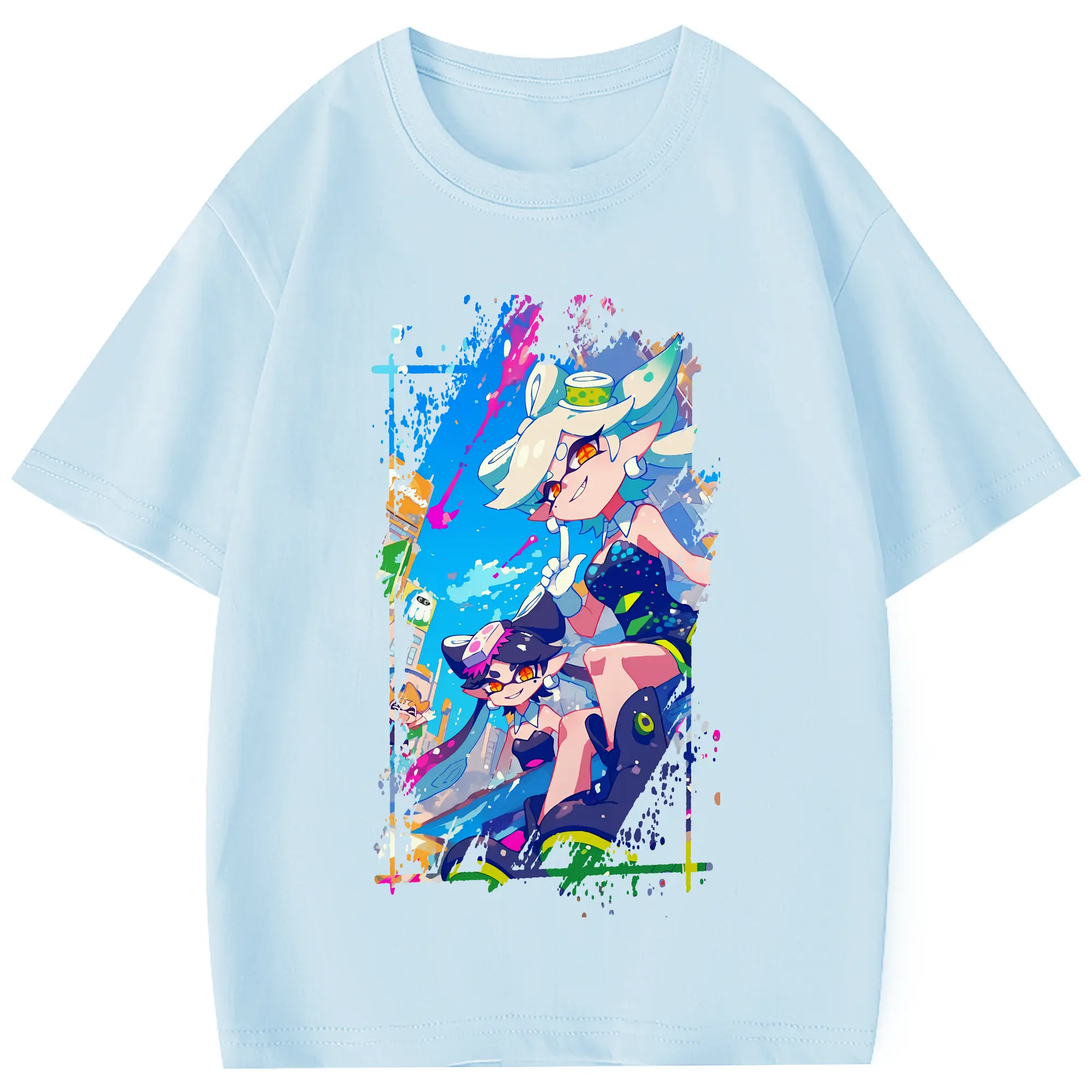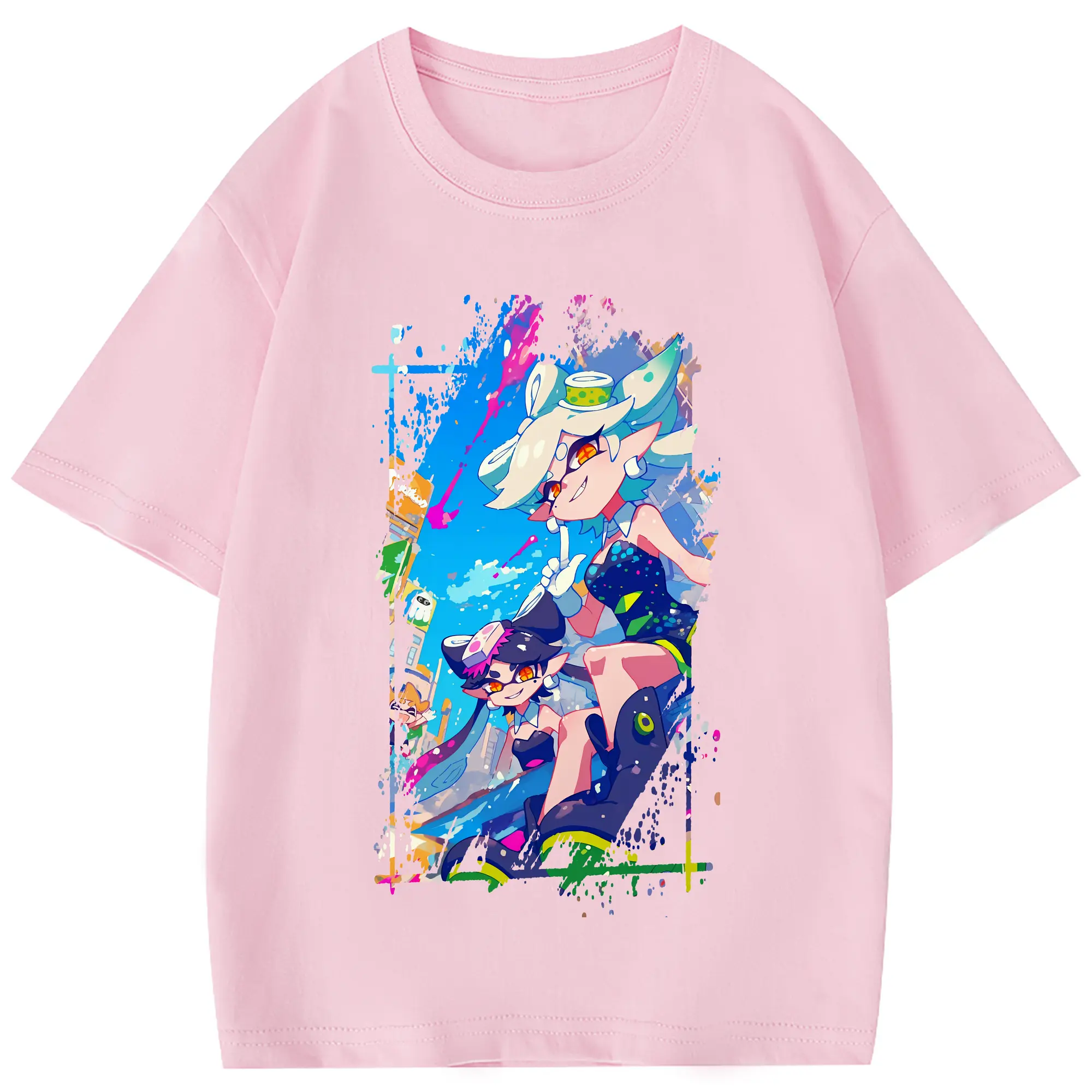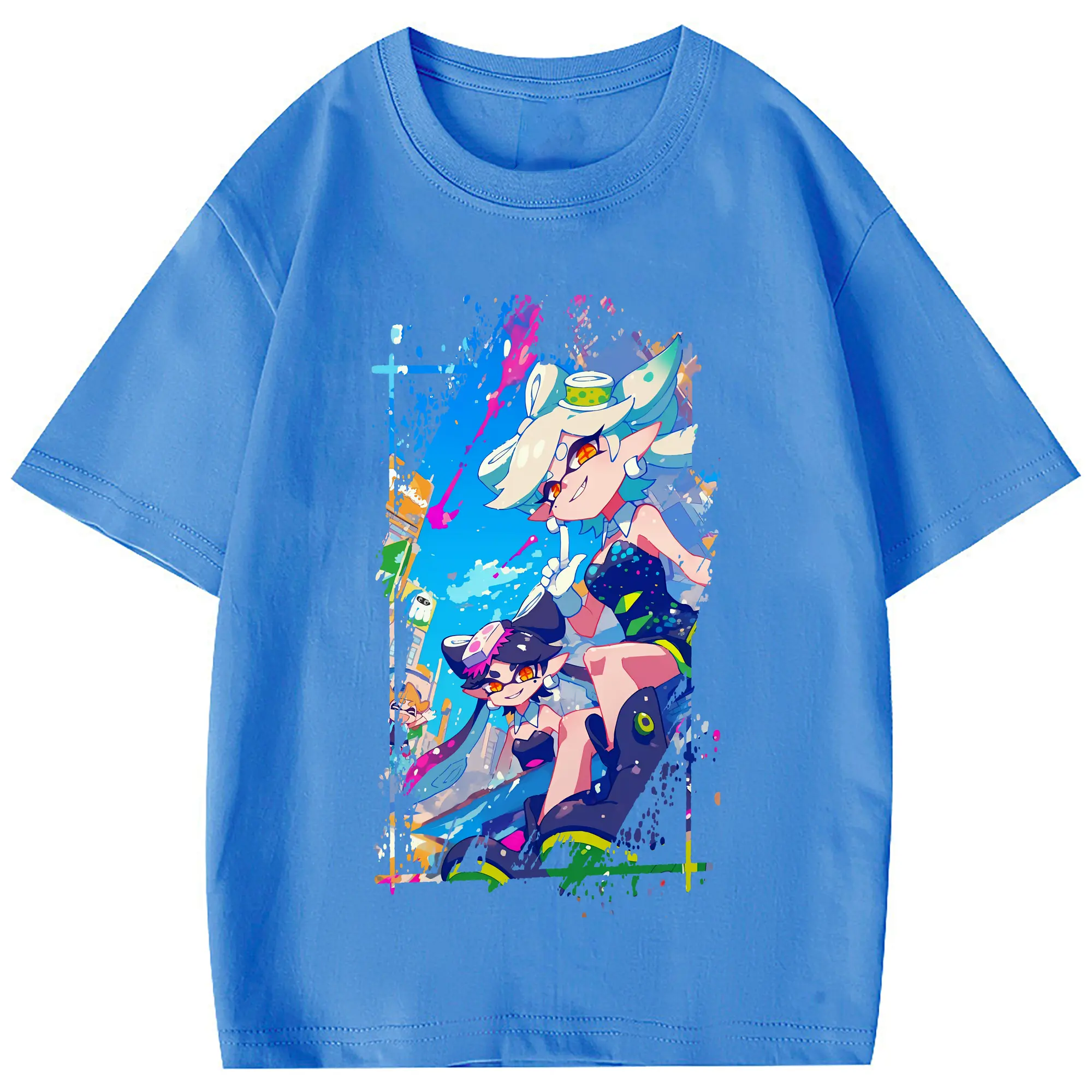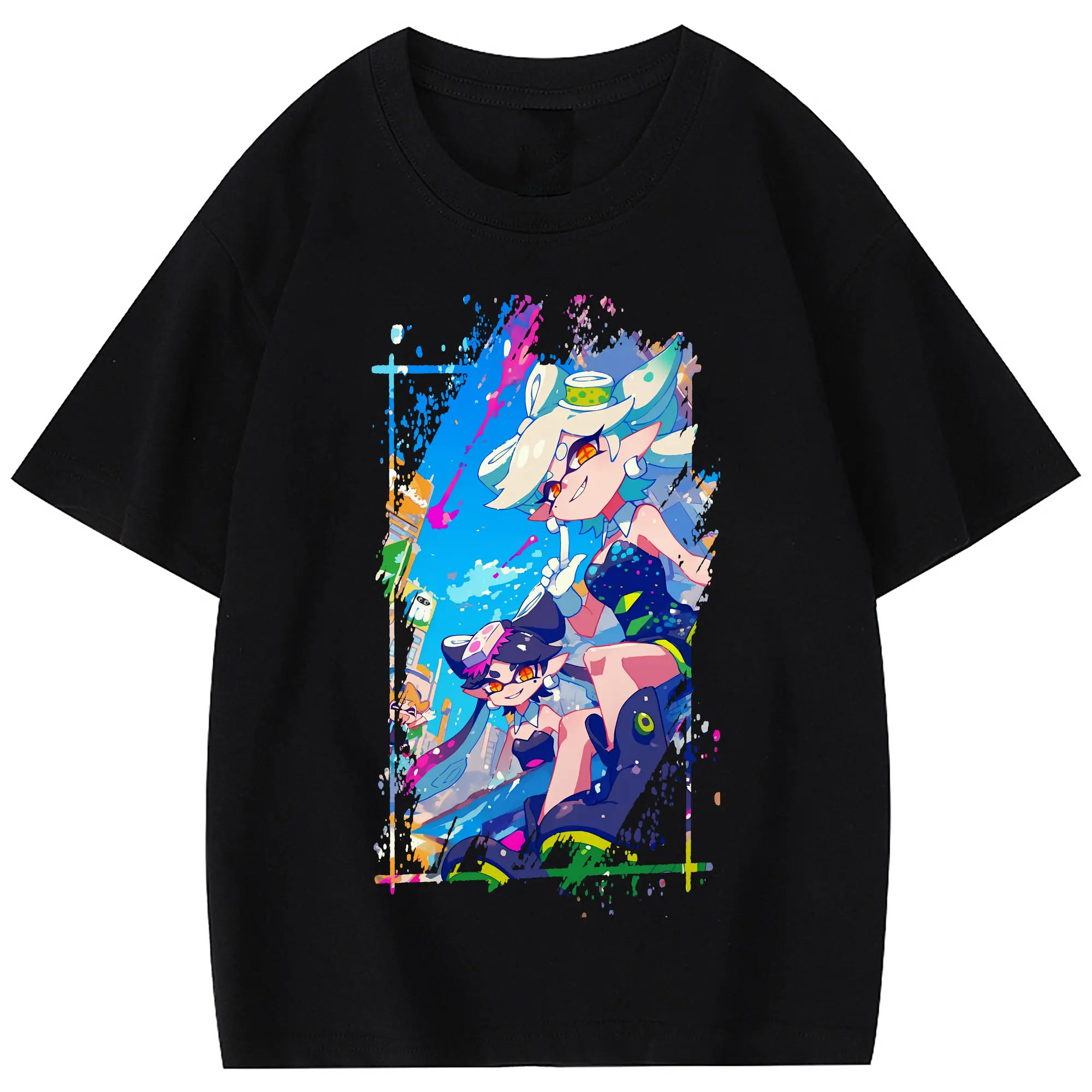 スプラトゥーン グッズ,シオカラーズ - 綿100% 半袖Tシャツ ・ フロントプリント ・ 快適 通気性 ・ 日常使い 散歩 スポーツ用