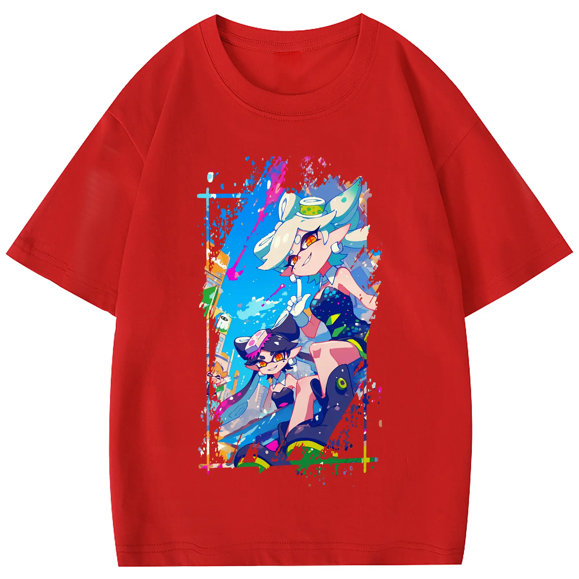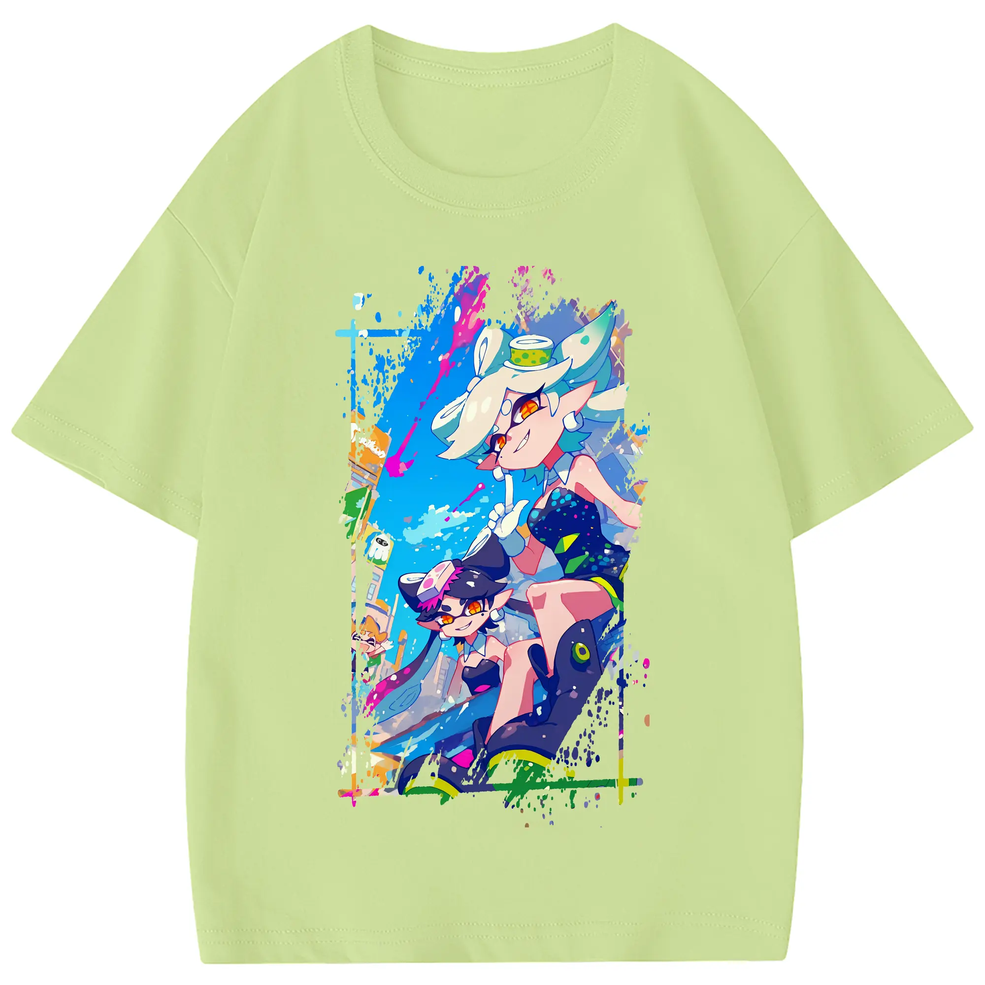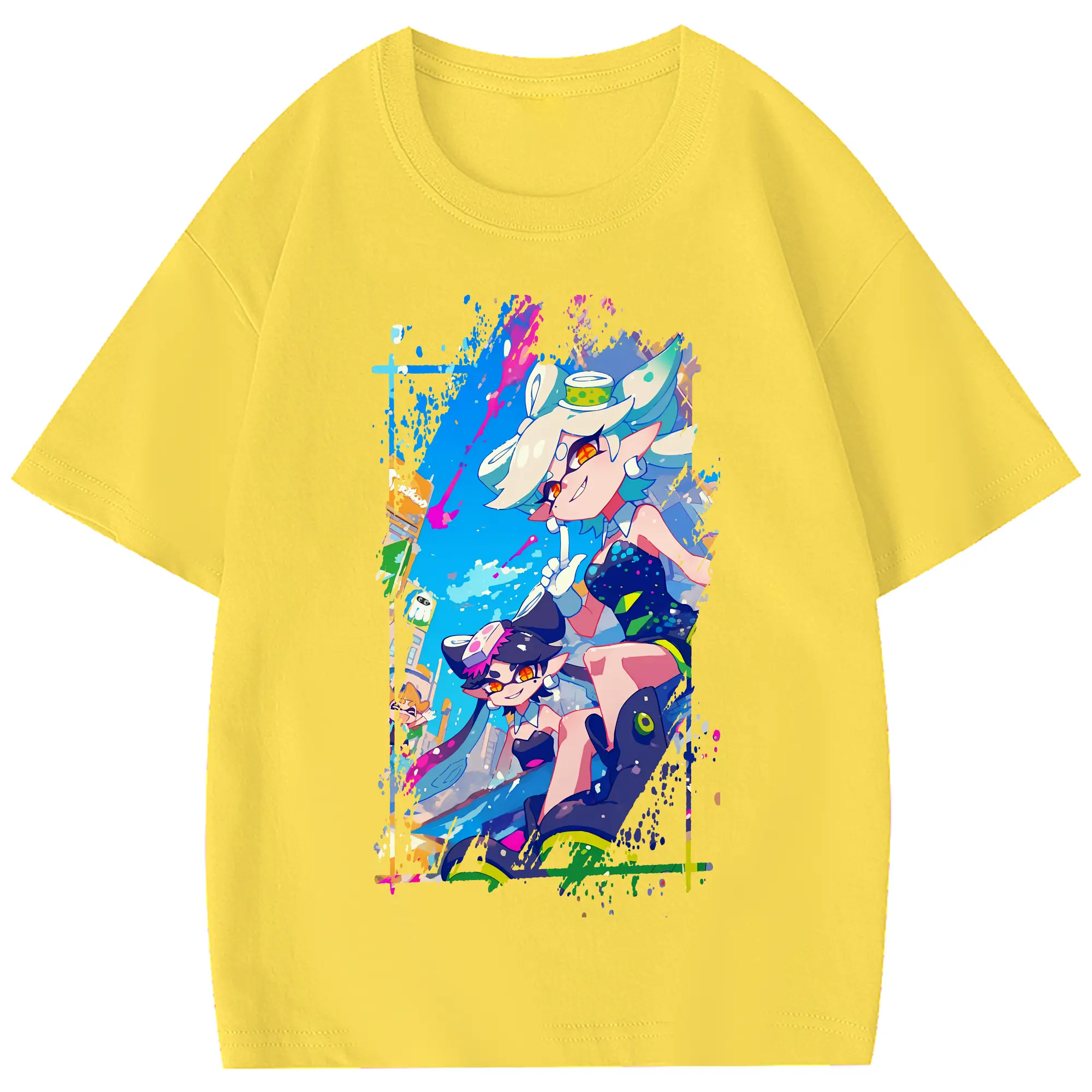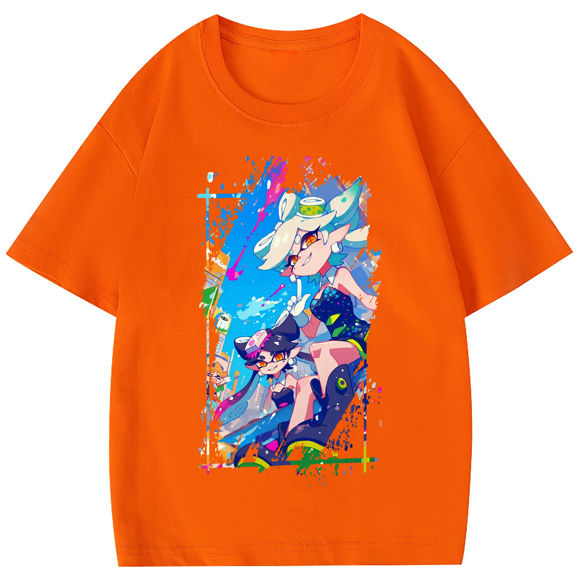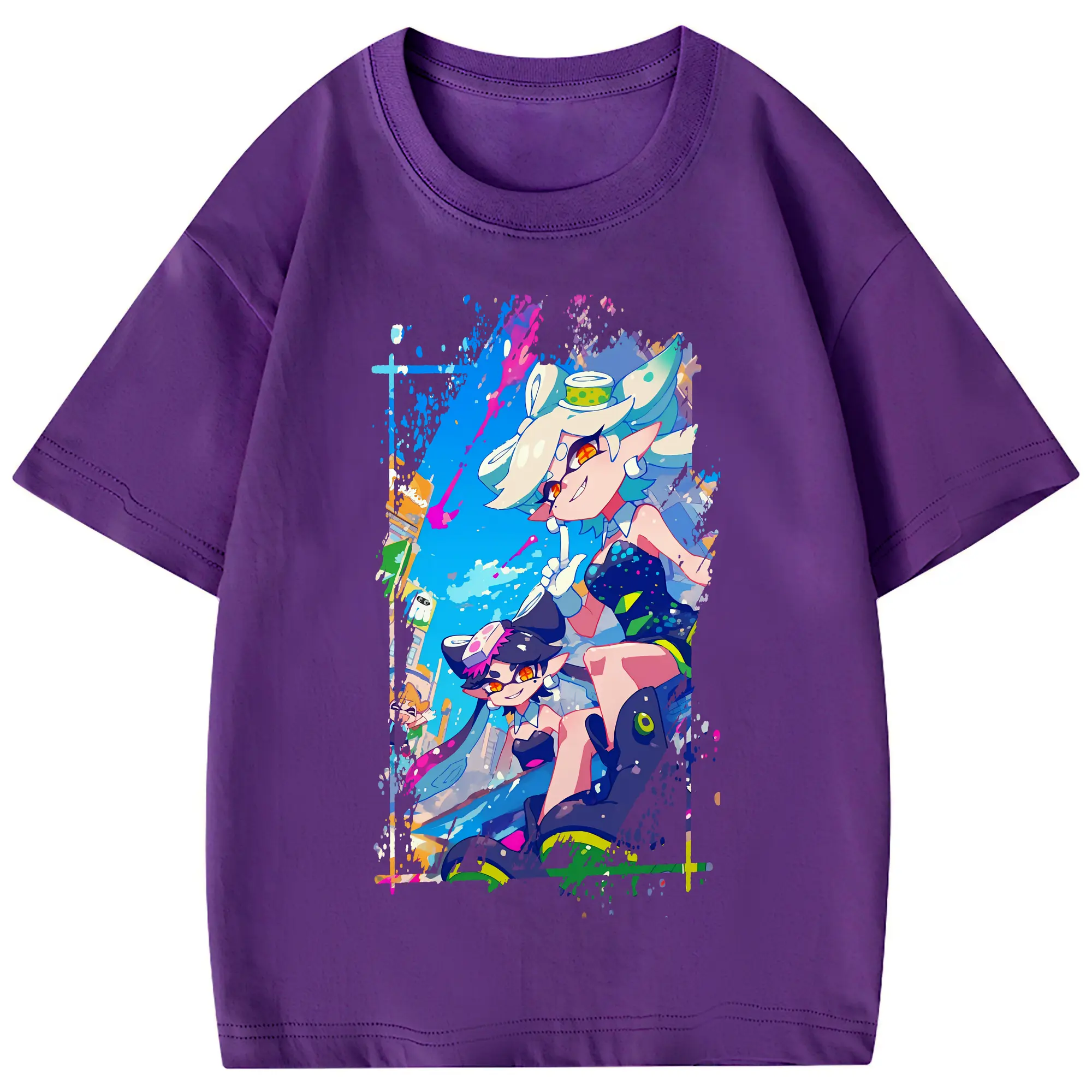 スプラトゥーン グッズ,シオカラーズ - 綿100% 半袖Tシャツ ・ フロントプリント ・ 快適 通気性 ・ 日常使い 散歩 スポーツ用