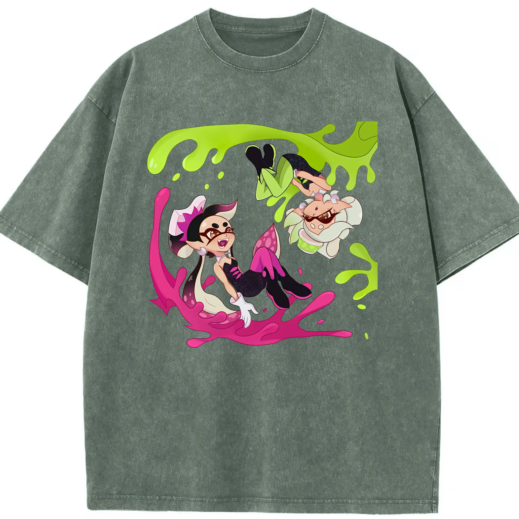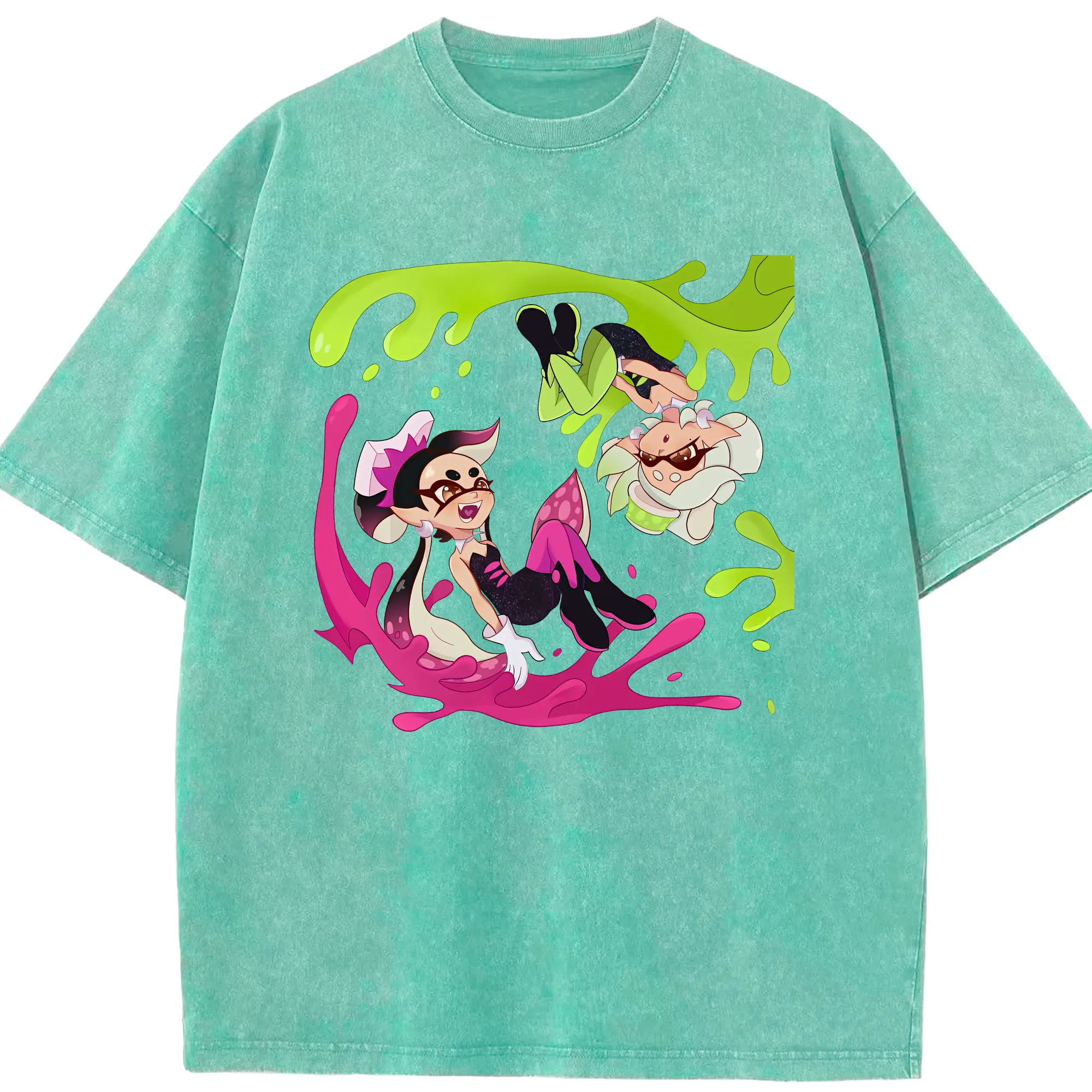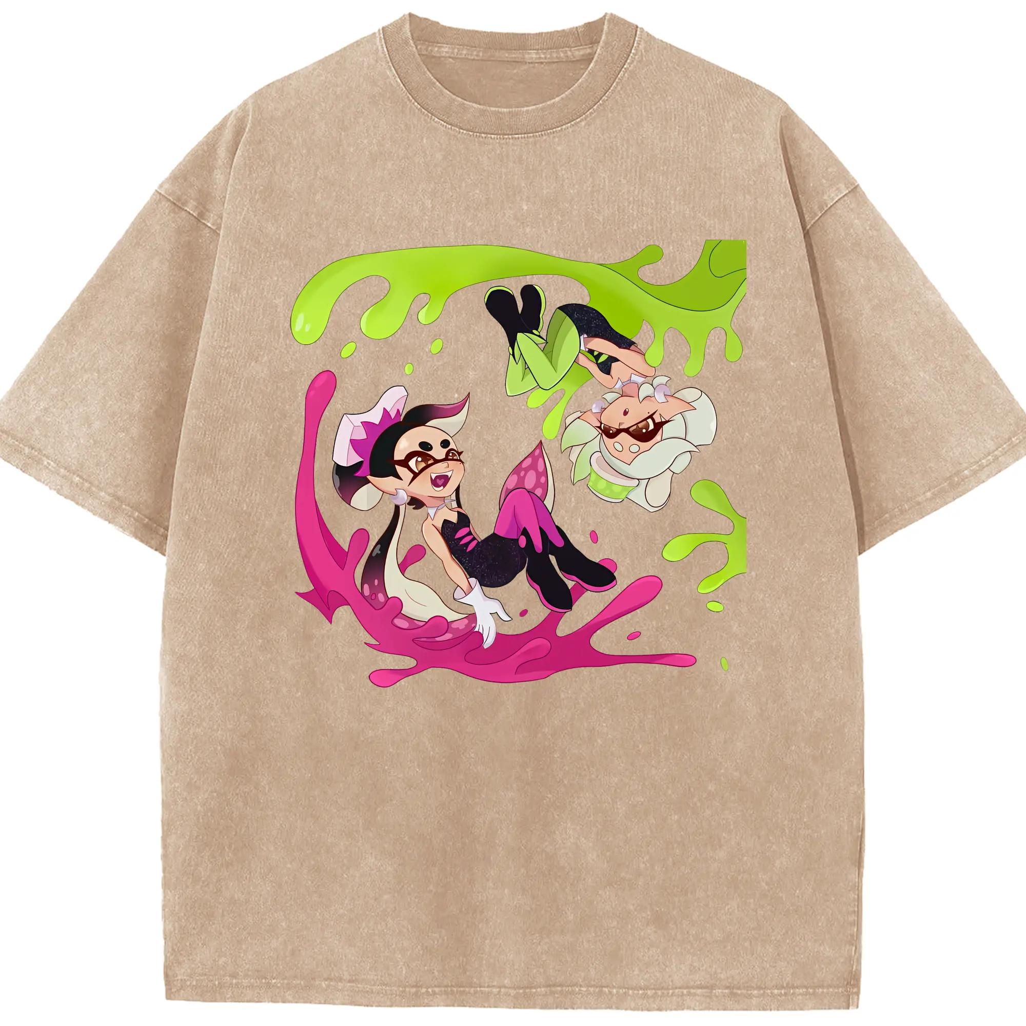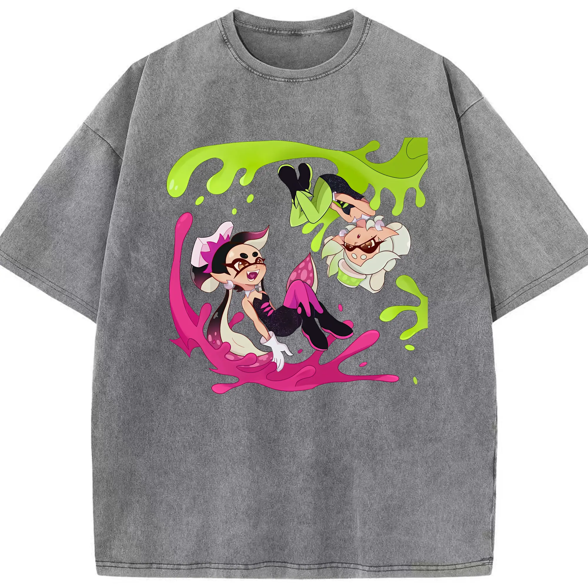 スプラトゥーン グッズ,シオカラーズ - 綿100% ヴィンテージ風 半袖Tシャツ ・ 背面プリント ・ 柔らか肌触り ・ 通気性 快適 ・ スポーツ カジュアル 外出用