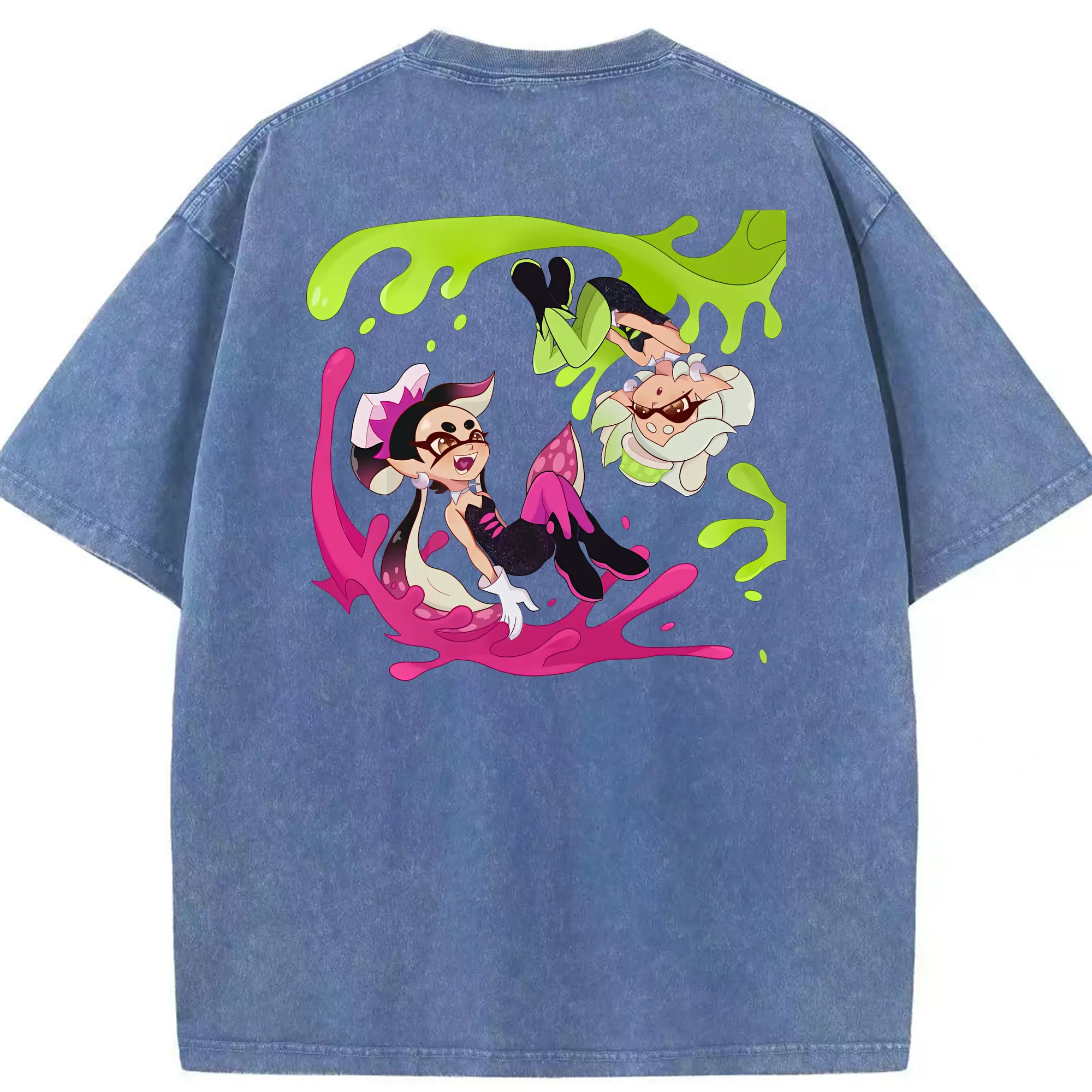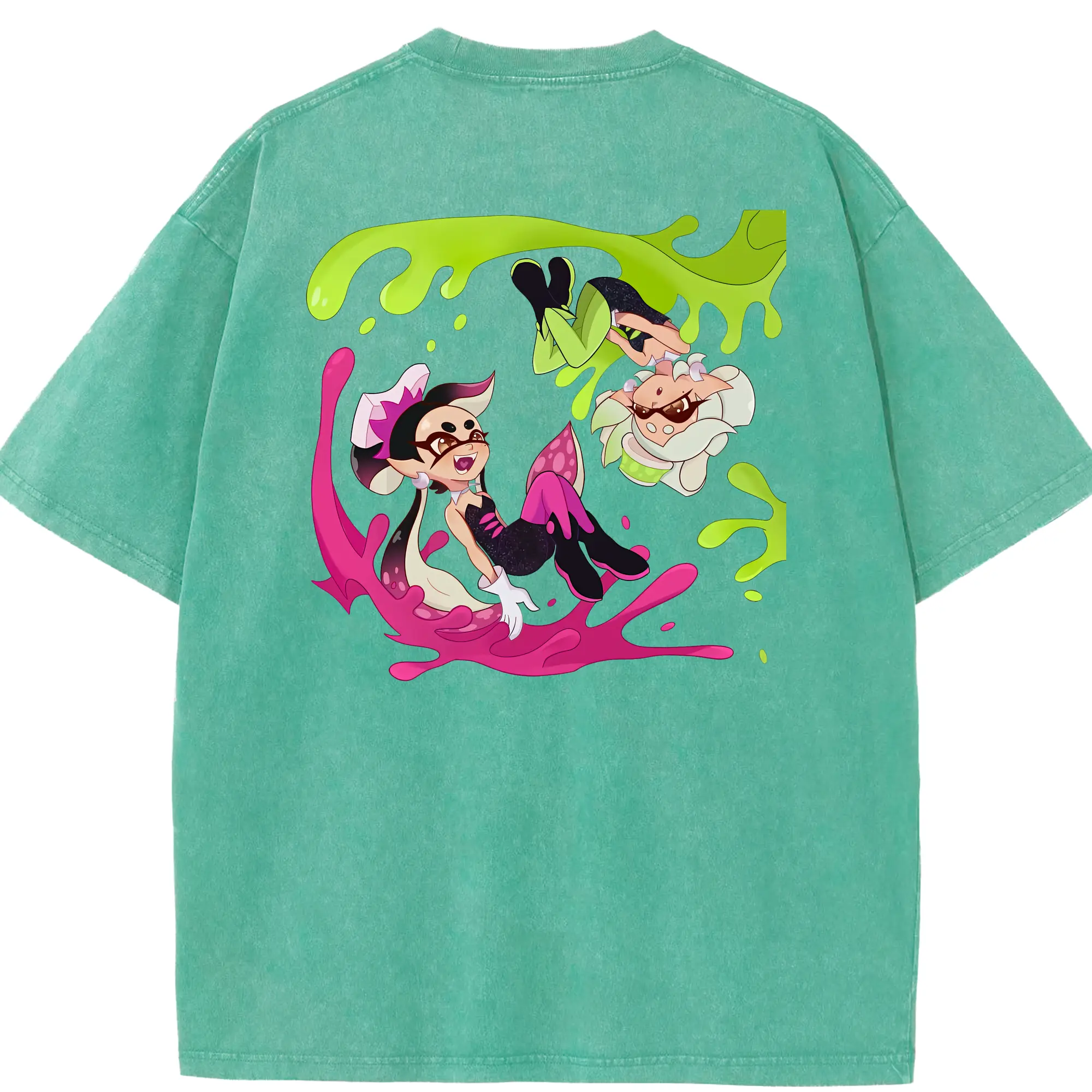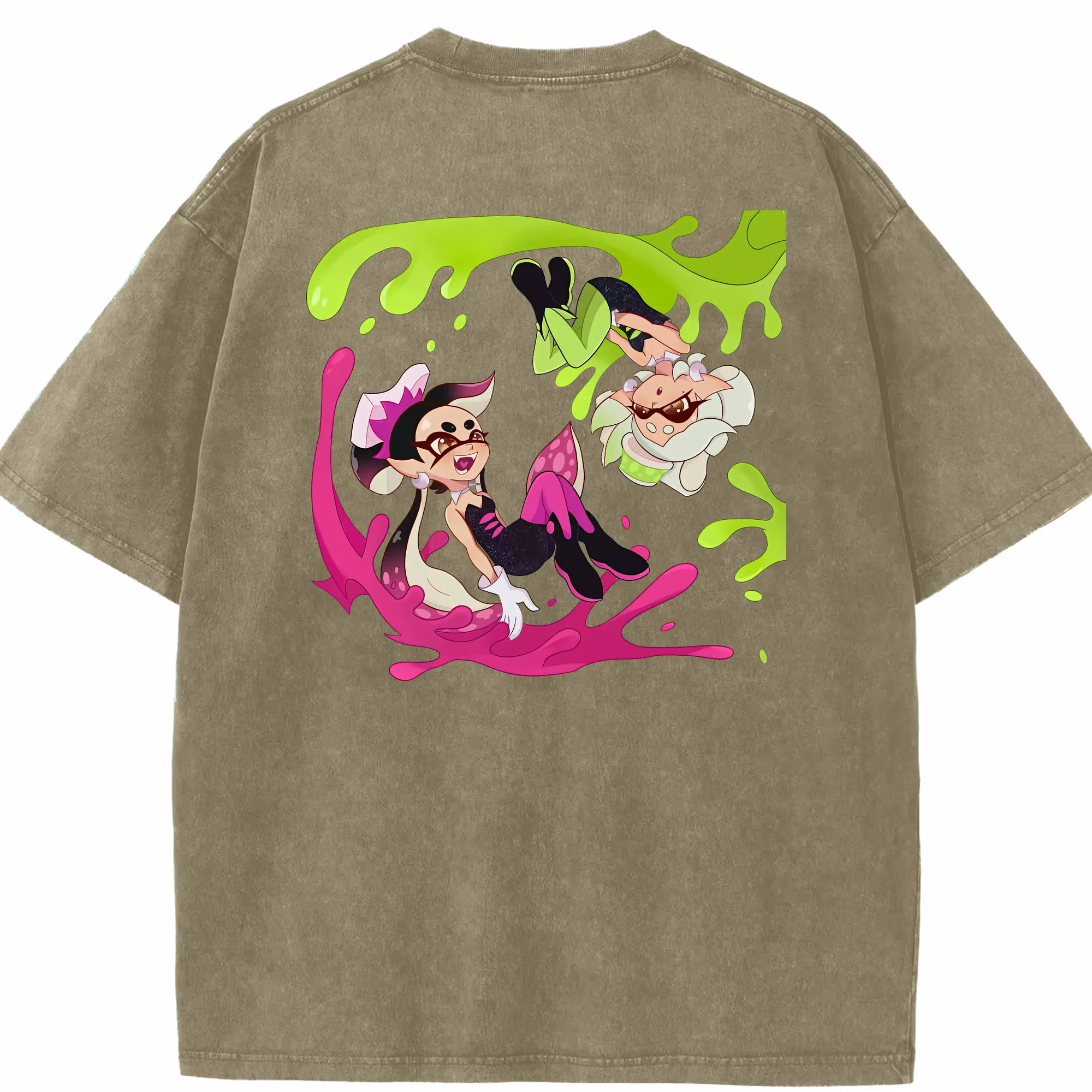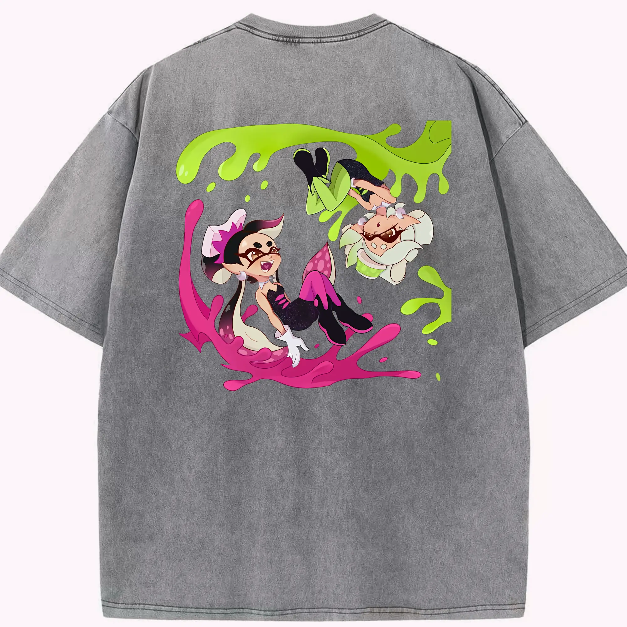 スプラトゥーン グッズ,シオカラーズ - 綿100% ヴィンテージ風 半袖Tシャツ ・ フロントプリント ・ 柔らか肌触り ・ 通気性 快適 ・ スポーツ カジュアル 外出用