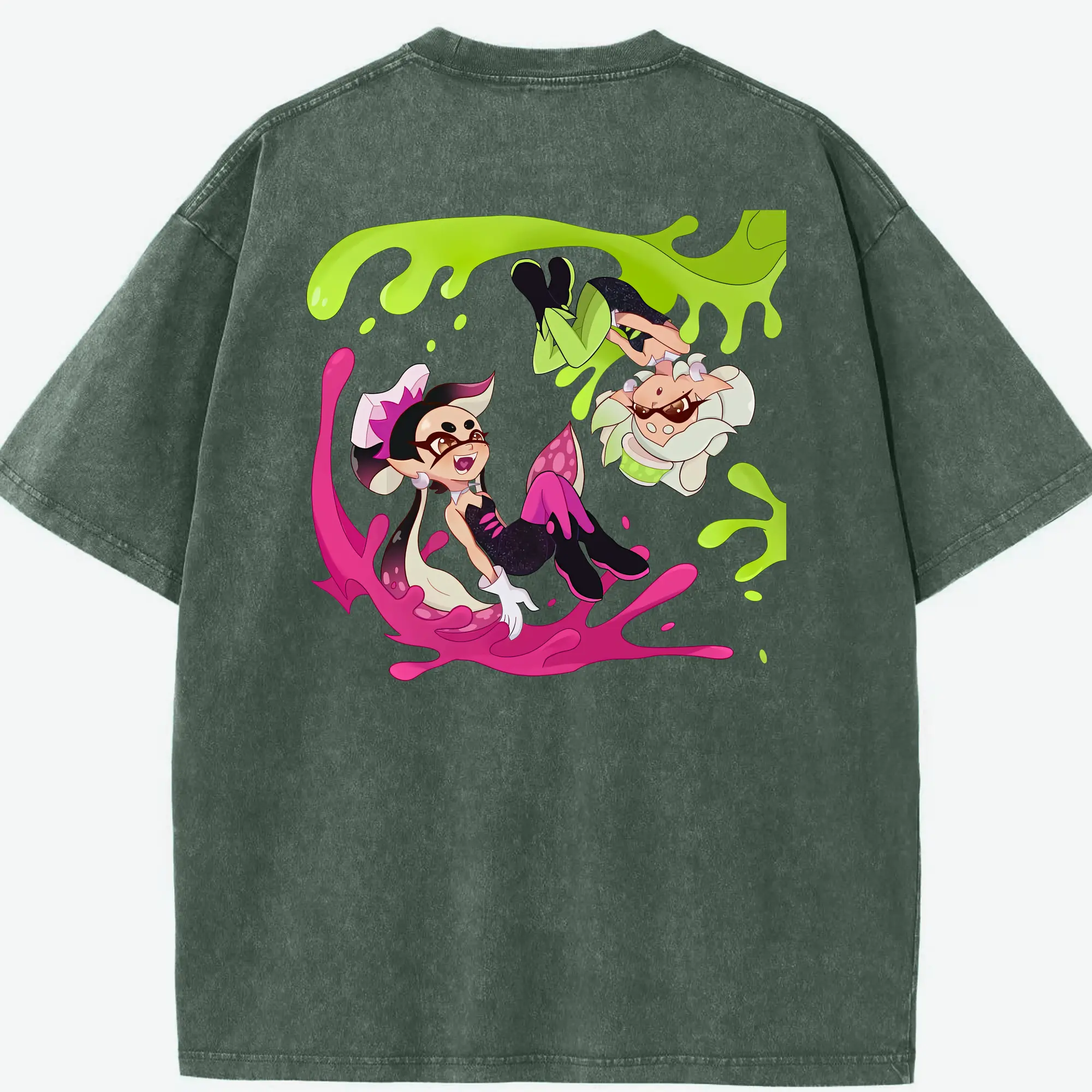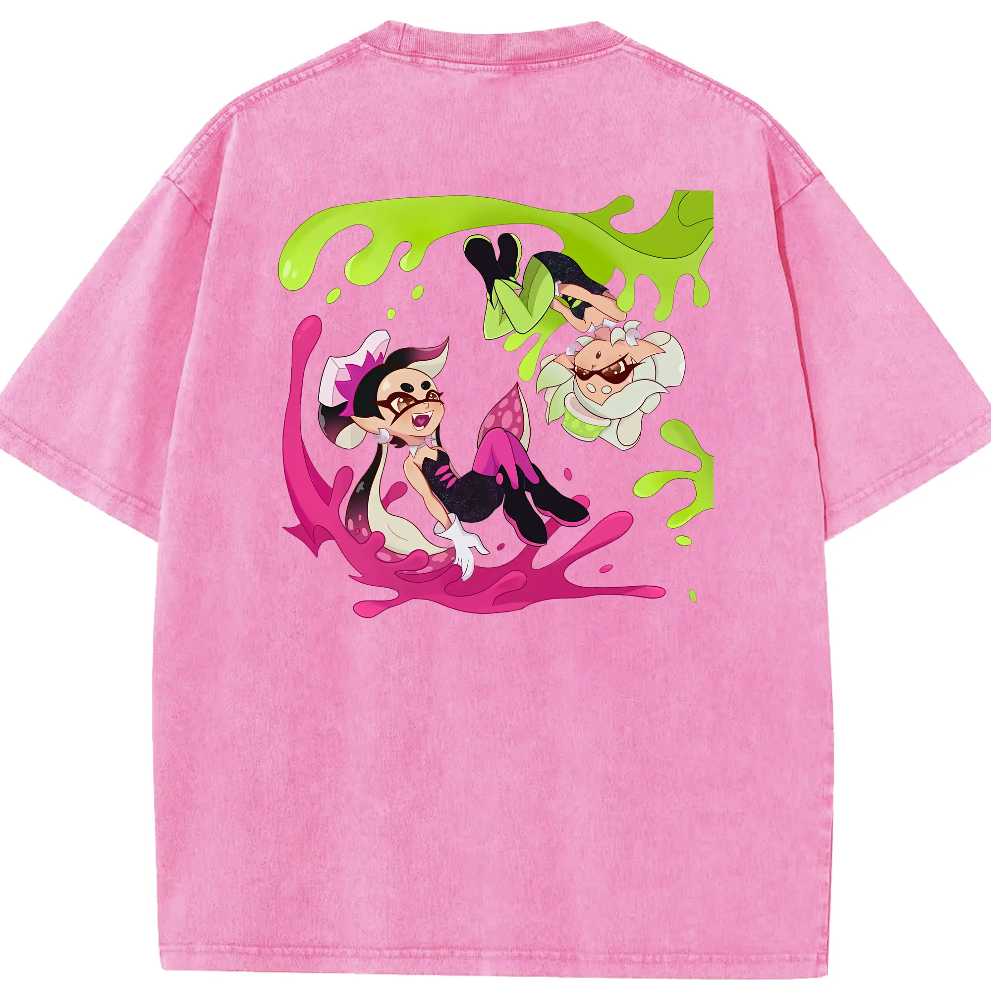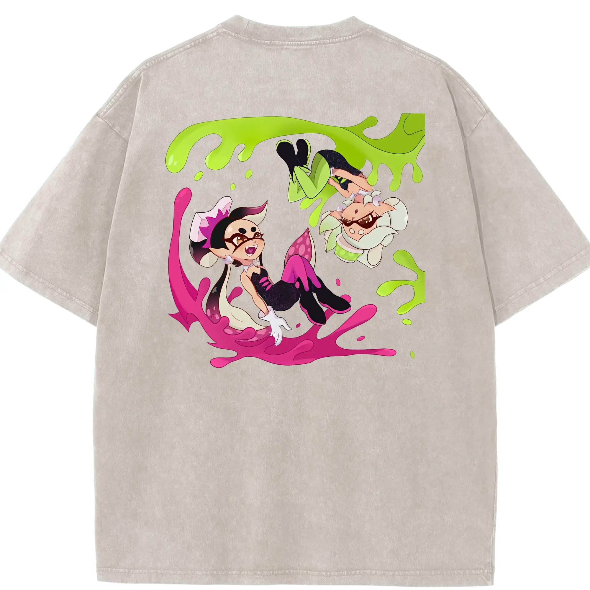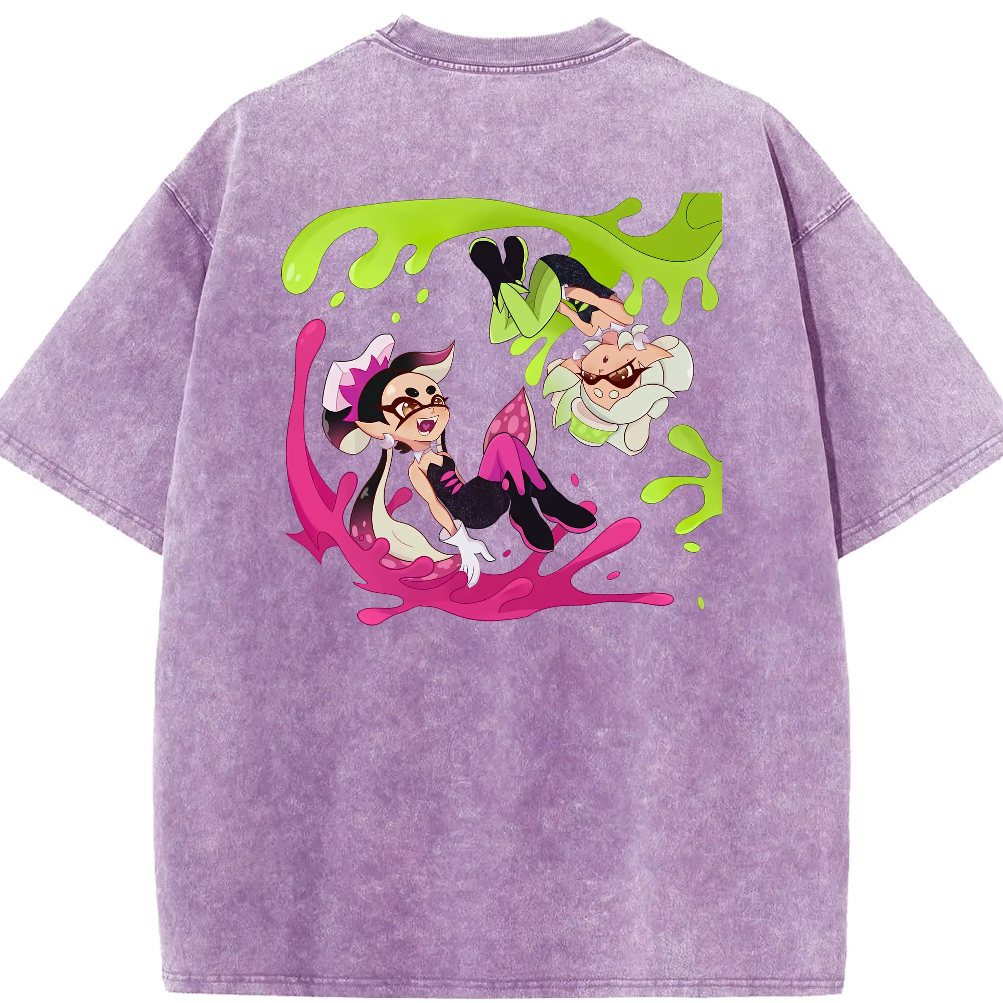 スプラトゥーン グッズ,シオカラーズ - 綿100% ヴィンテージ風 半袖Tシャツ ・ フロントプリント ・ 柔らか肌触り ・ 通気性 快適 ・ スポーツ カジュアル 外出用