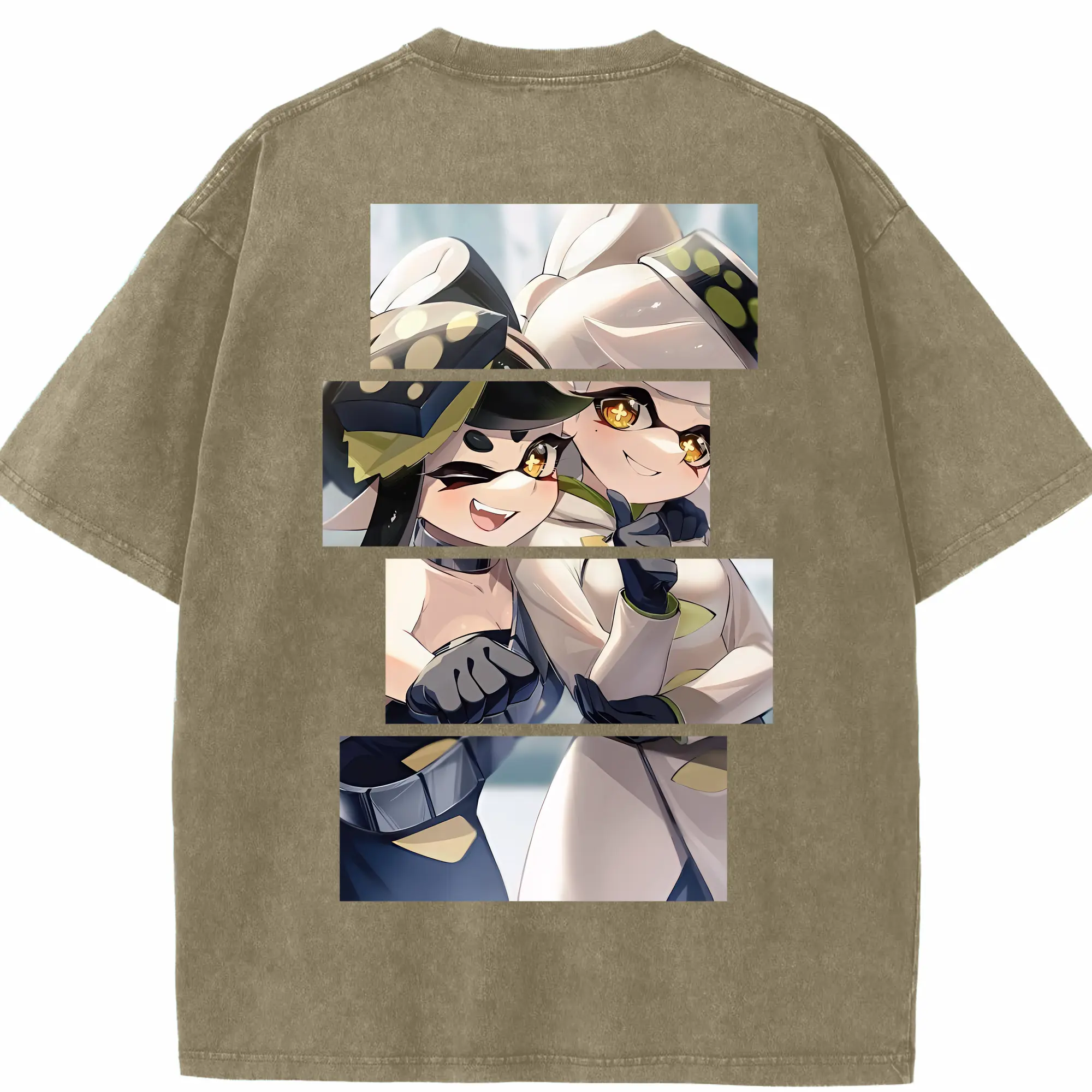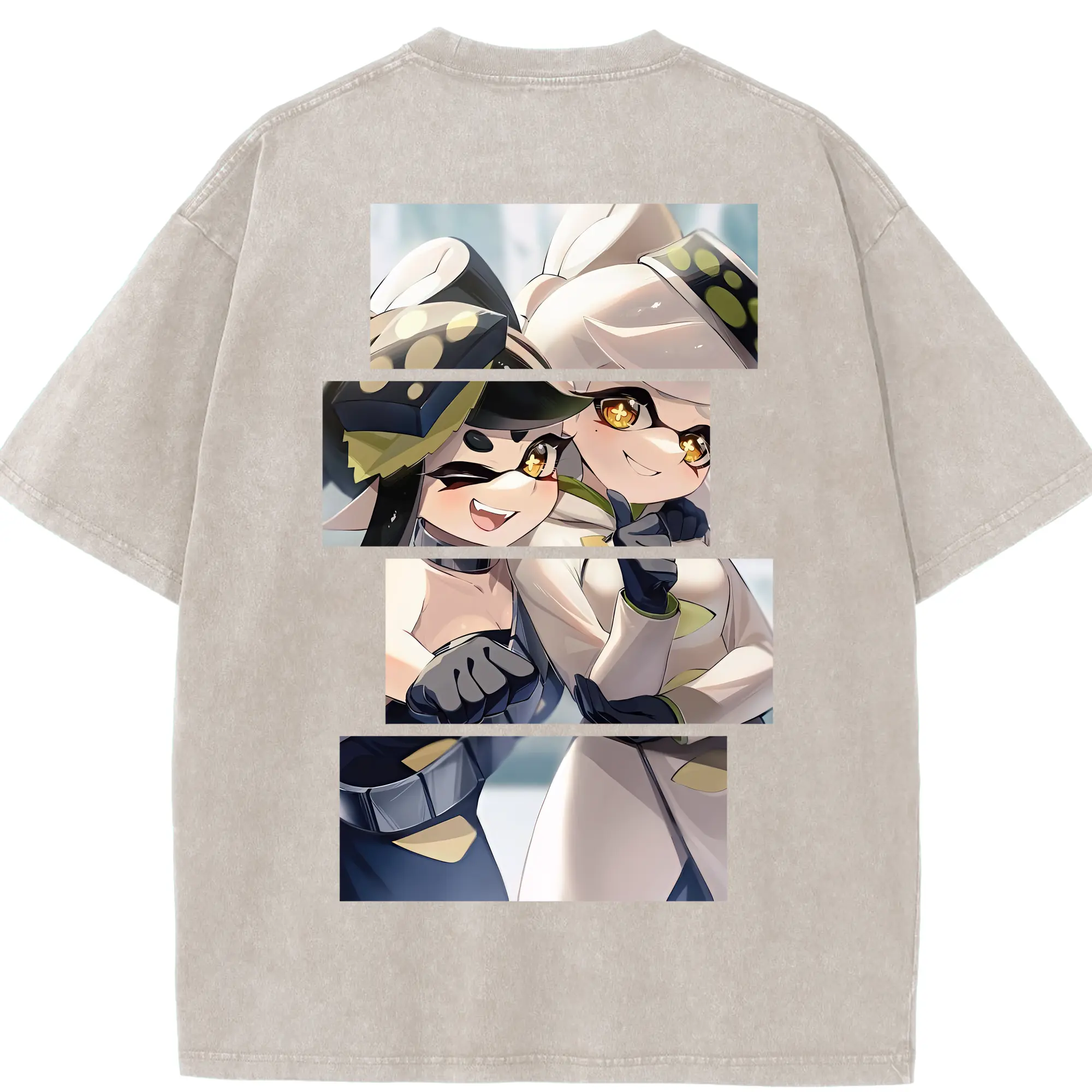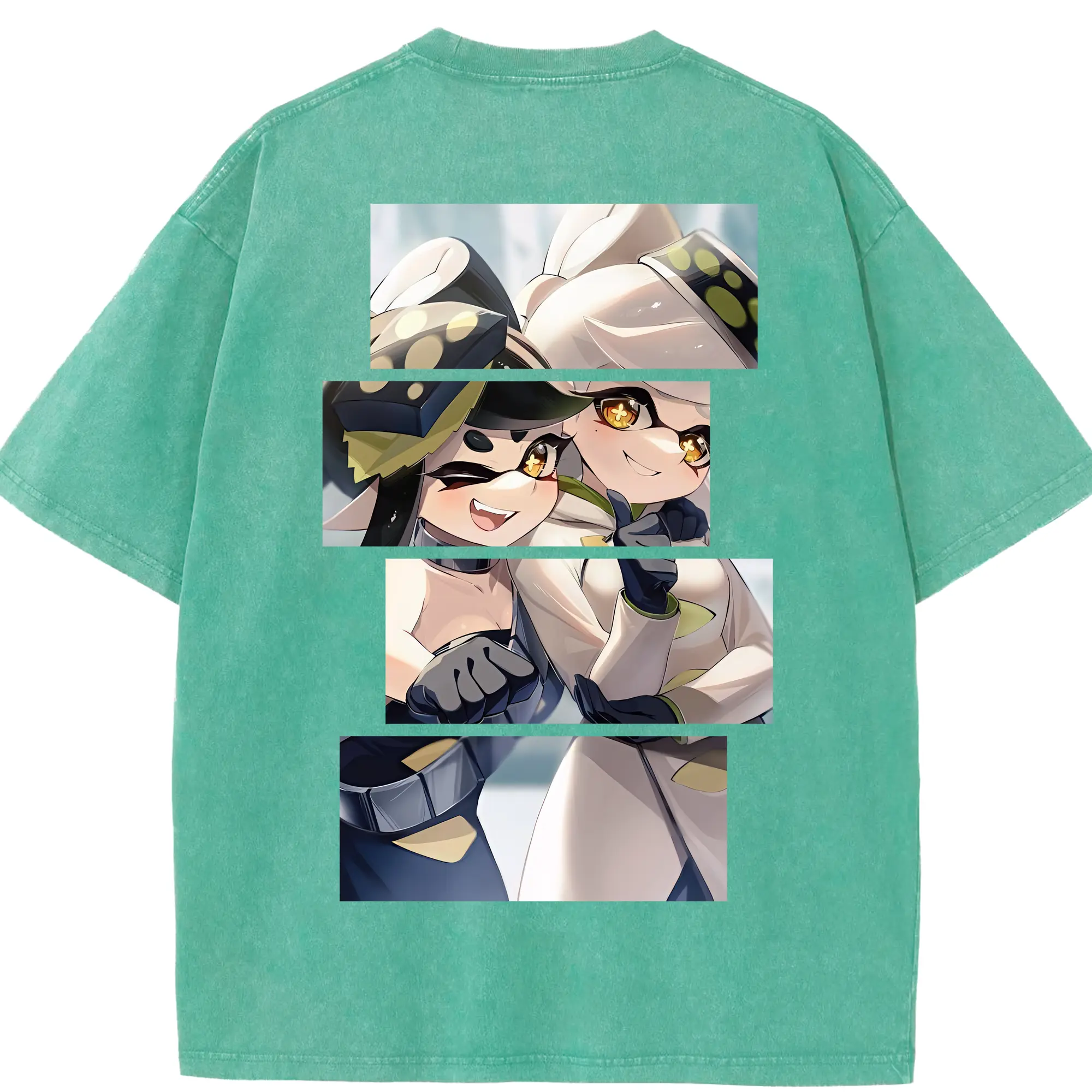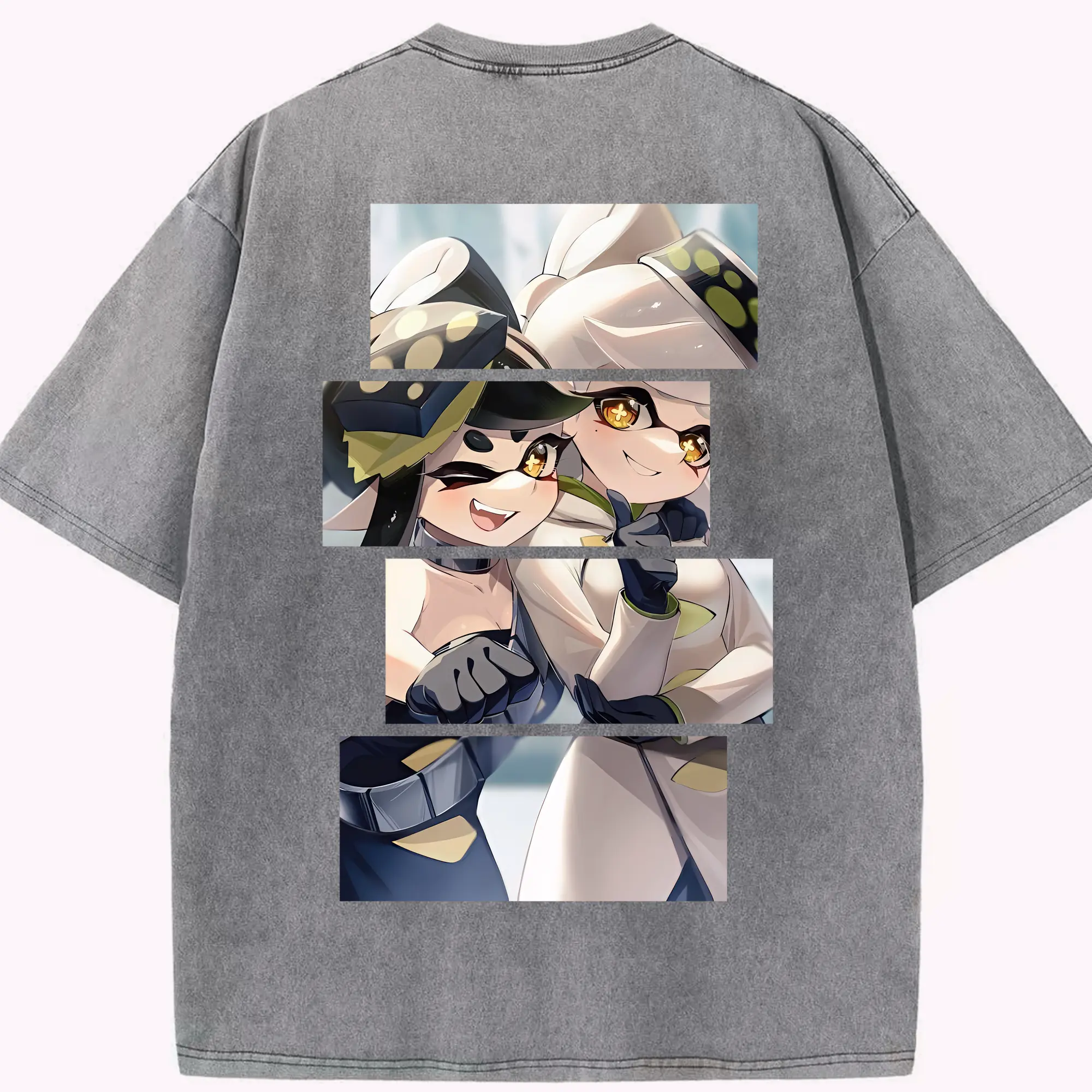 スプラトゥーン グッズ,シオカラーズ - 綿100% ヴィンテージ風 半袖Tシャツ ・ フロントプリント ・ 柔らか肌触り ・ 通気性 快適 ・ スポーツ カジュアル 外出用