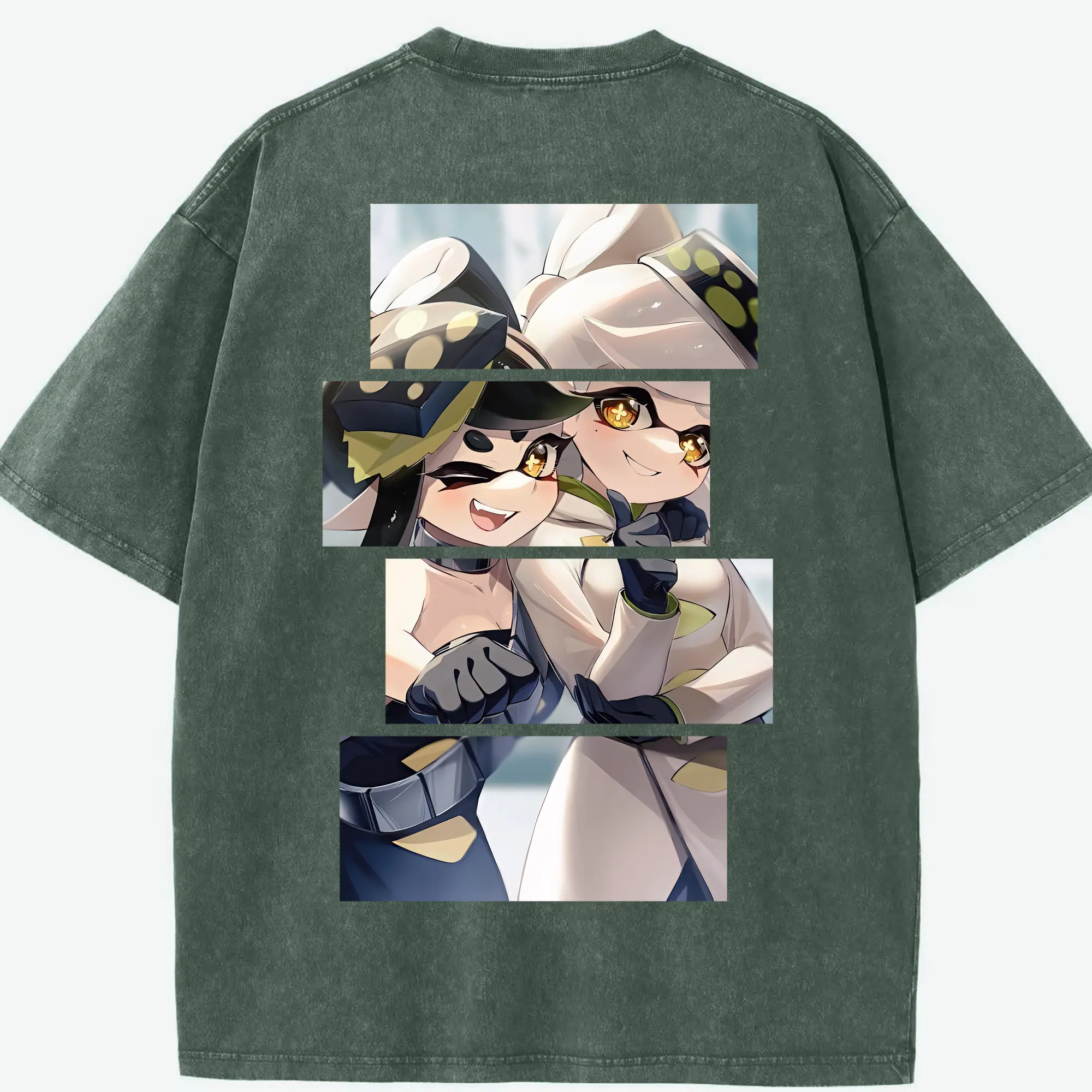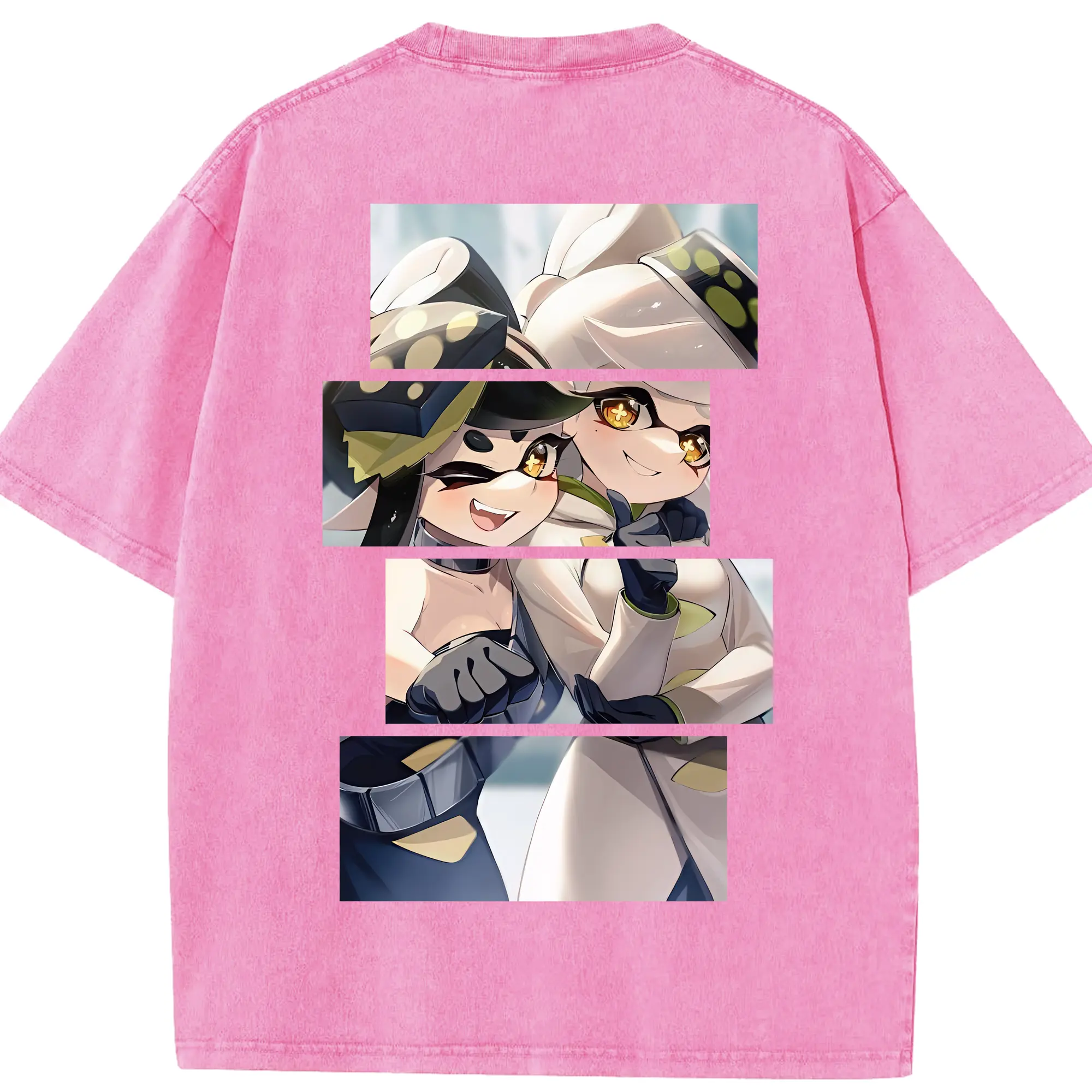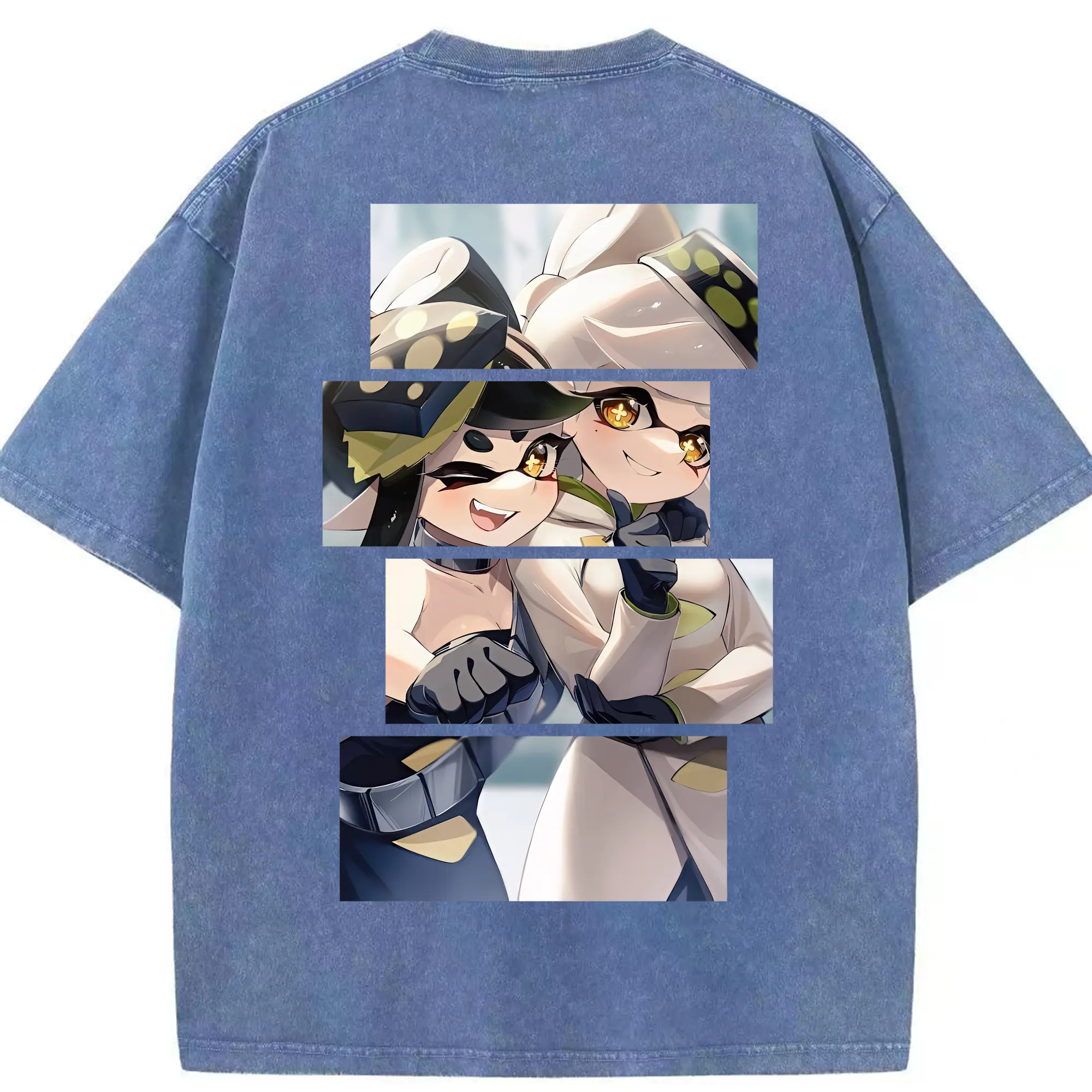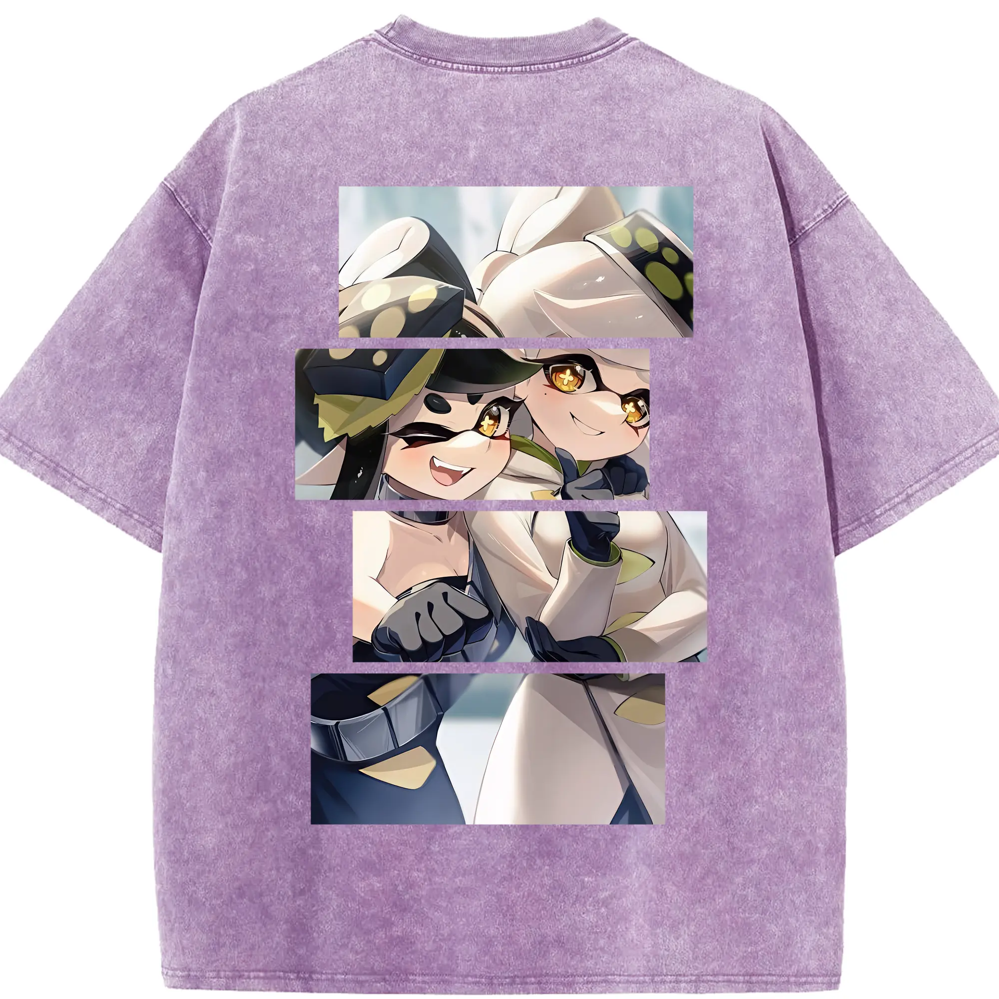 スプラトゥーン グッズ,シオカラーズ - 綿100% ヴィンテージ風 半袖Tシャツ ・ フロントプリント ・ 柔らか肌触り ・ 通気性 快適 ・ スポーツ カジュアル 外出用