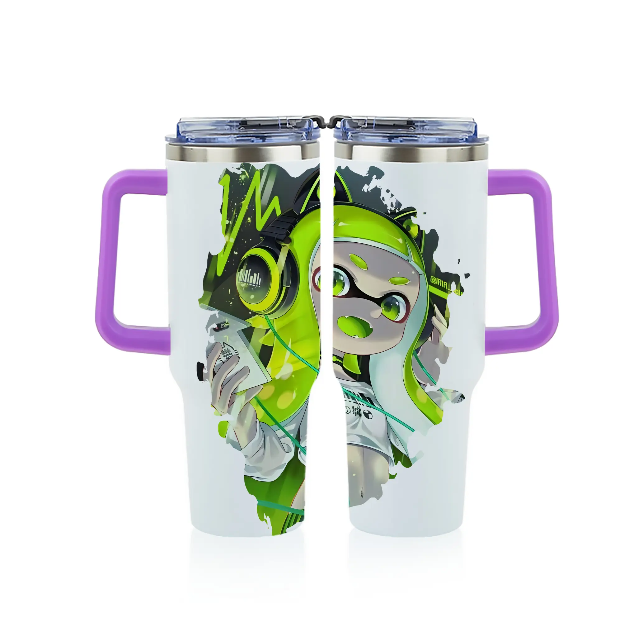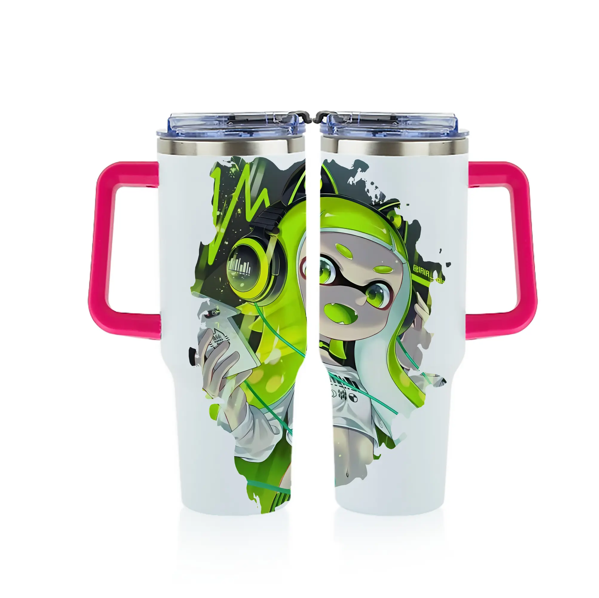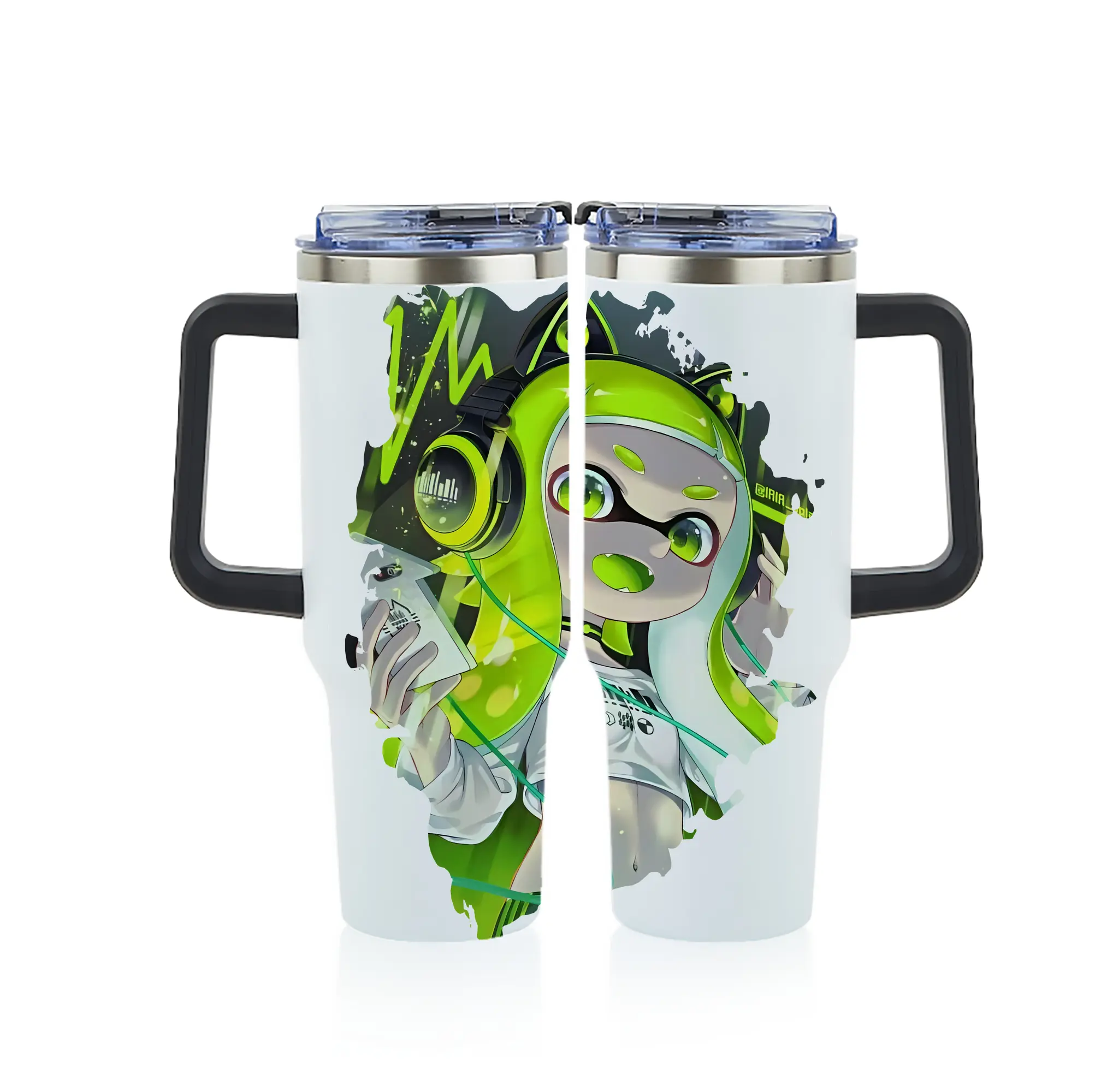 スプラトゥーン グッズ,インクリング - 1200mL フルプリント車用タンブラー ・ 304ステンレス 内側 ・ 201ステンレス 外側 ・ 保温 保冷 ・ 通勤 ドライブ アウトドア用
