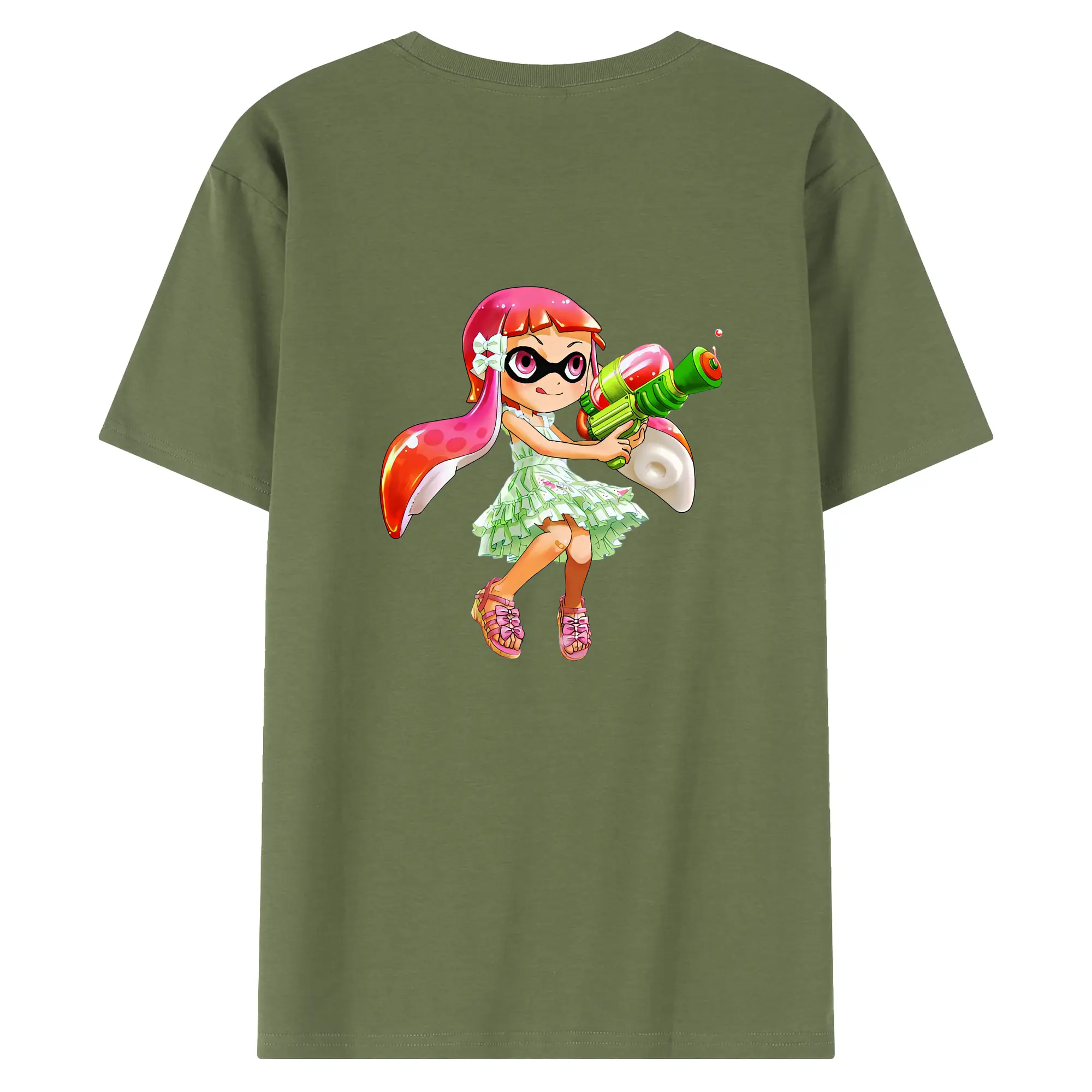 スプラトゥーン グッズ,インクリング - 綿100% 半袖Tシャツ ・ フロントプリント ・ 快適 通気性 ・ 日常使い 散歩 スポーツ用