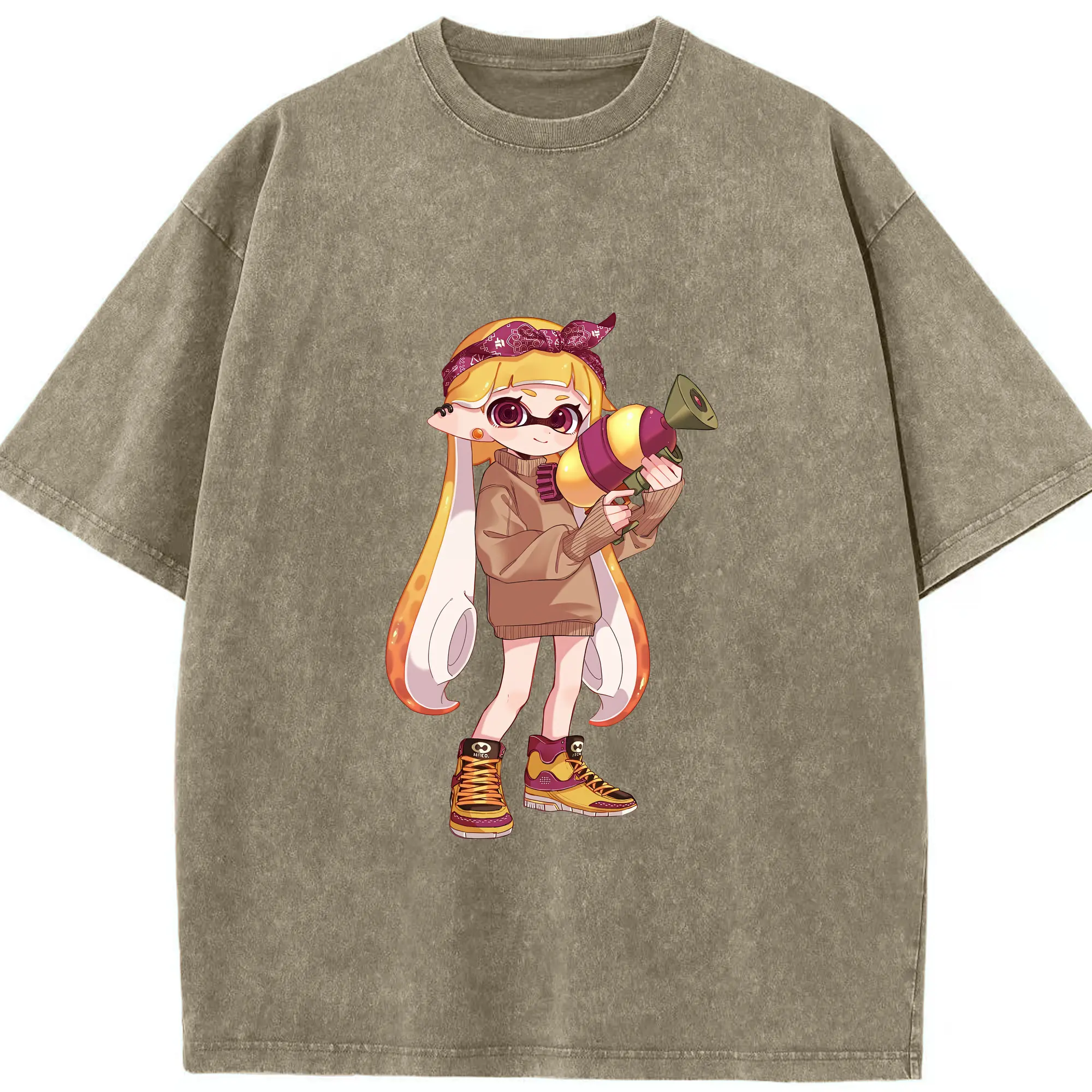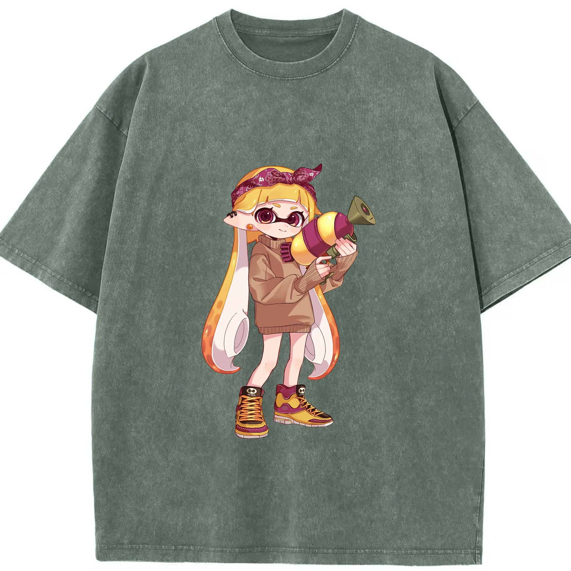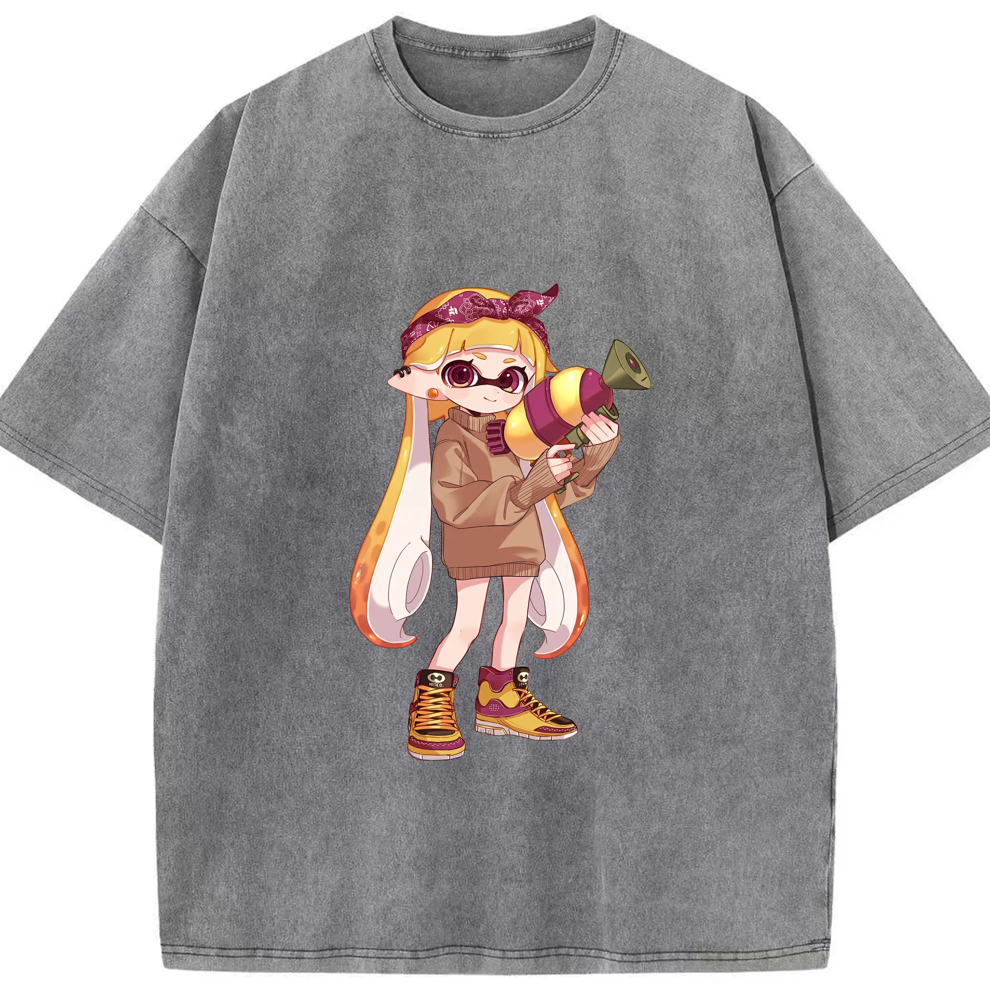 スプラトゥーン グッズ,インクリング - 綿100% ヴィンテージ風 半袖Tシャツ ・ 背面プリント ・ 柔らか肌触り ・ 通気性 快適 ・ スポーツ カジュアル 外出用
