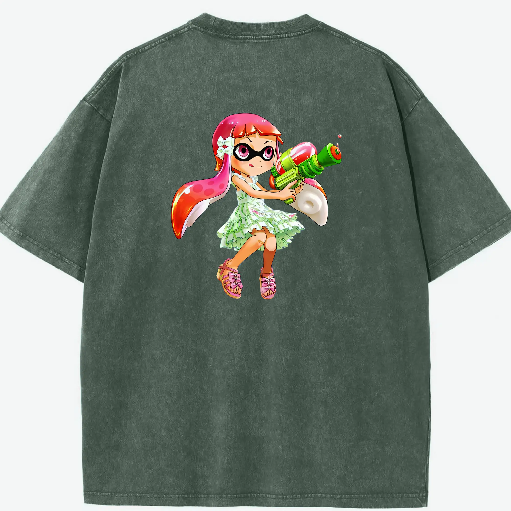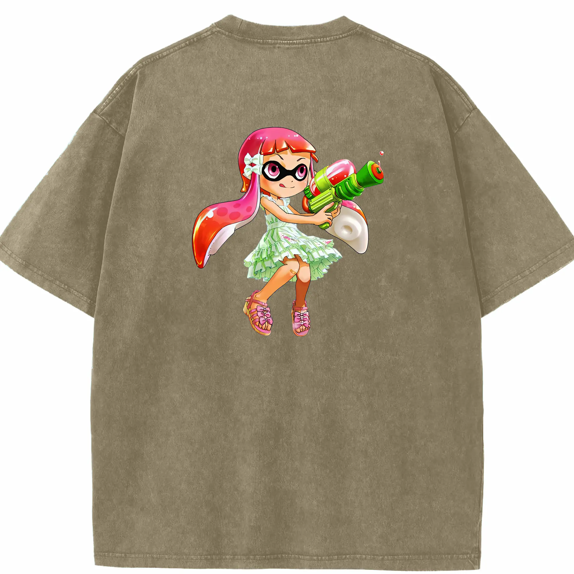 スプラトゥーン グッズ,インクリング - 綿100% ヴィンテージ風 半袖Tシャツ ・ フロントプリント ・ 柔らか肌触り ・ 通気性 快適 ・ スポーツ カジュアル 外出用
