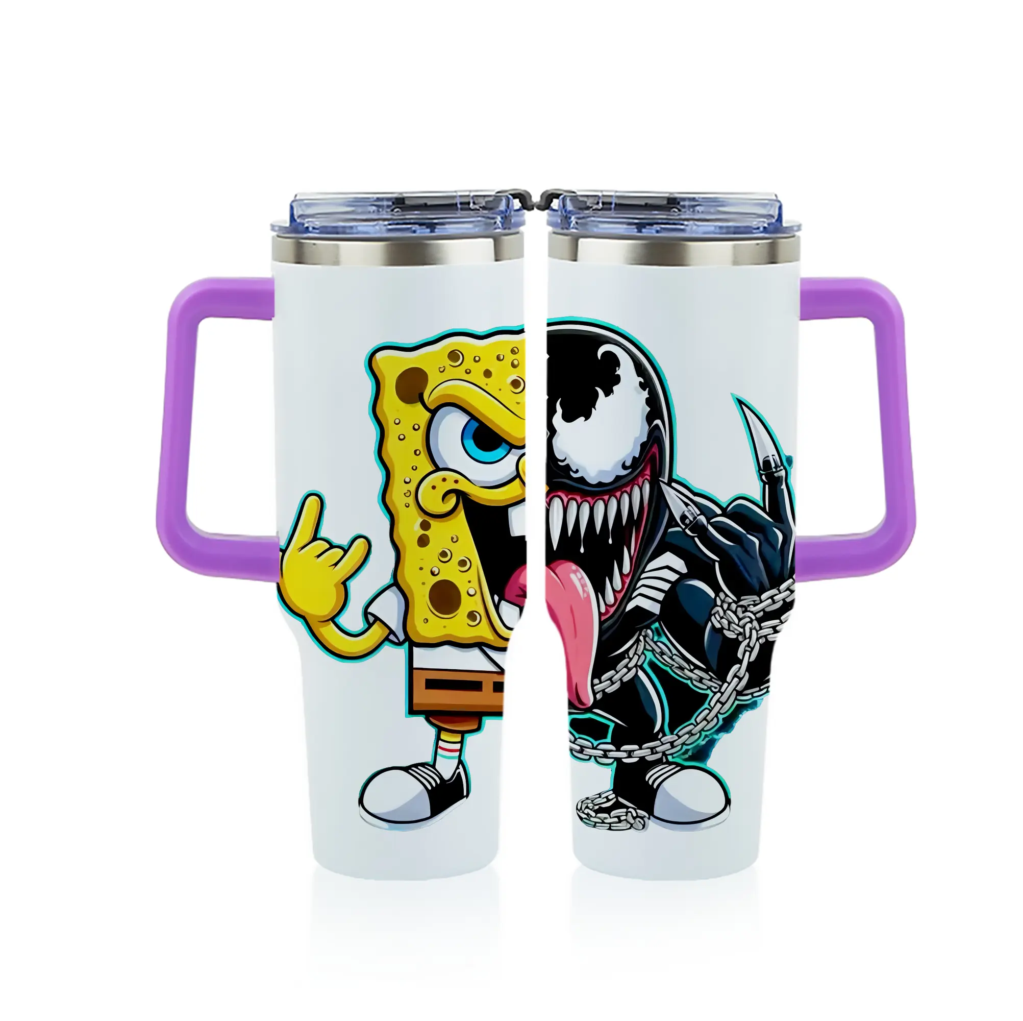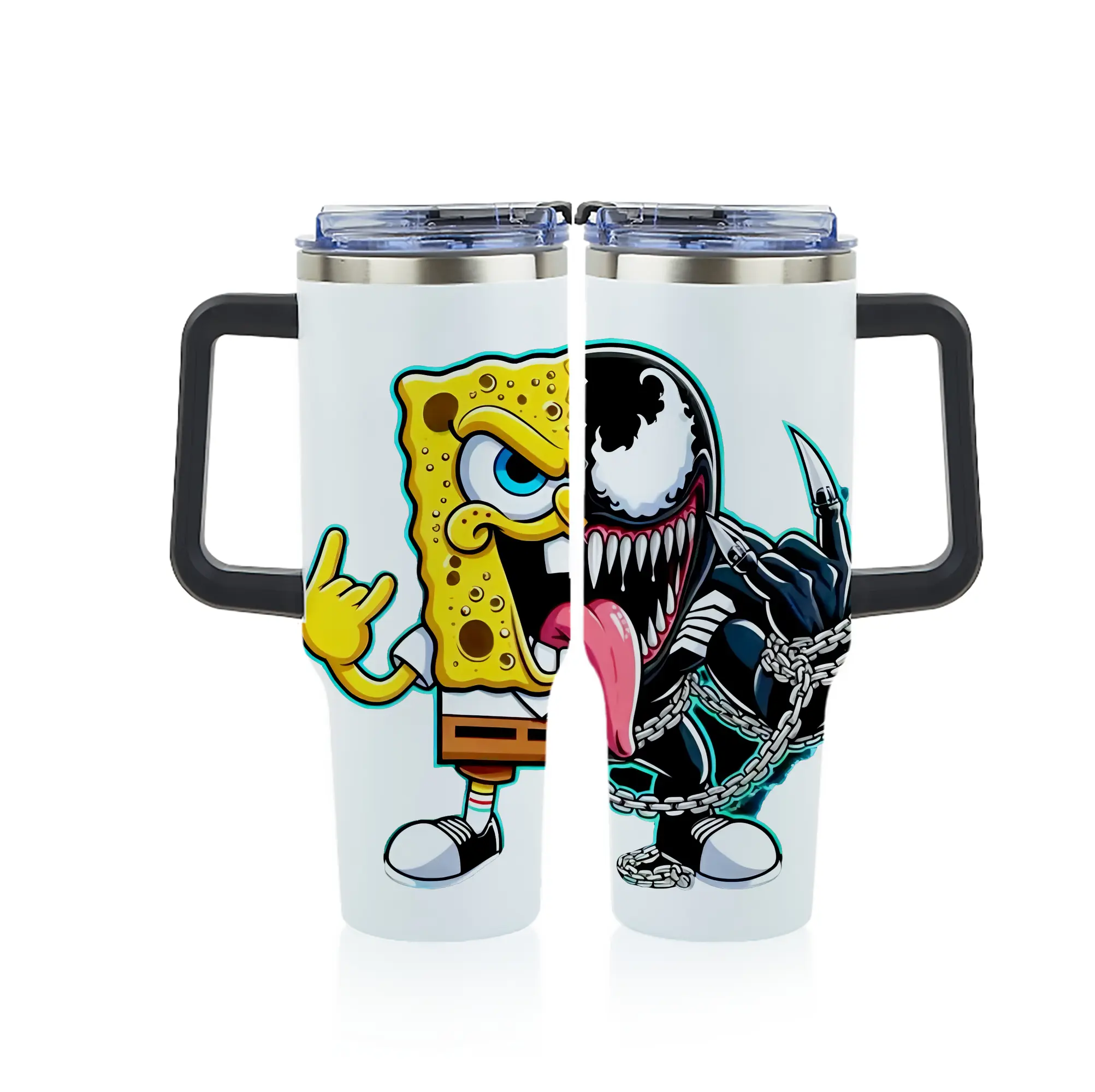 スポンジボブ グッズ スポンジボブ - 1200mL フルプリント車用タンブラー ・ 304ステンレス 内側 ・ 201ステンレス 外側 ・ 保温 保冷 ・ 通勤 ドライブ アウトドア用