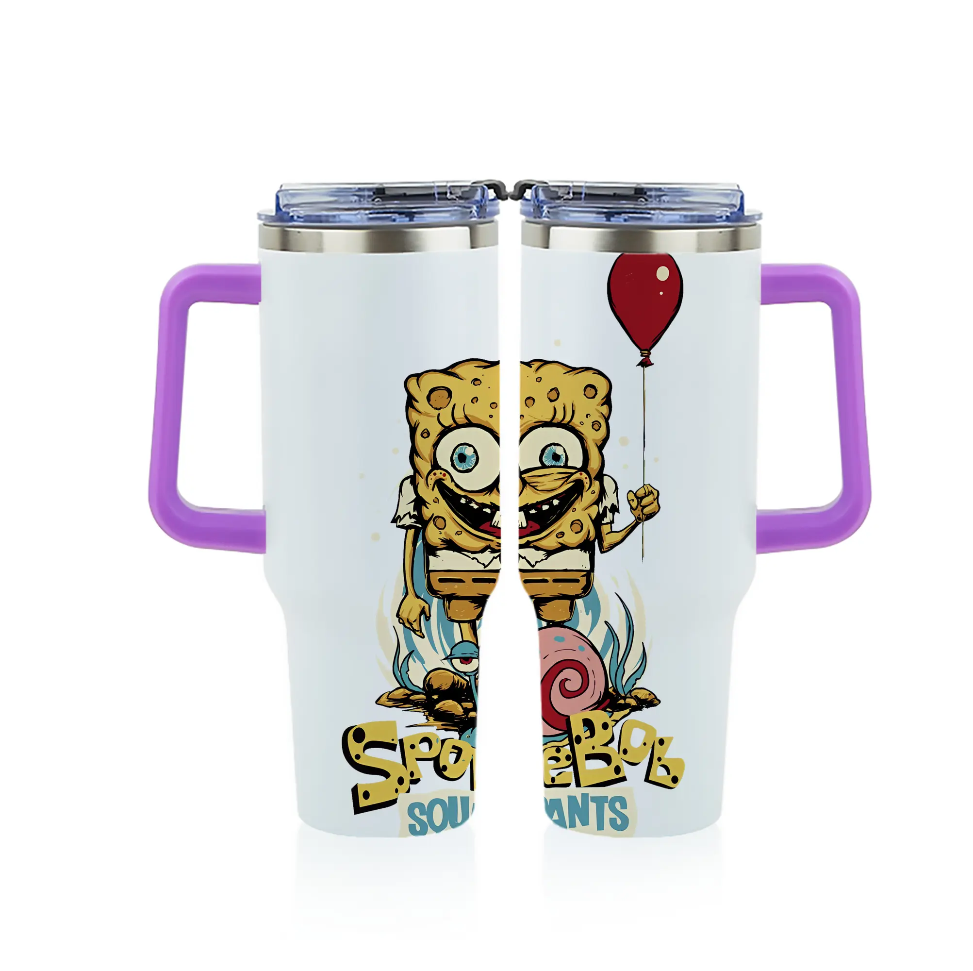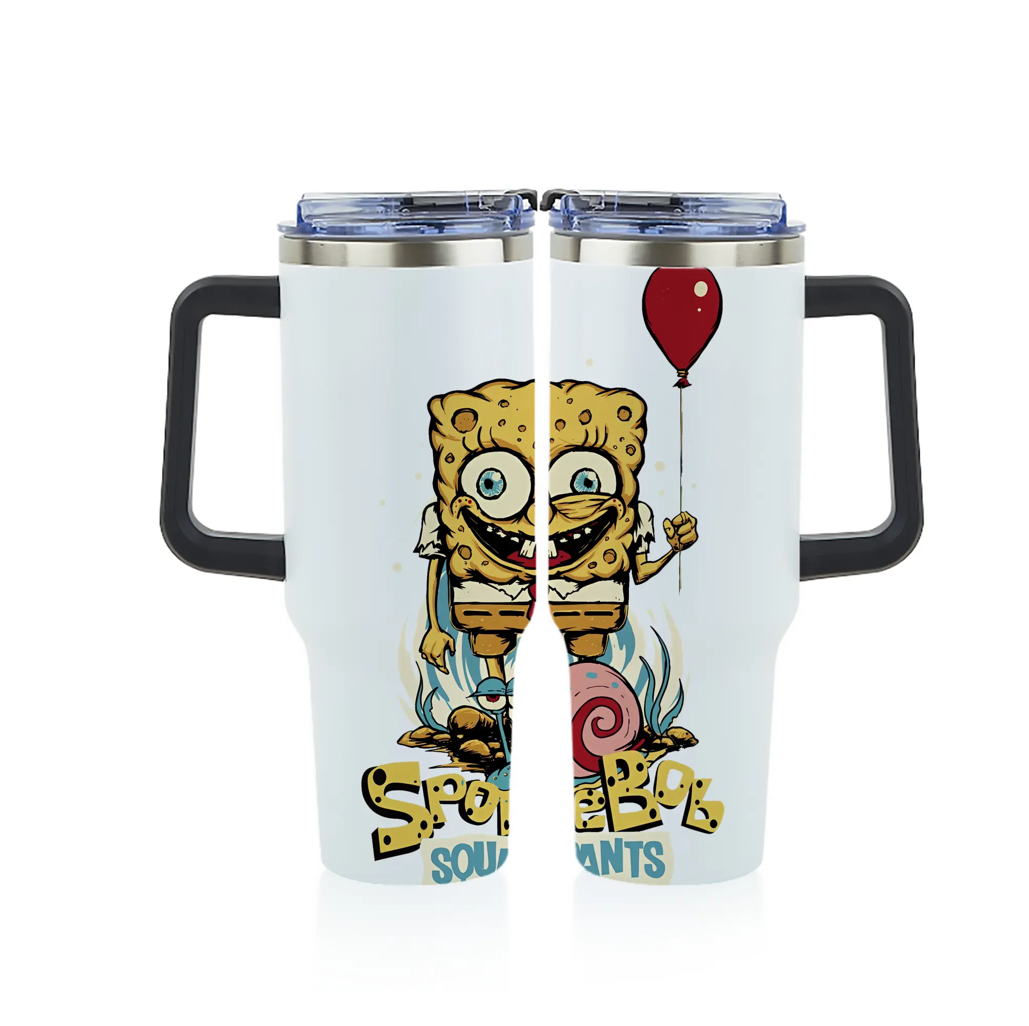 スポンジボブ グッズ スポンジボブ - 1200mL フルプリント車用タンブラー ・ 304ステンレス 内側 ・ 201ステンレス 外側 ・ 保温 保冷 ・ 通勤 ドライブ アウトドア用
