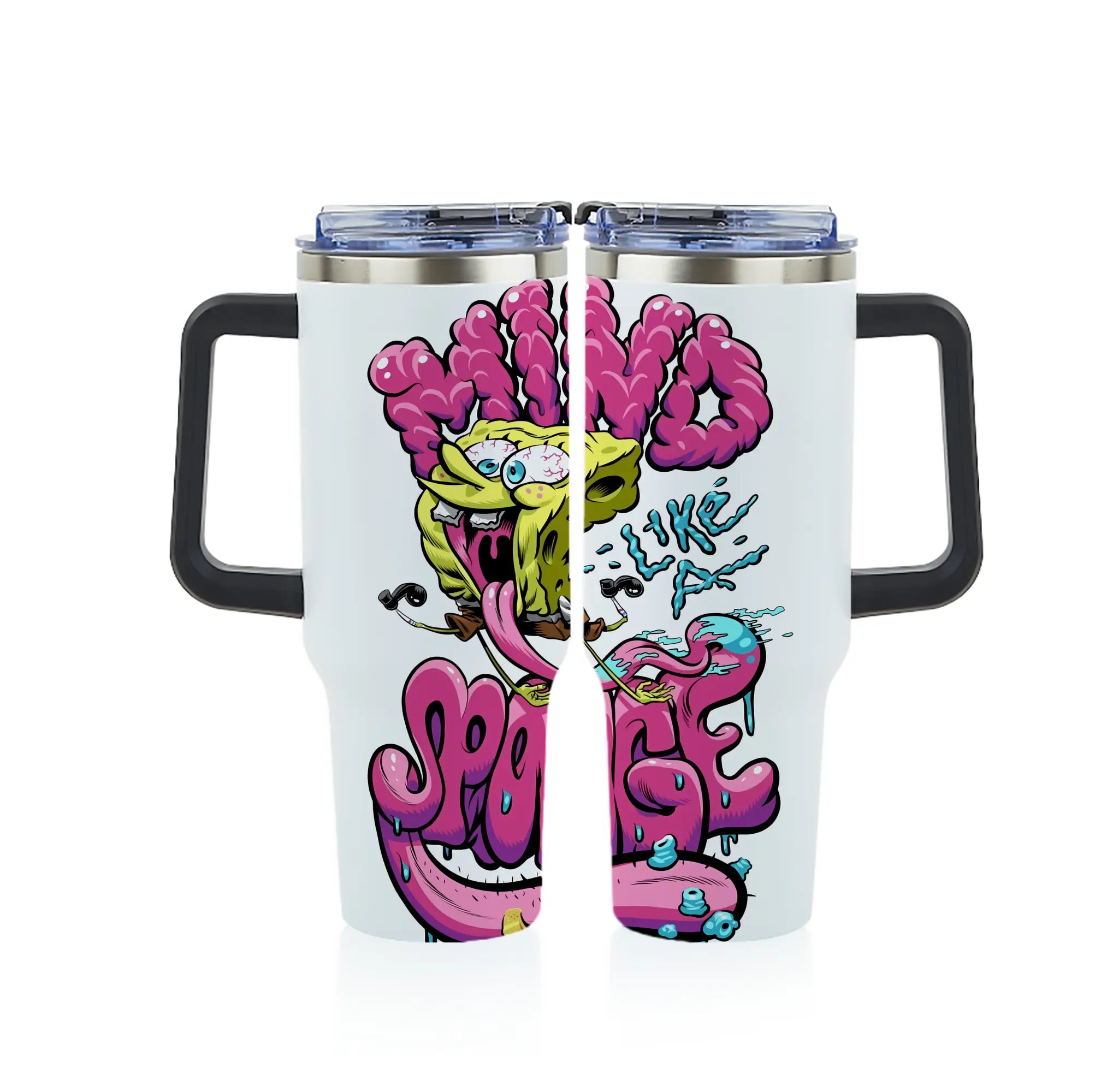 スポンジボブ グッズ スポンジボブ - 1200mL フルプリント車用タンブラー ・ 304ステンレス 内側 ・ 201ステンレス 外側 ・ 保温 保冷 ・ 通勤 ドライブ アウトドア用