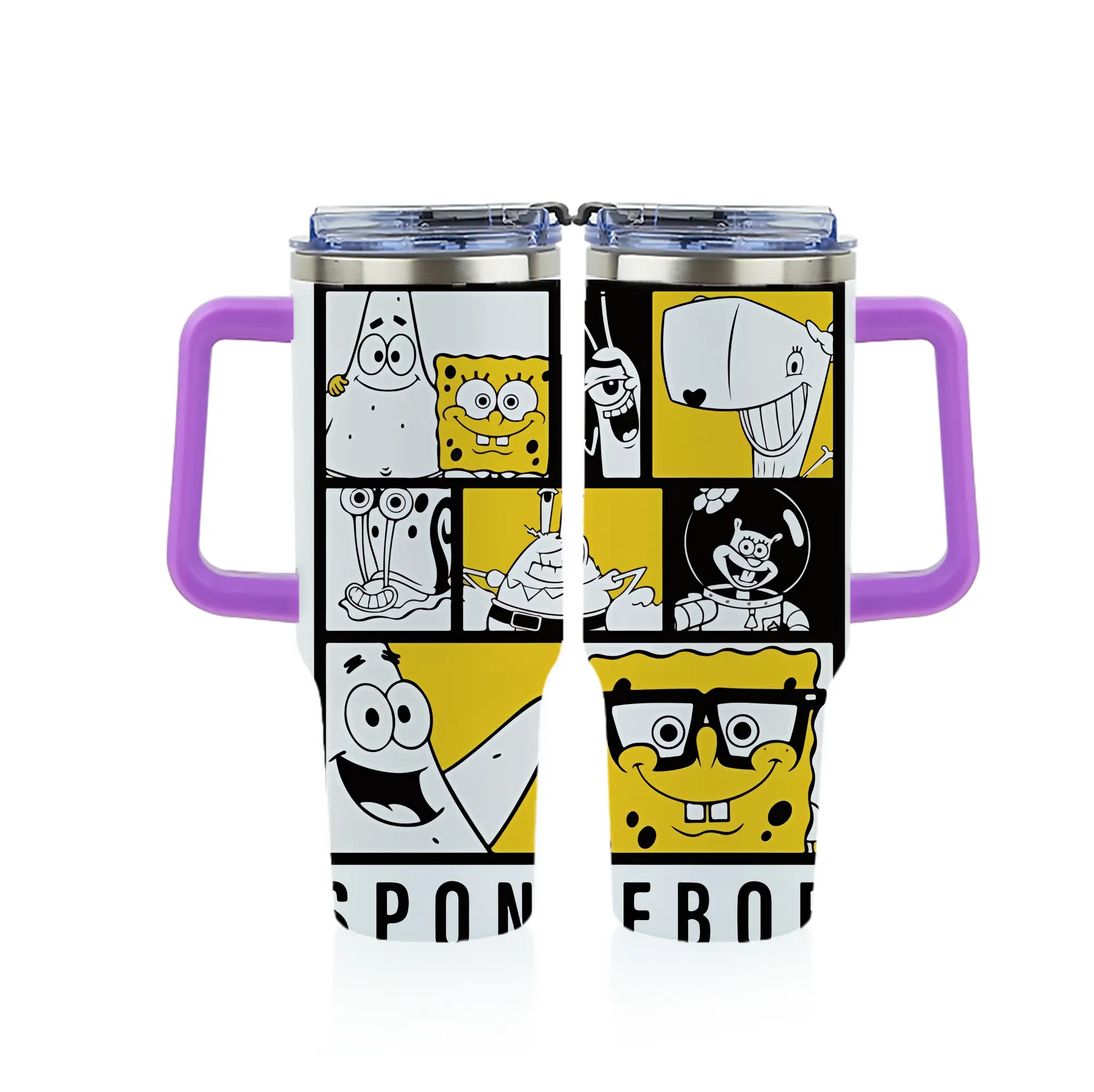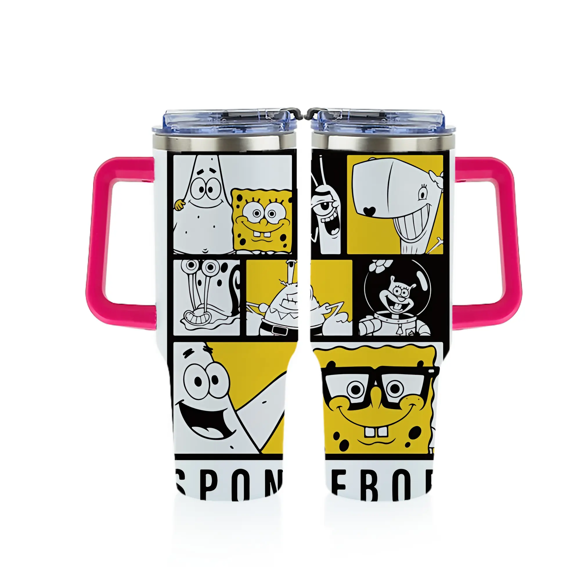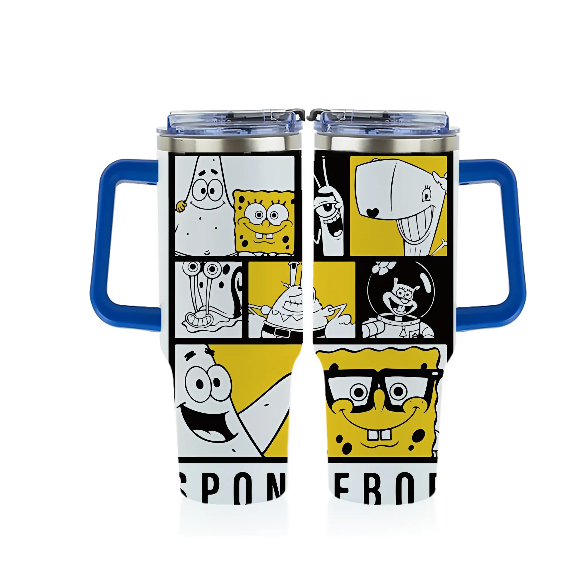 スポンジボブ グッズ スポンジボブ - 1200mL フルプリント車用タンブラー ・ 304ステンレス 内側 ・ 201ステンレス 外側 ・ 保温 保冷 ・ 通勤 ドライブ アウトドア用