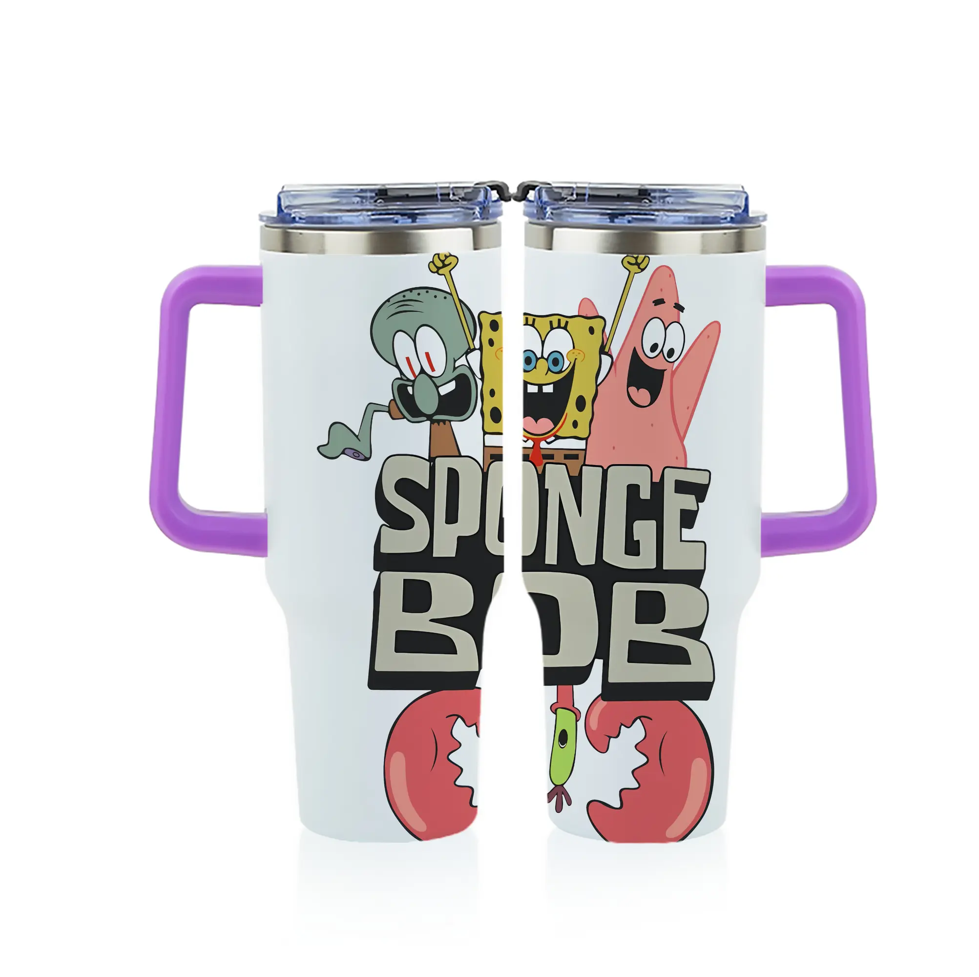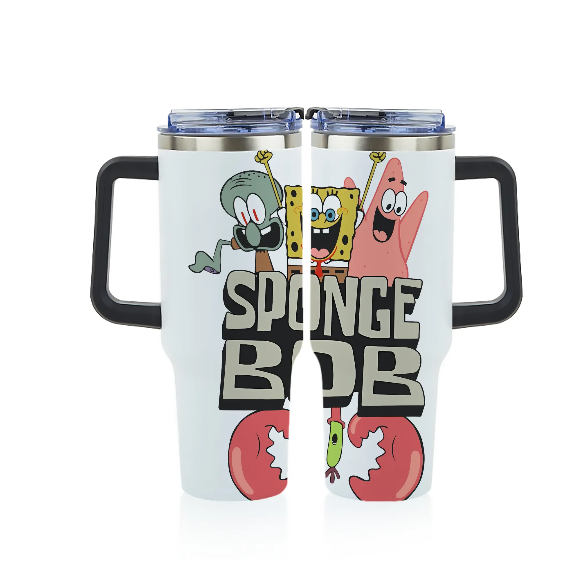 スポンジボブ グッズ スポンジボブ - 1200mL フルプリント車用タンブラー ・ 304ステンレス 内側 ・ 201ステンレス 外側 ・ 保温 保冷 ・ 通勤 ドライブ アウトドア用