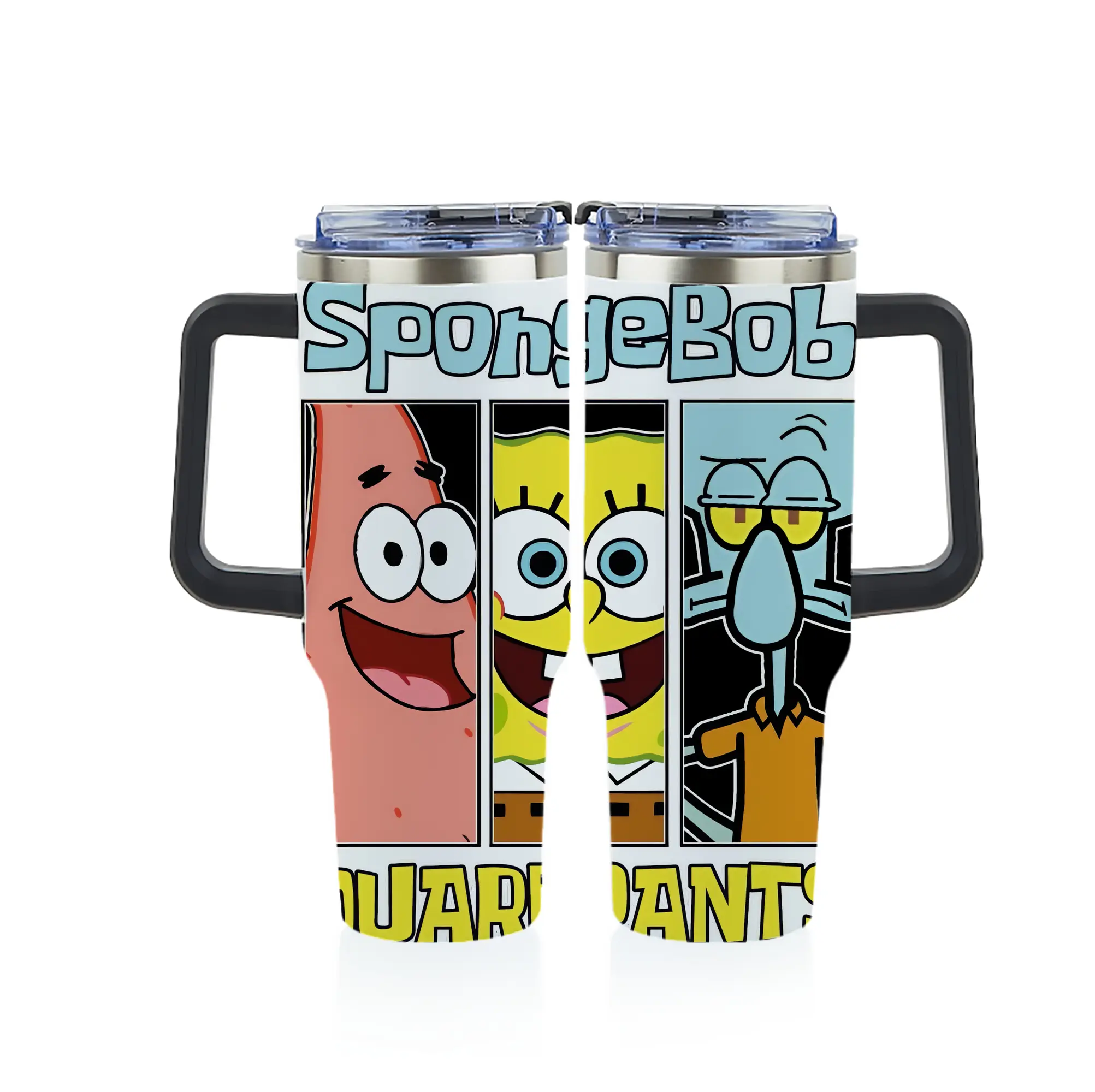 スポンジボブ グッズ スポンジボブ - 1200mL フルプリント車用タンブラー ・ 304ステンレス 内側 ・ 201ステンレス 外側 ・ 保温 保冷 ・ 通勤 ドライブ アウトドア用