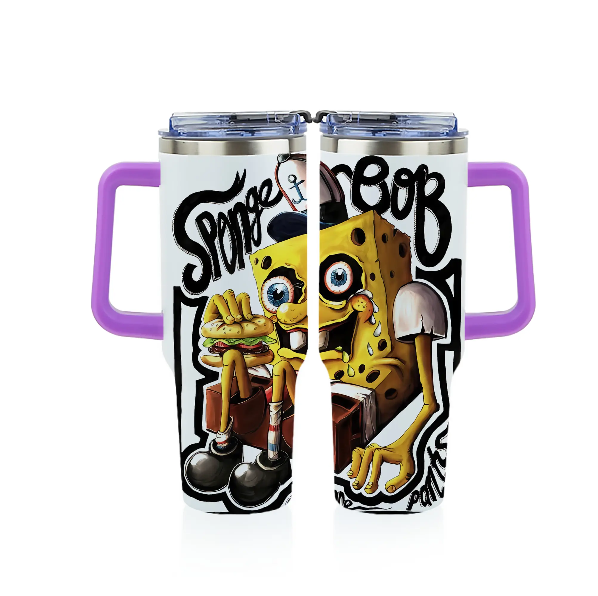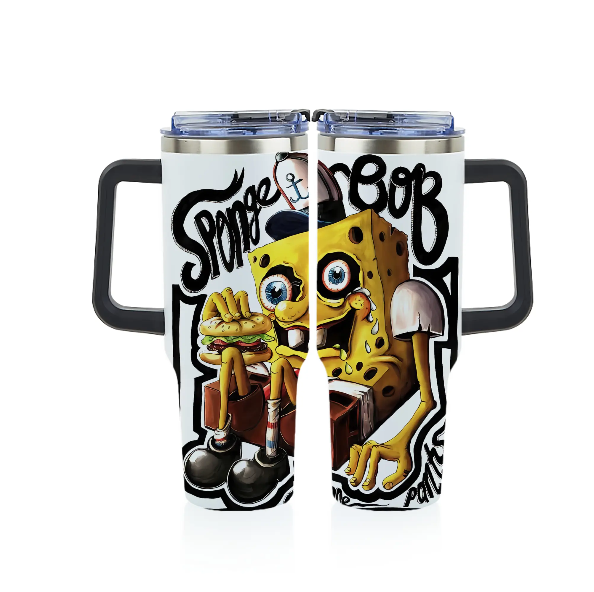 スポンジボブ グッズ スポンジボブ - 1200mL フルプリント車用タンブラー ・ 304ステンレス 内側 ・ 201ステンレス 外側 ・ 保温 保冷 ・ 通勤 ドライブ アウトドア用