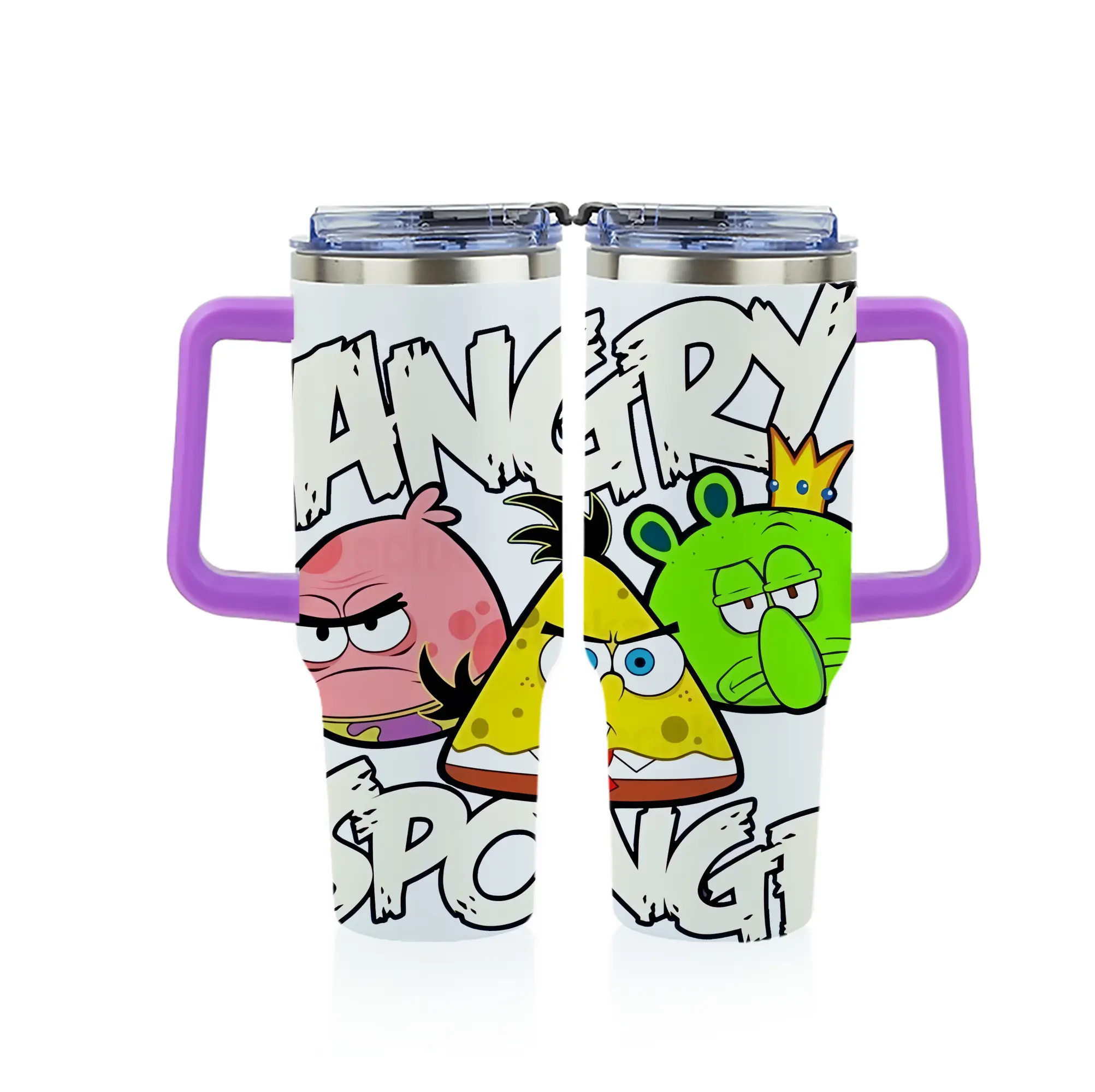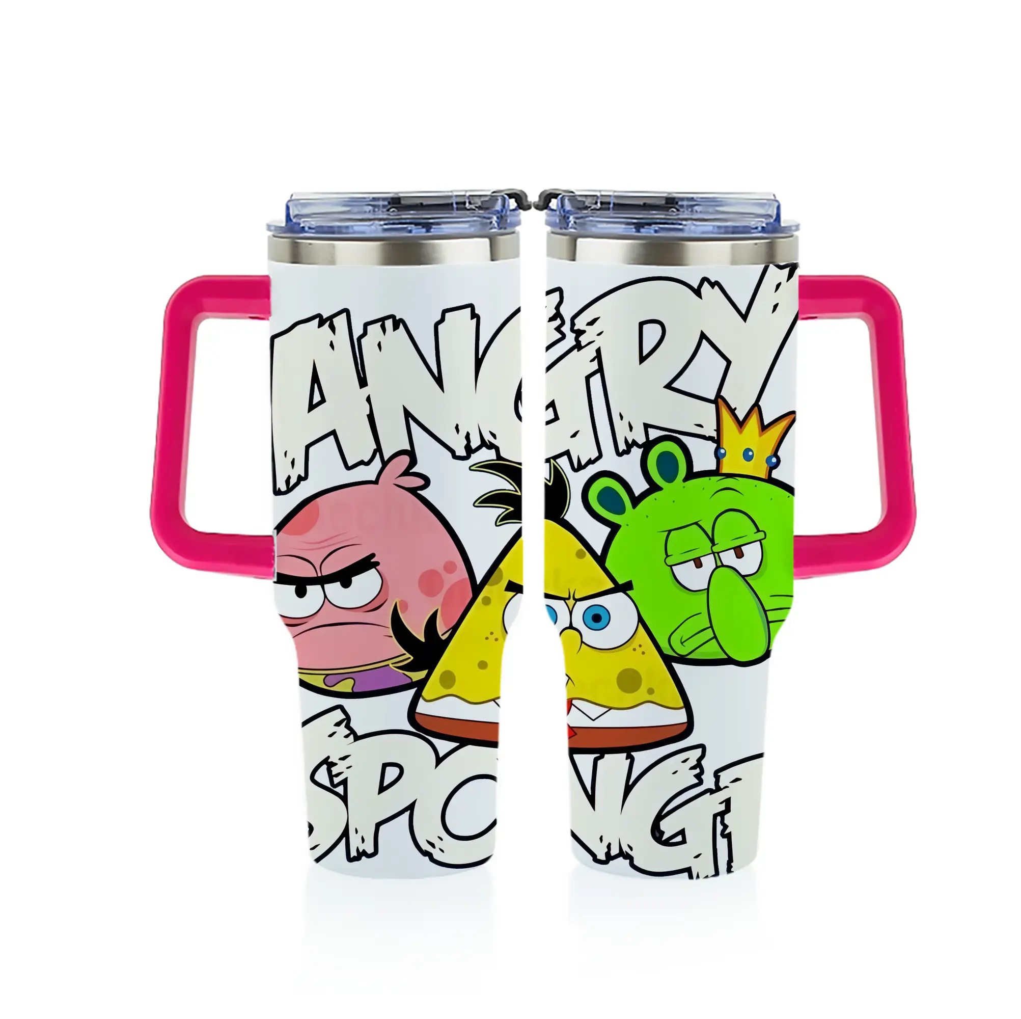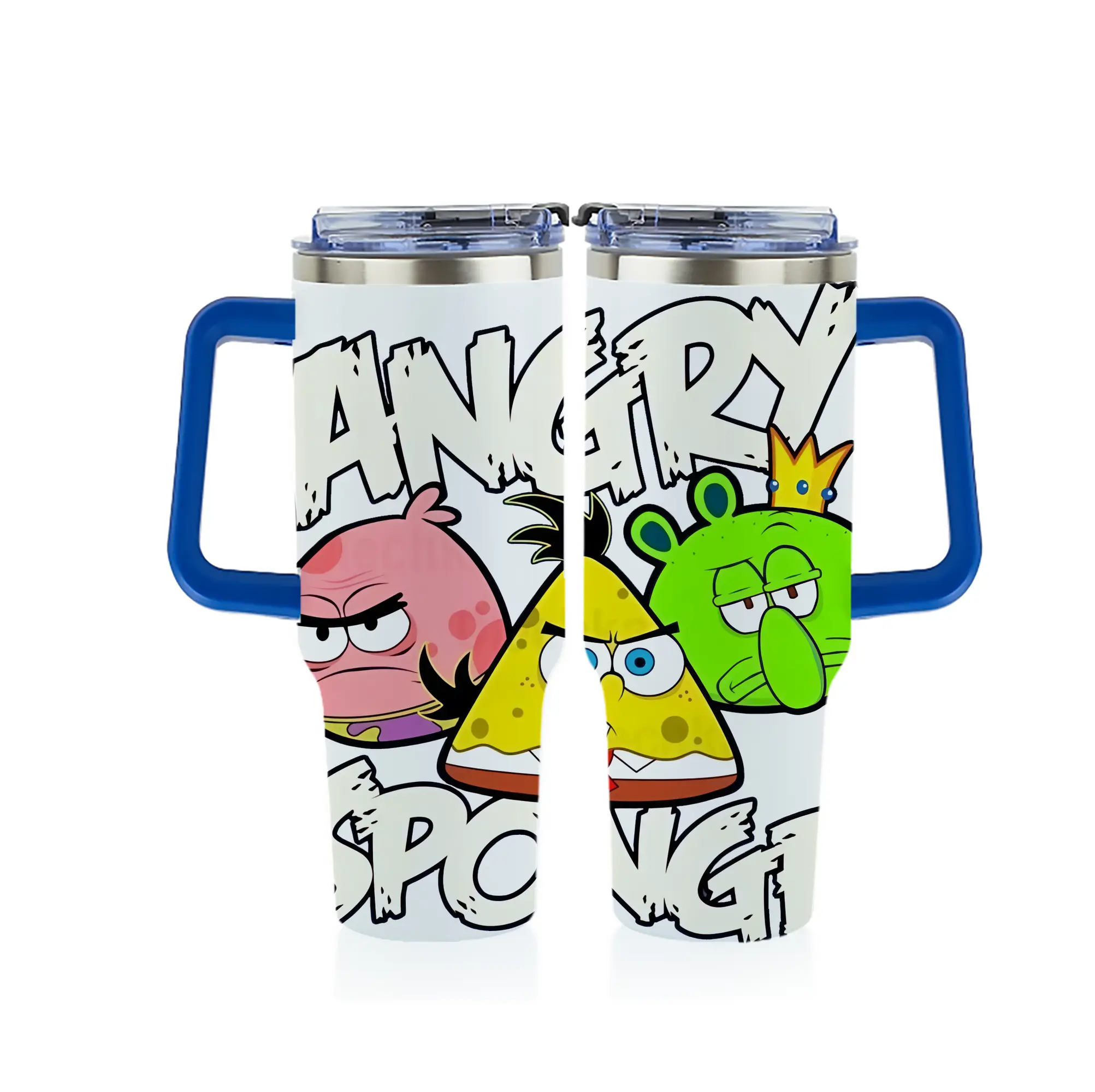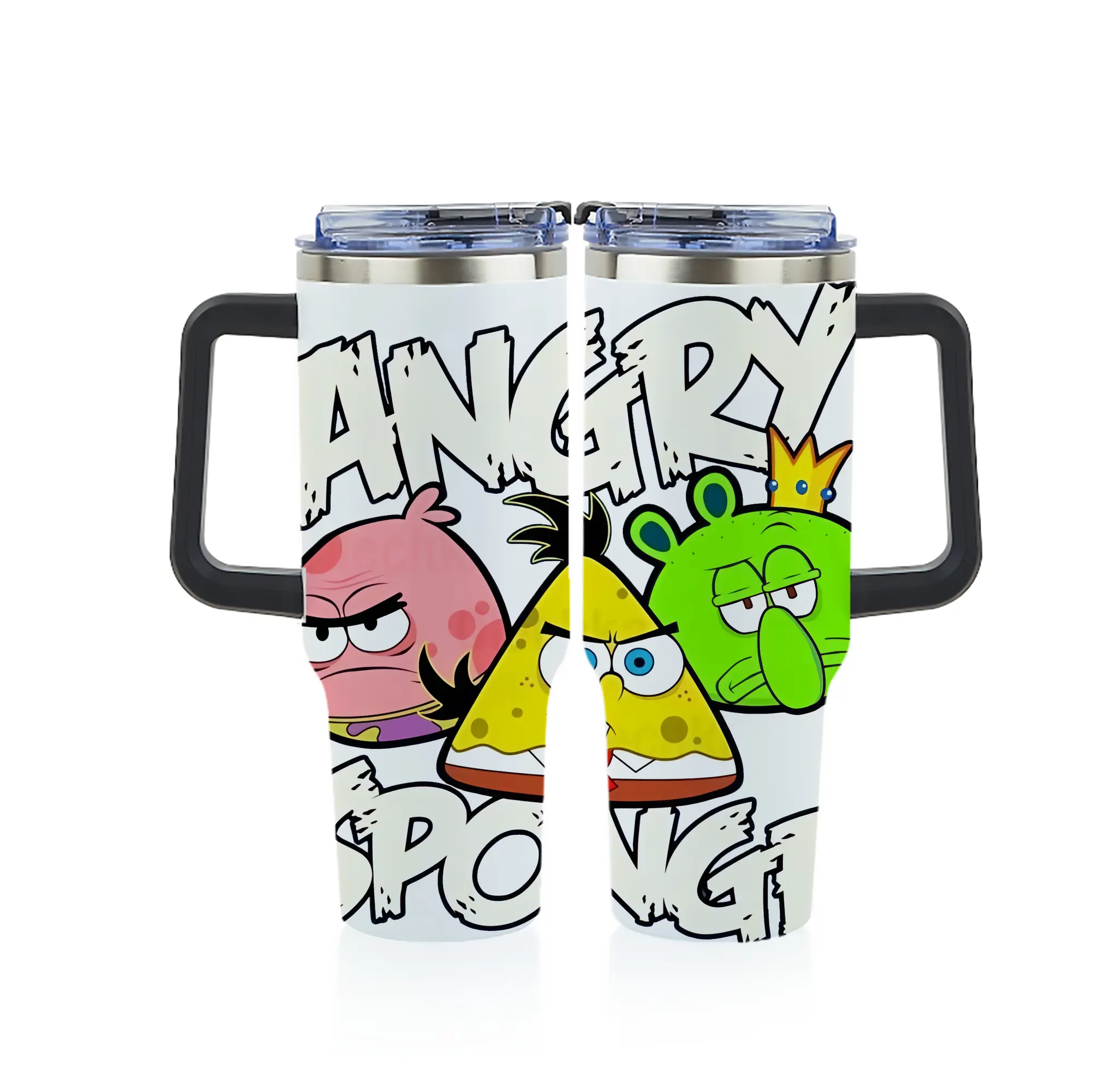 スポンジボブ グッズ スポンジボブ - 1200mL フルプリント車用タンブラー ・ 304ステンレス 内側 ・ 201ステンレス 外側 ・ 保温 保冷 ・ 通勤 ドライブ アウトドア用