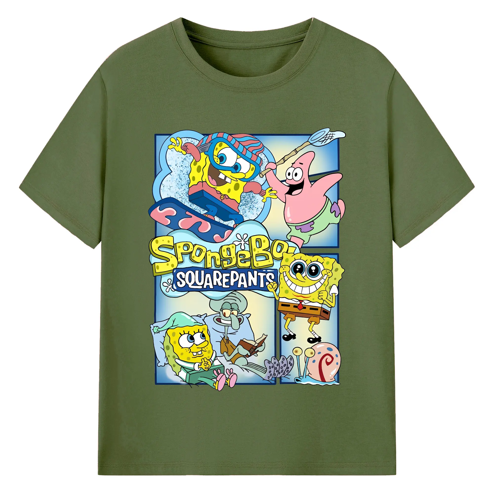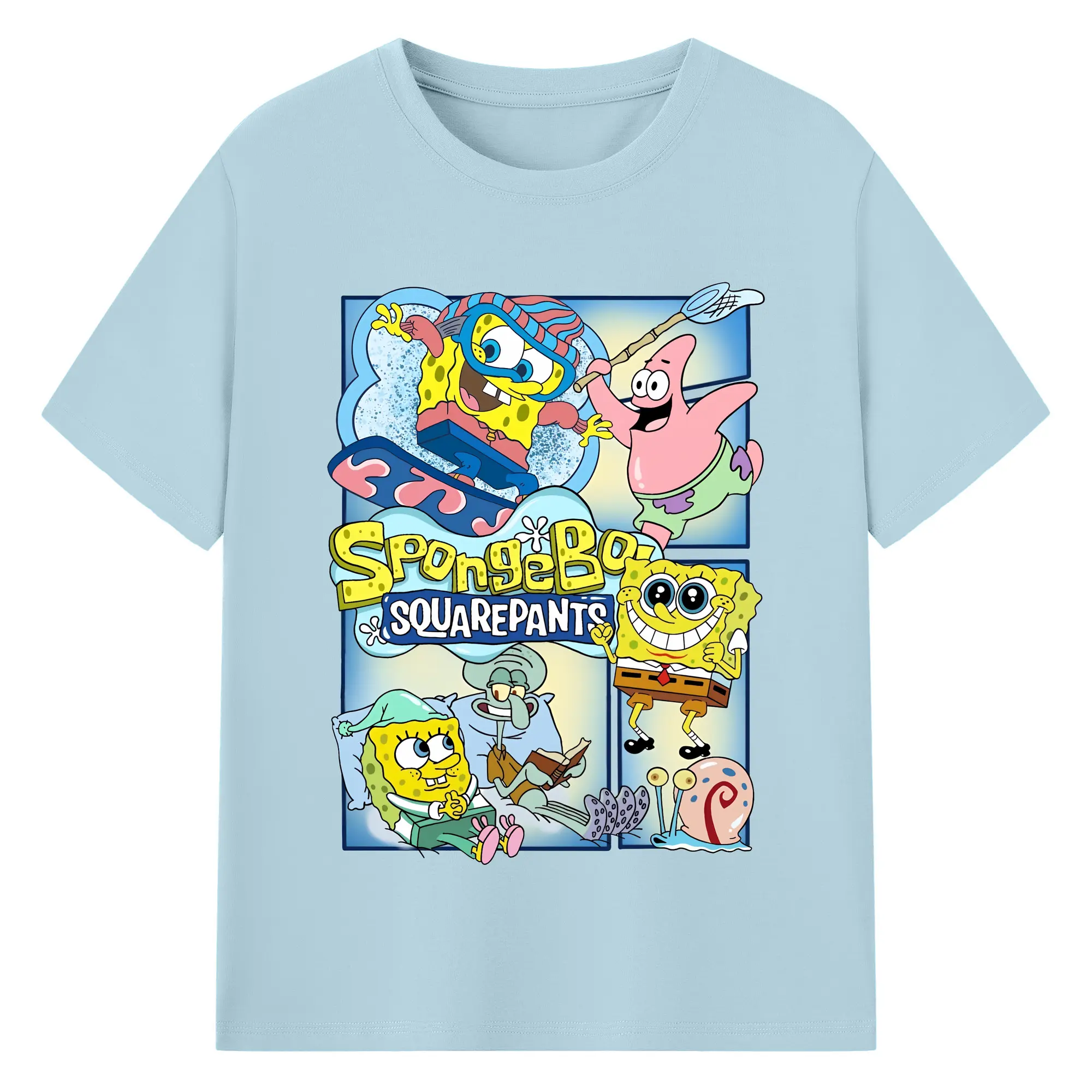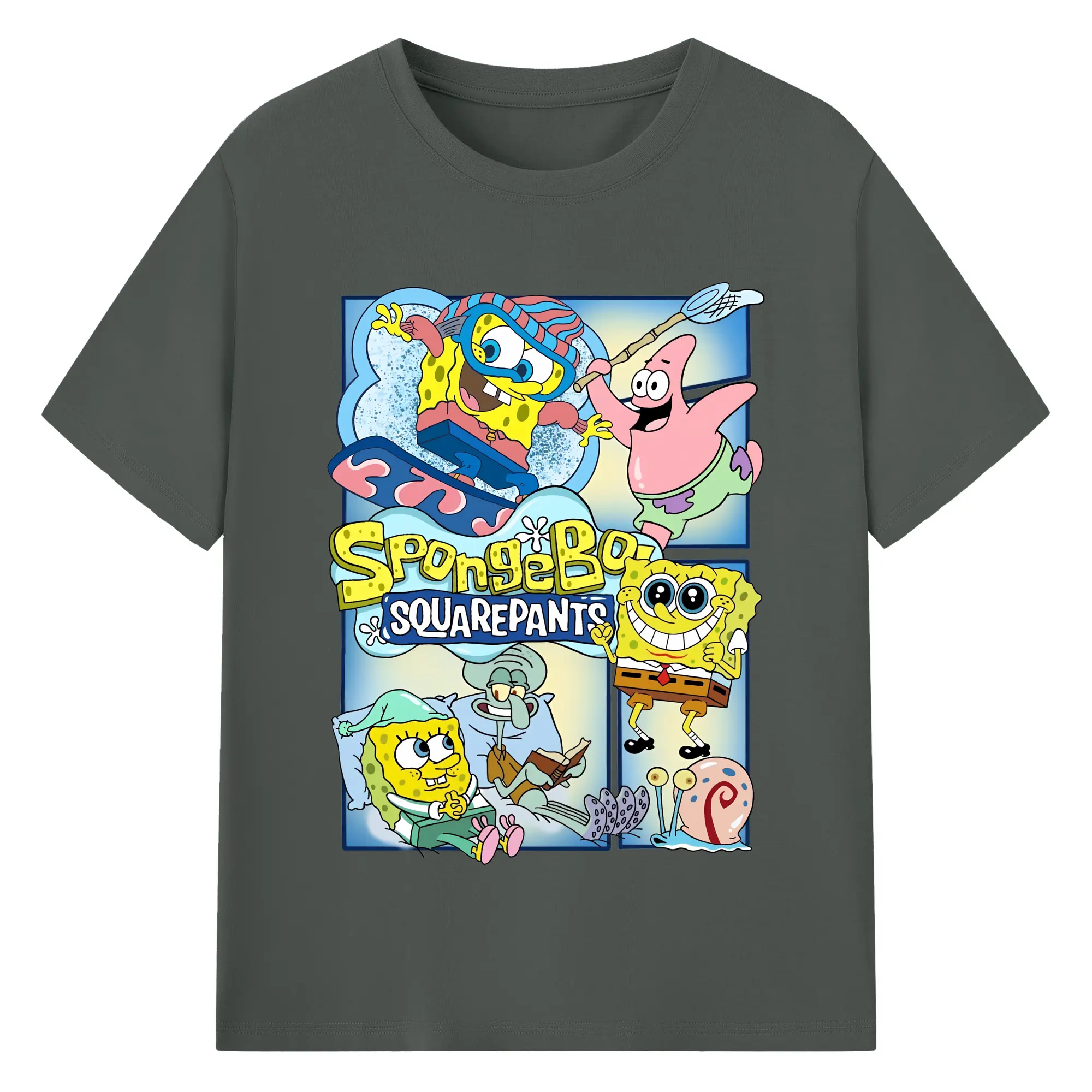 スポンジボブ グッズ スポンジボブ - 綿100% 半袖Tシャツ ・ バックプリント ・ 快適 通気性 ・ 日常使い 散歩 スポーツ用