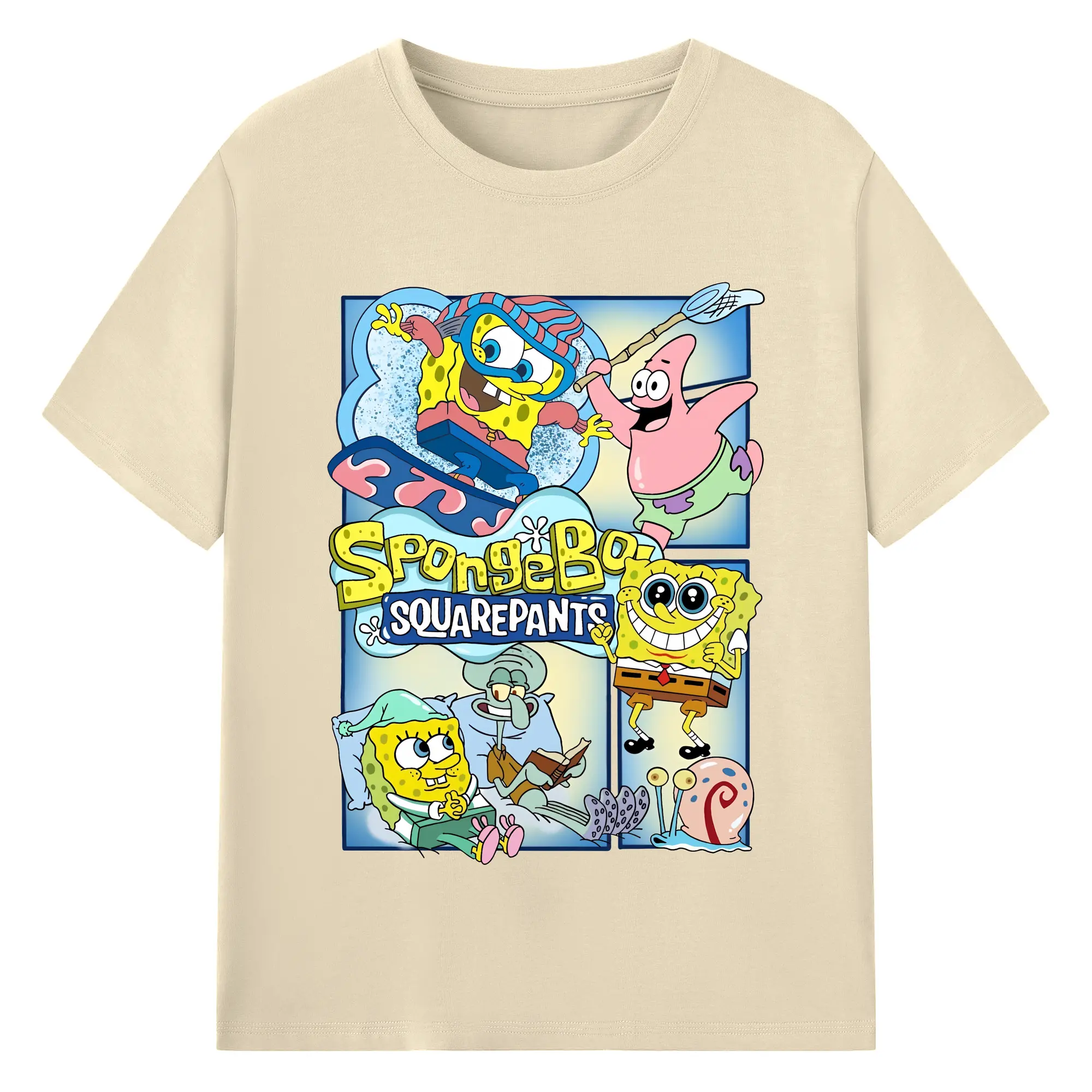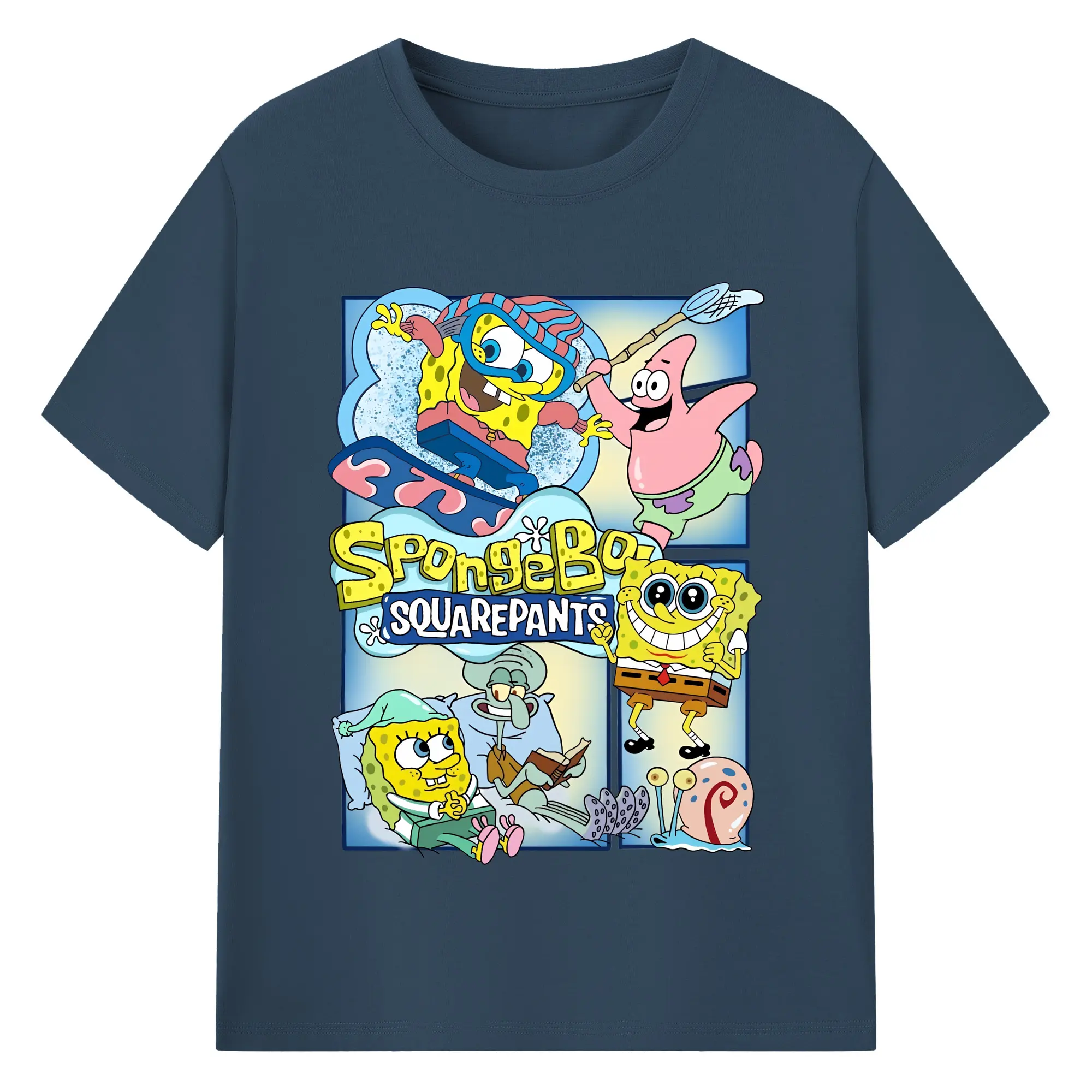 スポンジボブ グッズ スポンジボブ - 綿100% ヴィンテージ風 半袖Tシャツ ・ フロントプリント ・ 柔らか肌触り ・ 通気性 快適 ・ スポーツ カジュアル 外出用