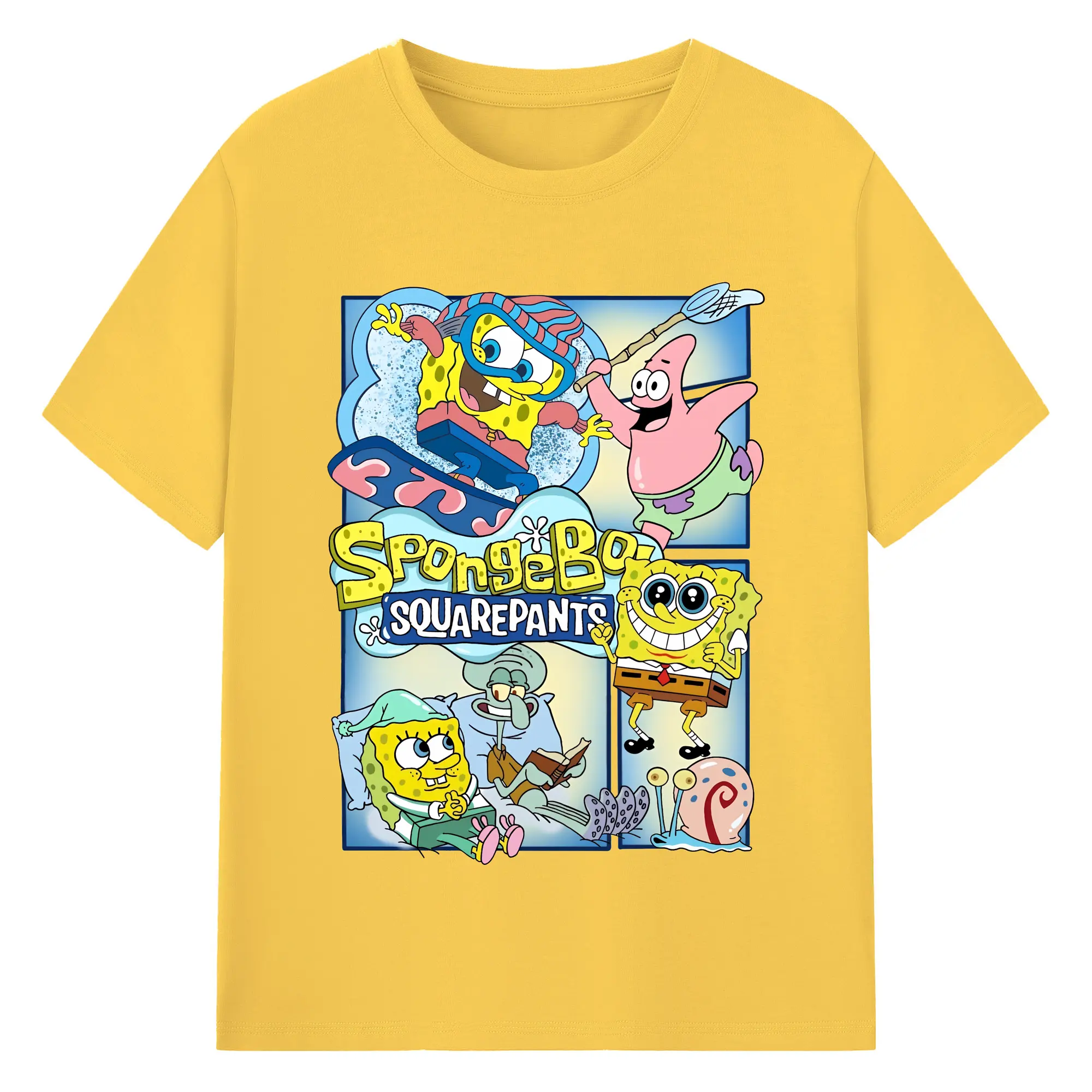 スポンジボブ グッズ スポンジボブ - 綿100% キッズTシャツ ・ フロントプリント ・ 快適 通気性 ・ スポーツ カジュアル 散歩用