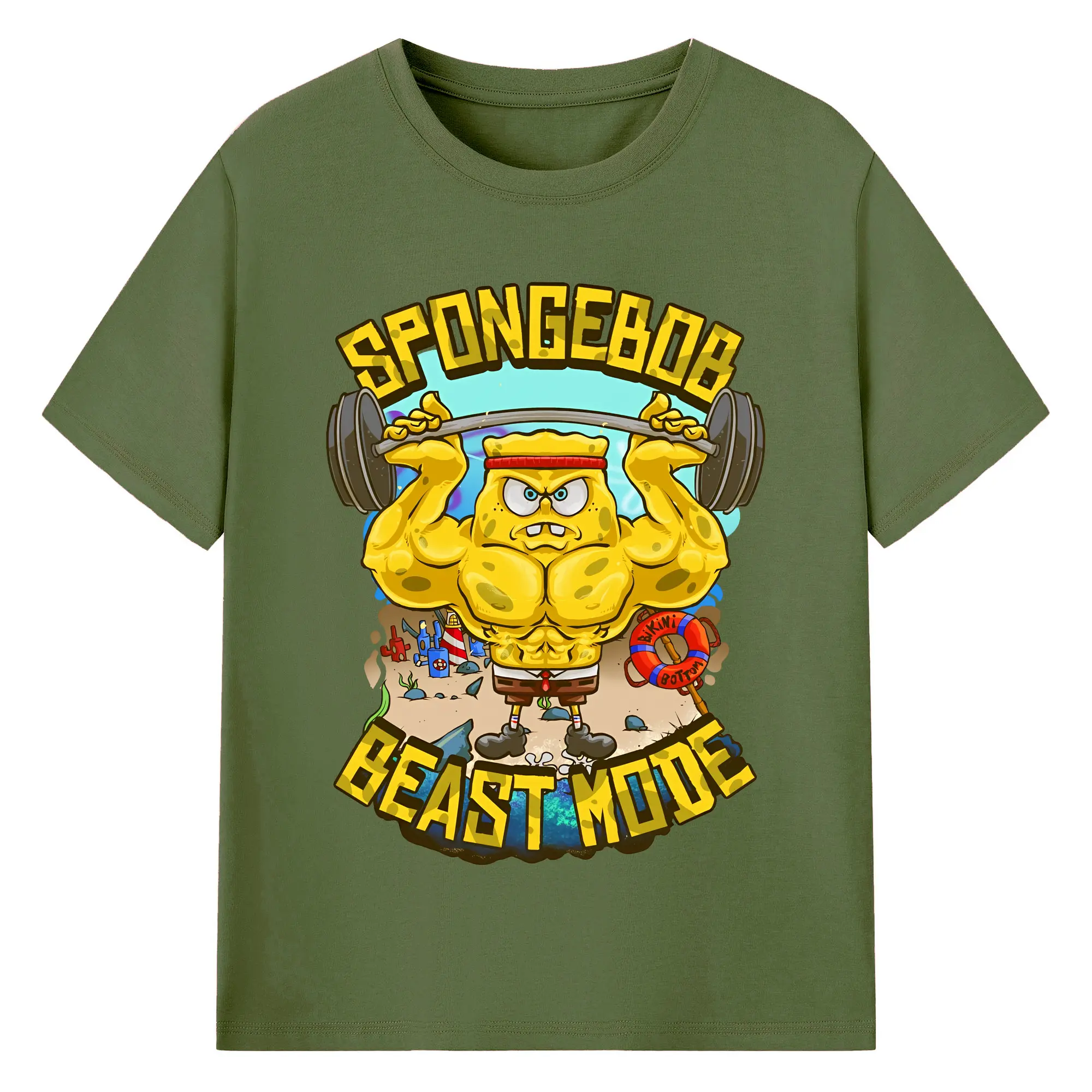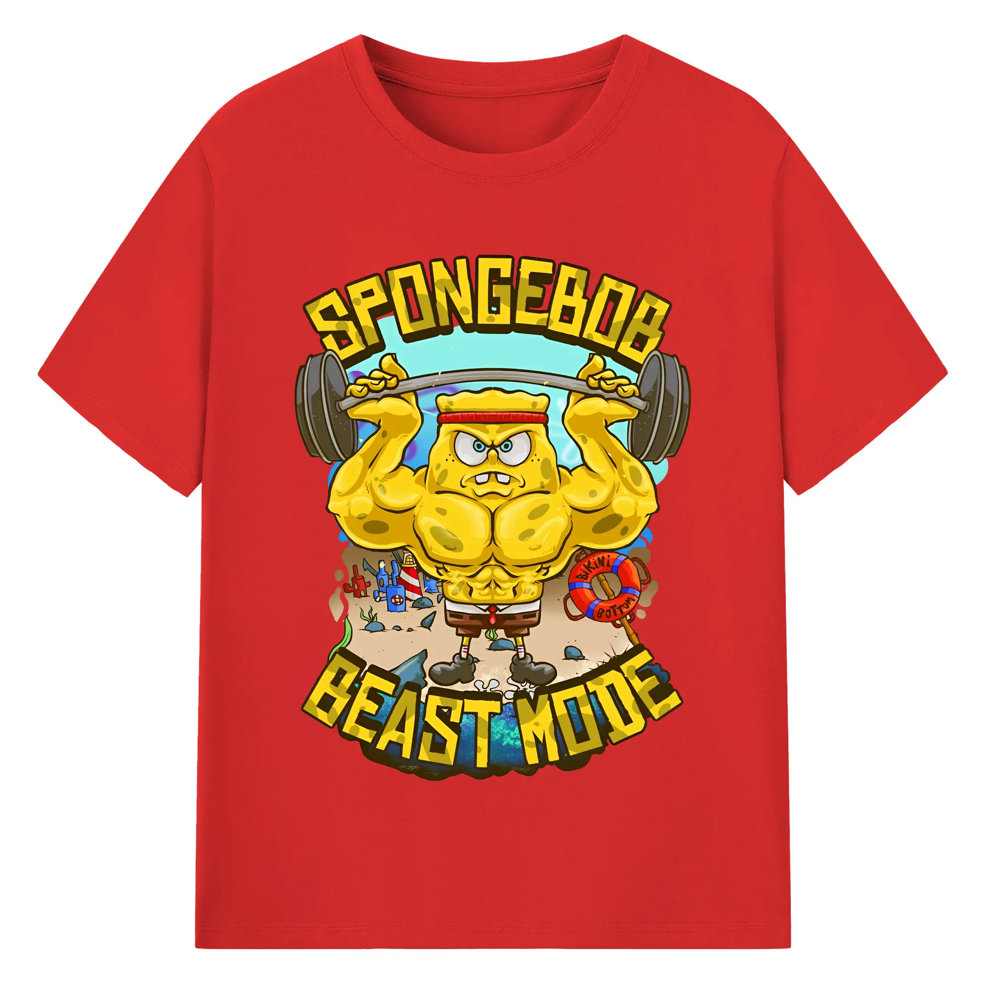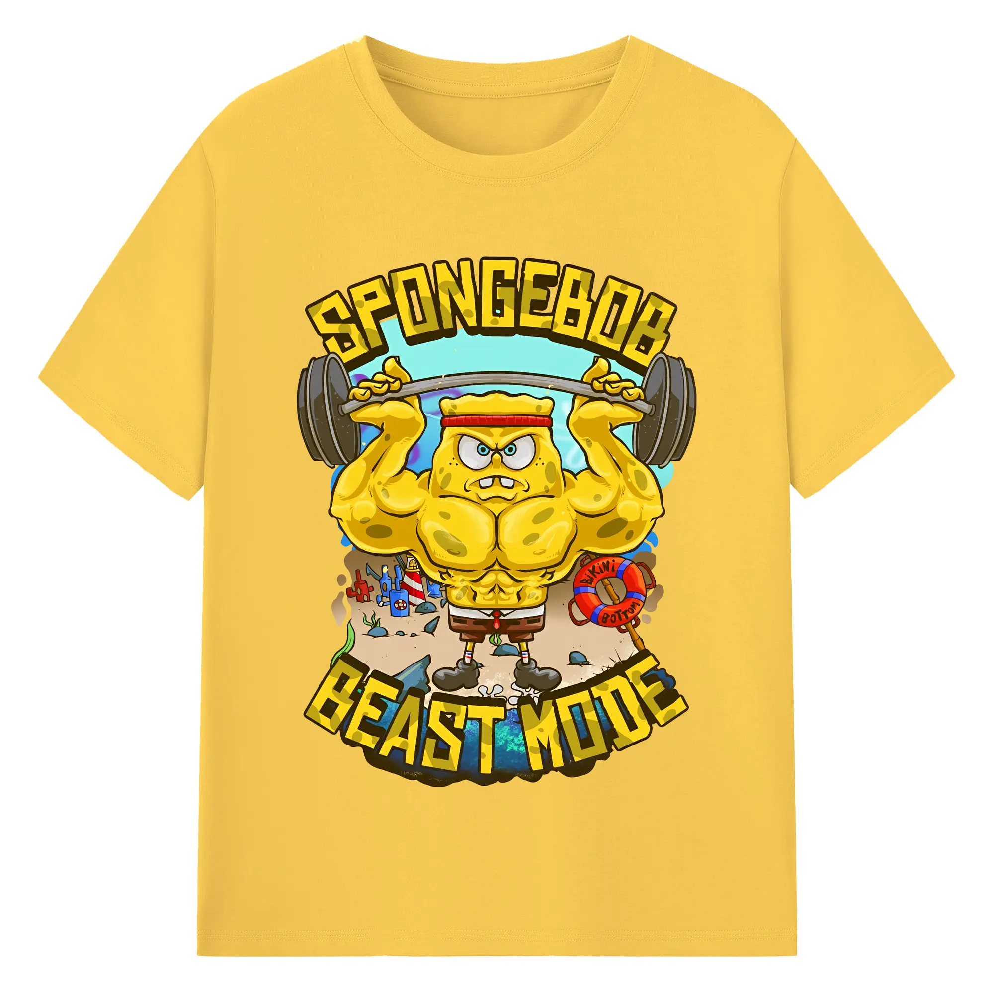 スポンジボブ グッズ スポンジボブ - 綿100% 半袖Tシャツ ・ バックプリント ・ 快適 通気性 ・ 日常使い 散歩 スポーツ用