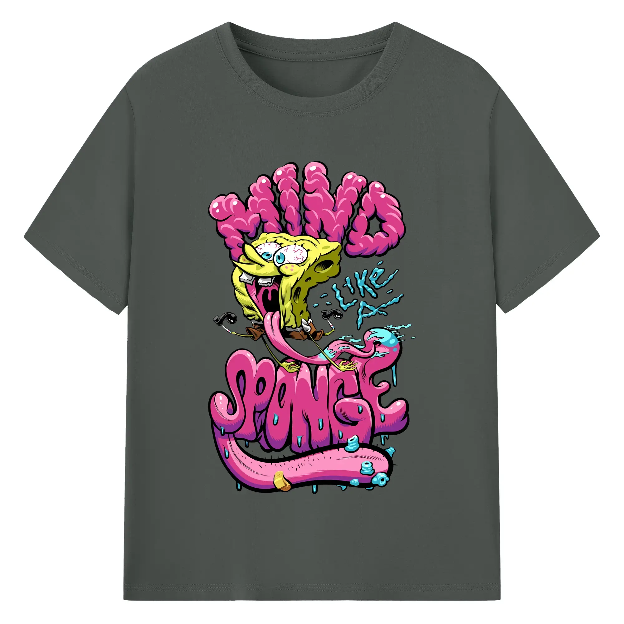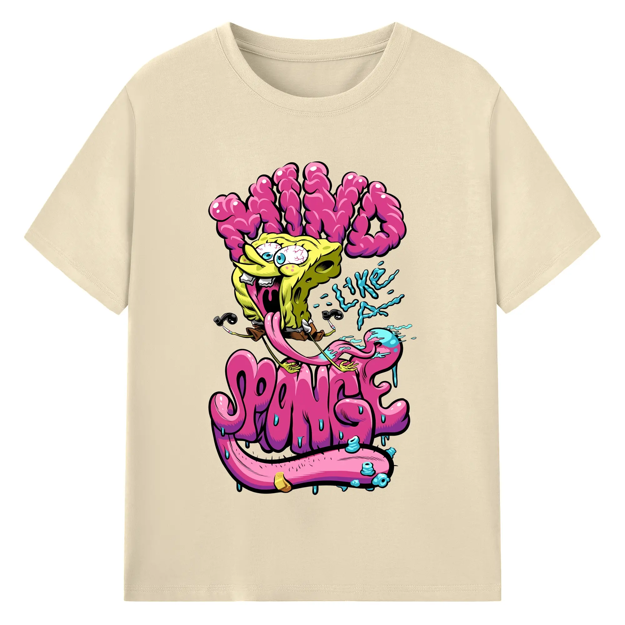 スポンジボブ グッズ スポンジボブ - 綿100% ヴィンテージ風 半袖Tシャツ ・ 背面プリント ・ 柔らか肌触り ・ 通気性 快適 ・ スポーツ カジュアル 外出用