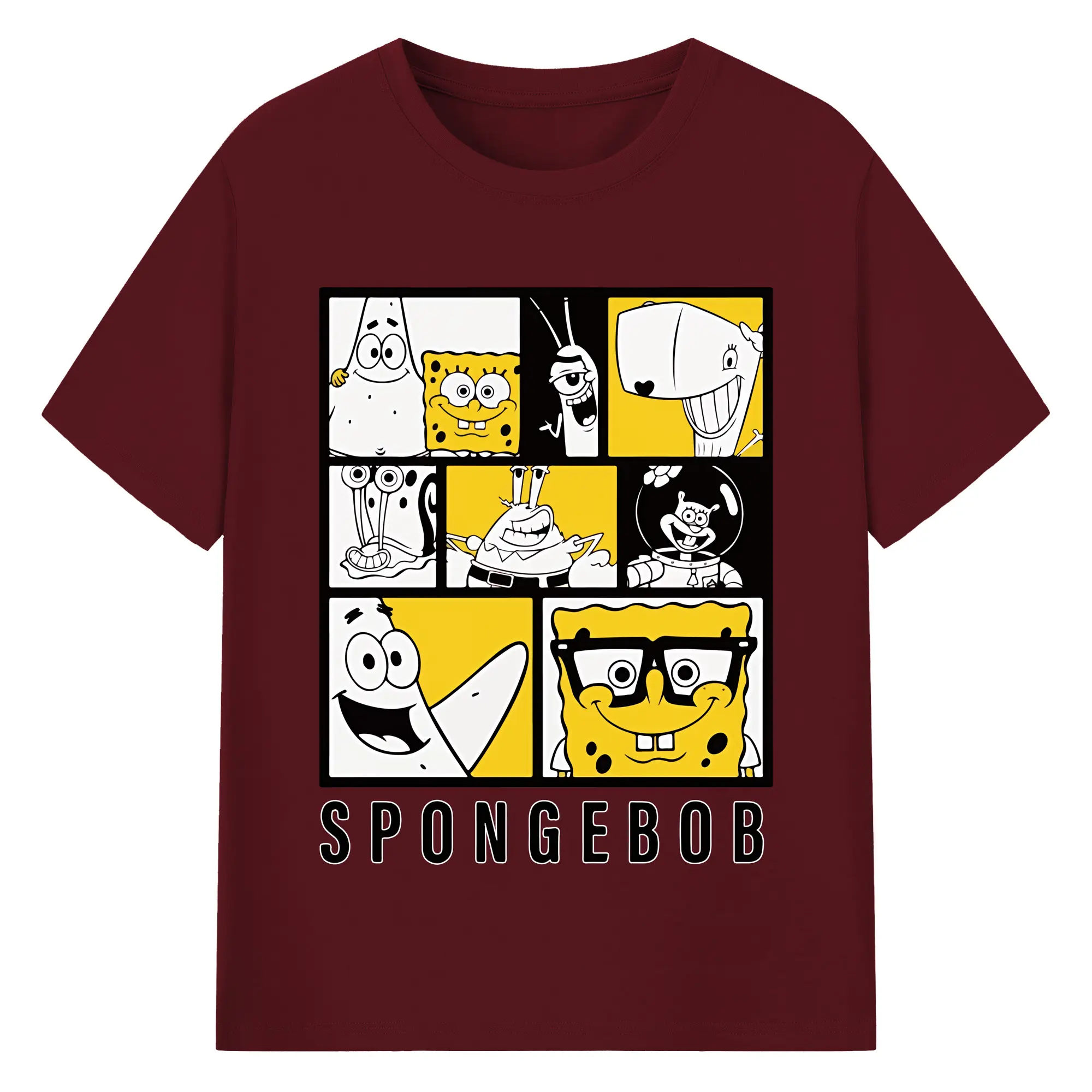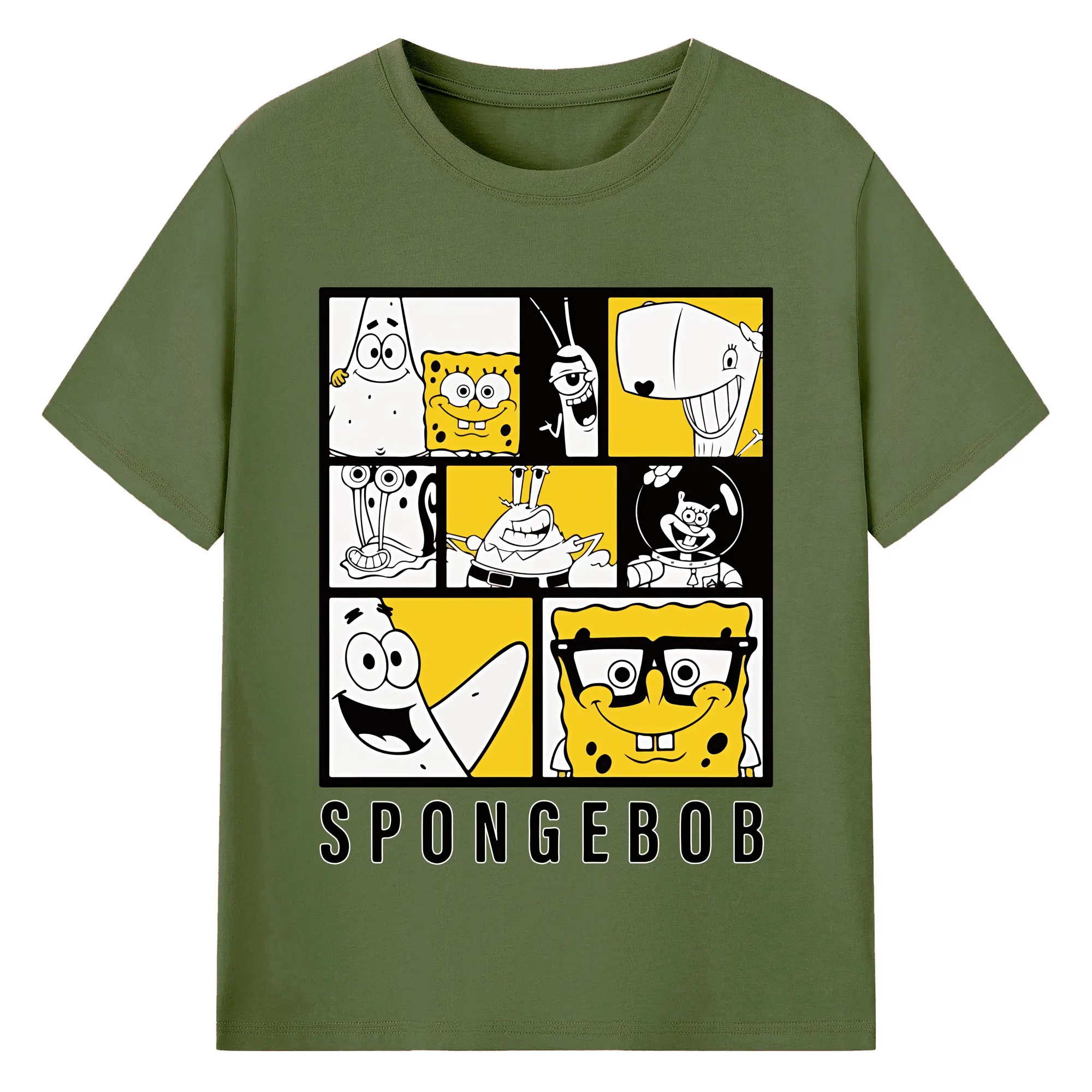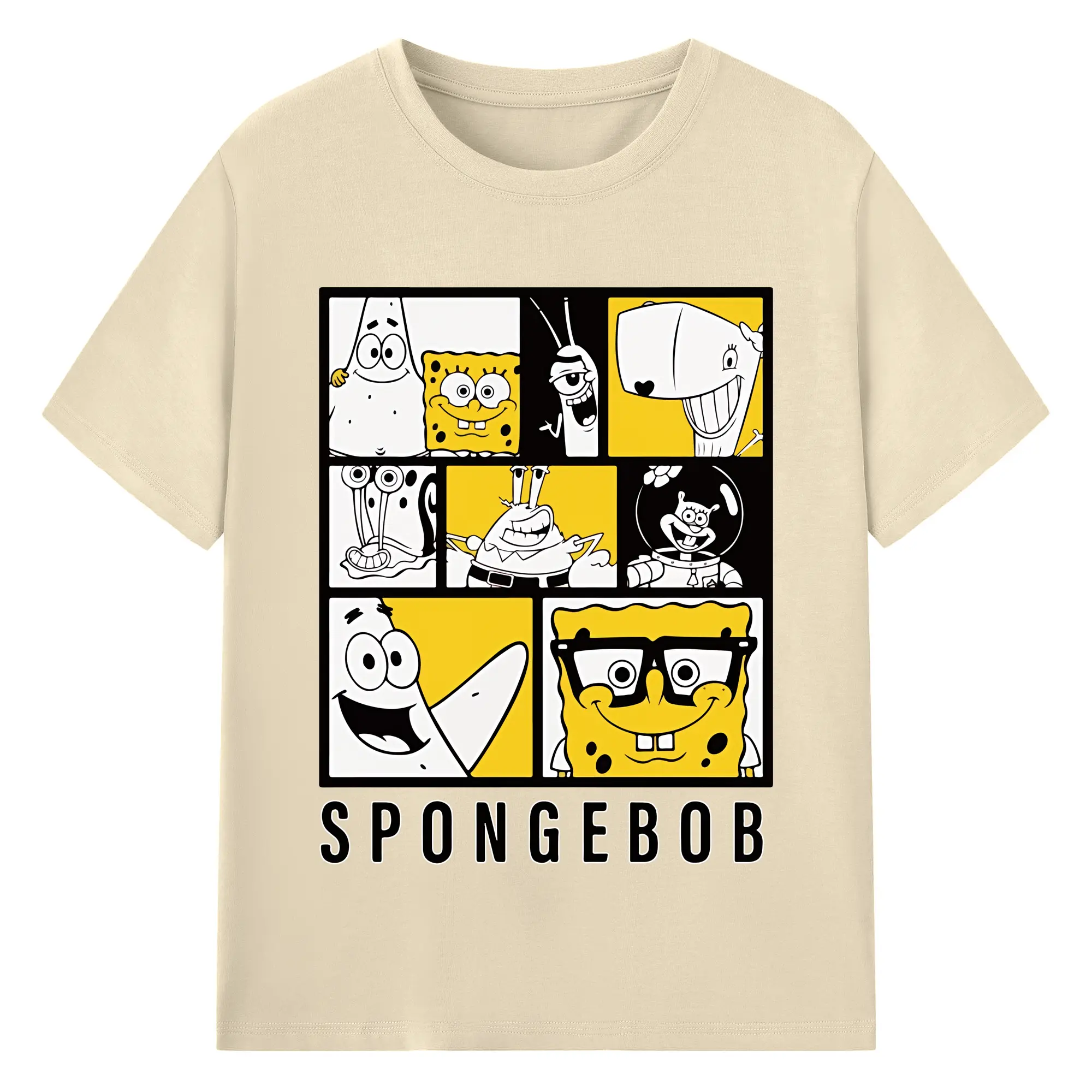 スポンジボブ グッズ スポンジボブ - 綿100% ヴィンテージ風 半袖Tシャツ ・ フロントプリント ・ 柔らか肌触り ・ 通気性 快適 ・ スポーツ カジュアル 外出用