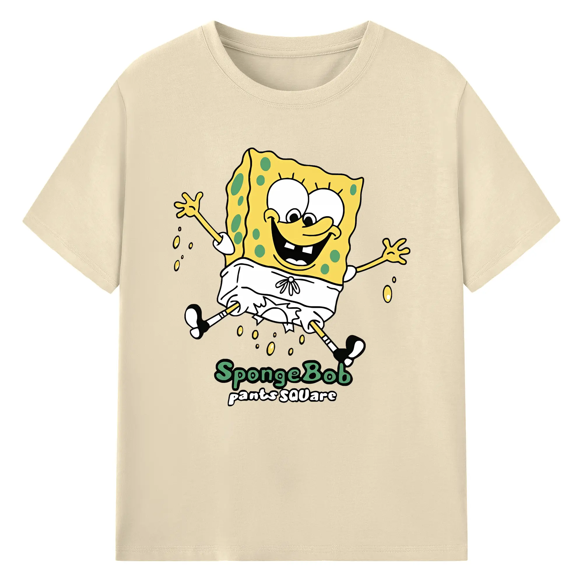 スポンジボブ グッズ スポンジボブ - 綿100% ヴィンテージ風 半袖Tシャツ ・ フロントプリント ・ 柔らか肌触り ・ 通気性 快適 ・ スポーツ カジュアル 外出用