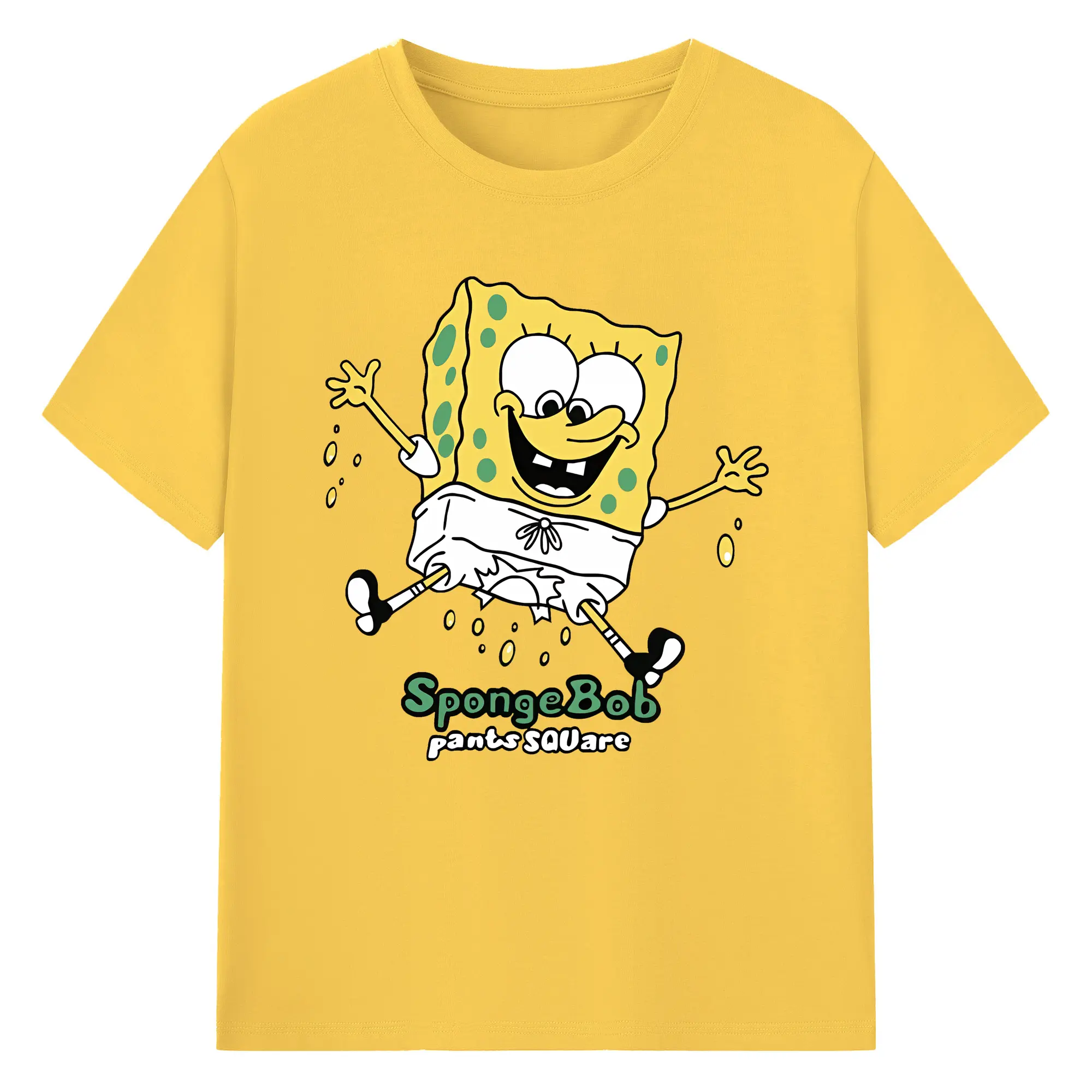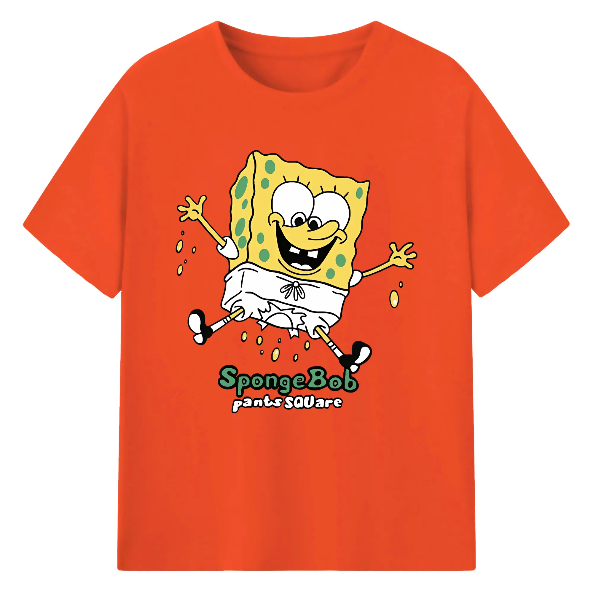 スポンジボブ グッズ スポンジボブ - 綿100% 半袖Tシャツ ・ バックプリント ・ 快適 通気性 ・ 日常使い 散歩 スポーツ用