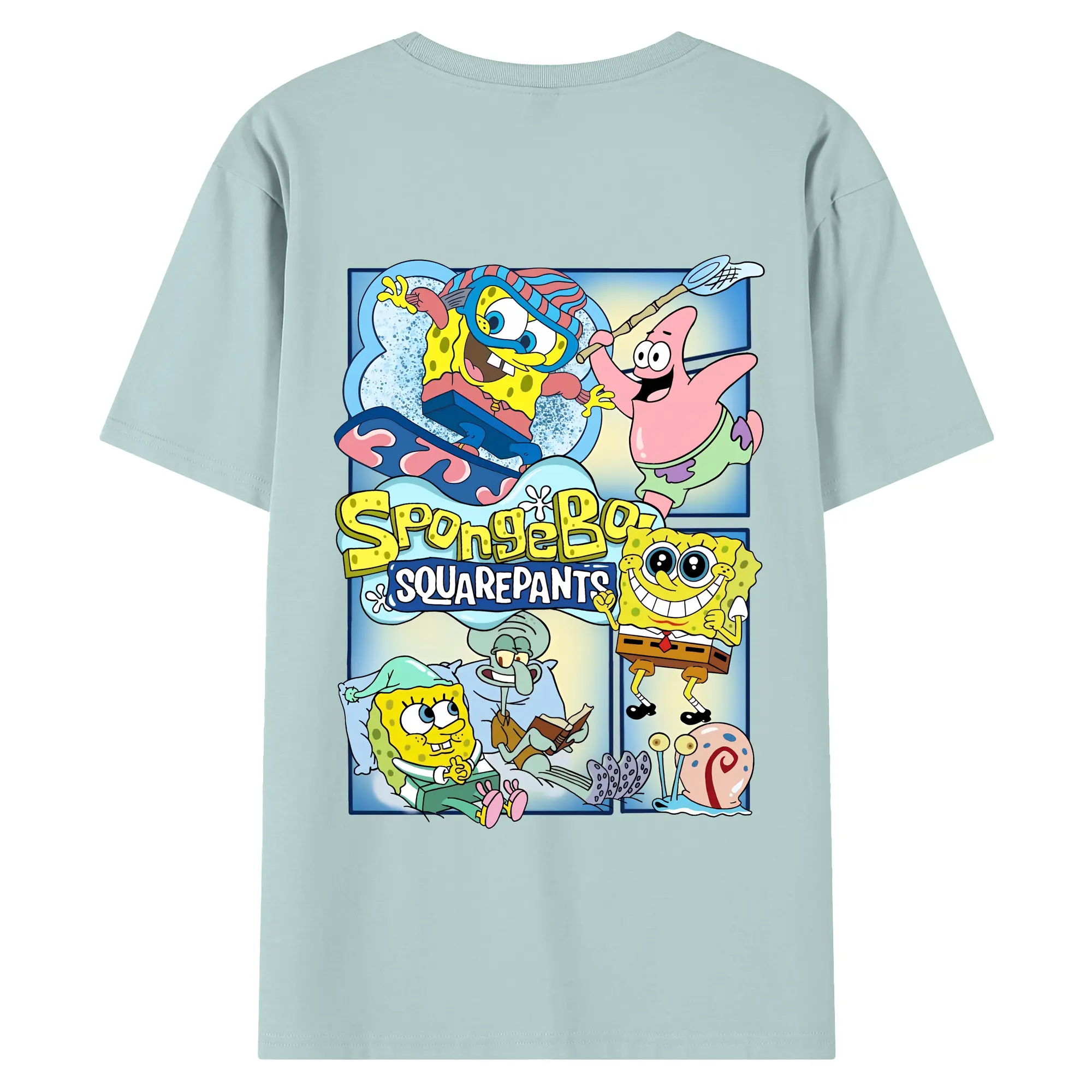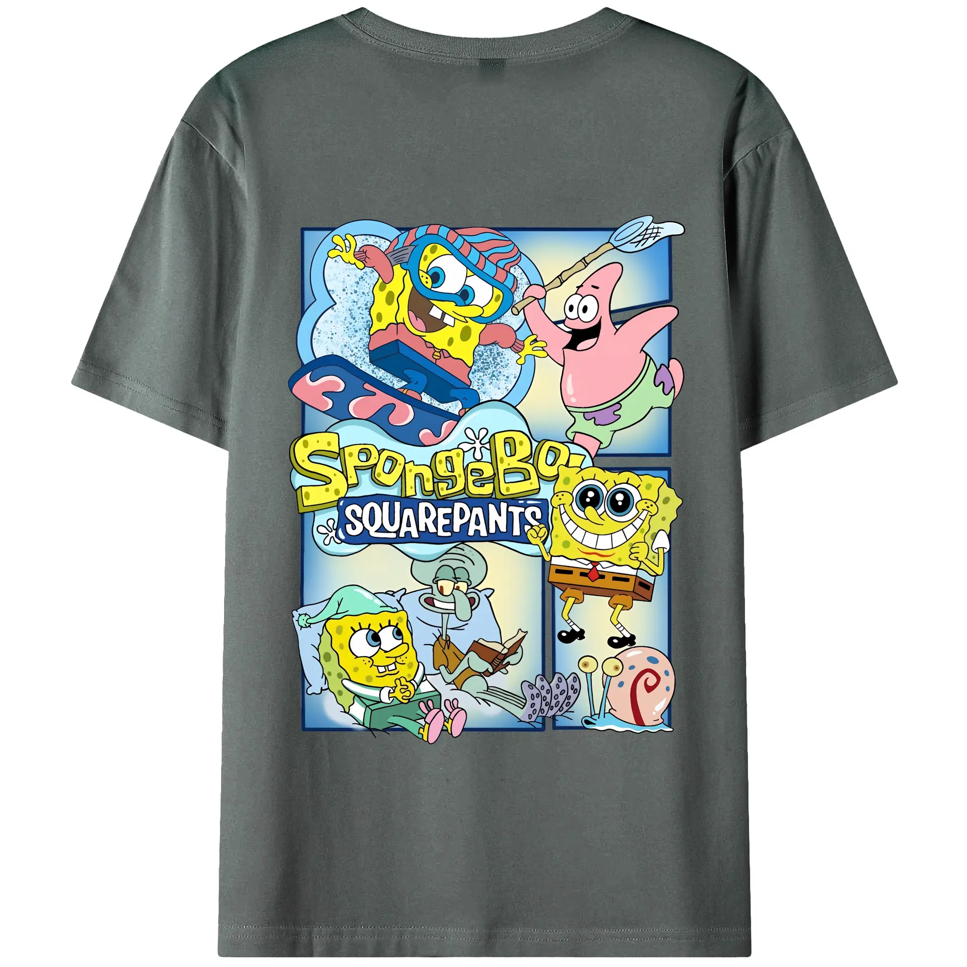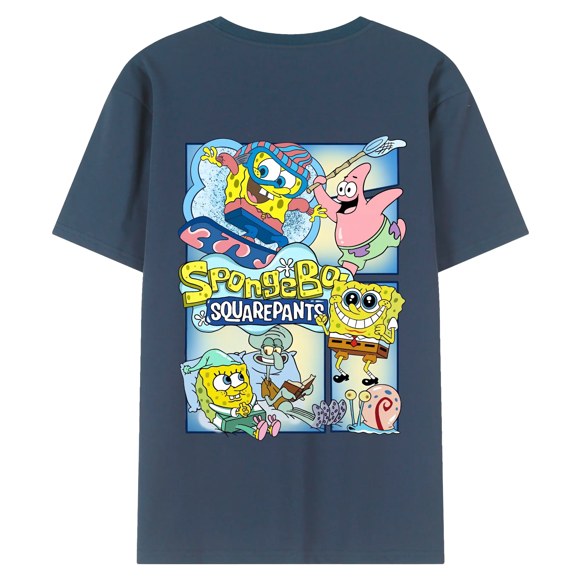 スポンジボブ グッズ スポンジボブ - 綿100% ヴィンテージ風 半袖Tシャツ ・ 背面プリント ・ 柔らか肌触り ・ 通気性 快適 ・ スポーツ カジュアル 外出用