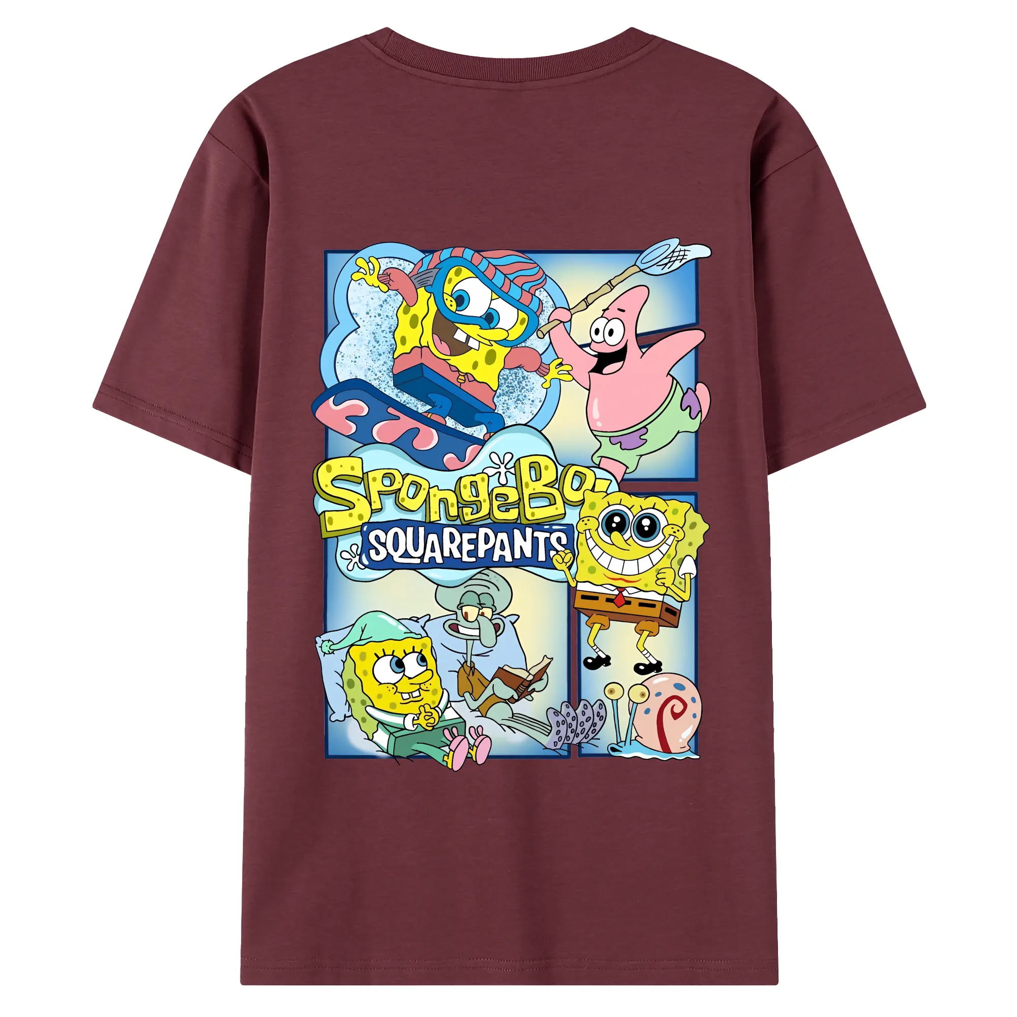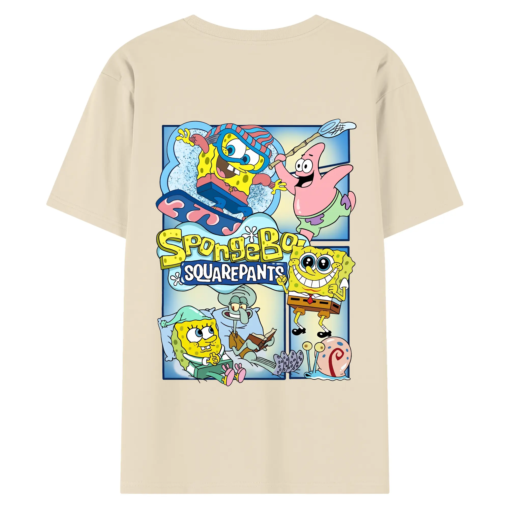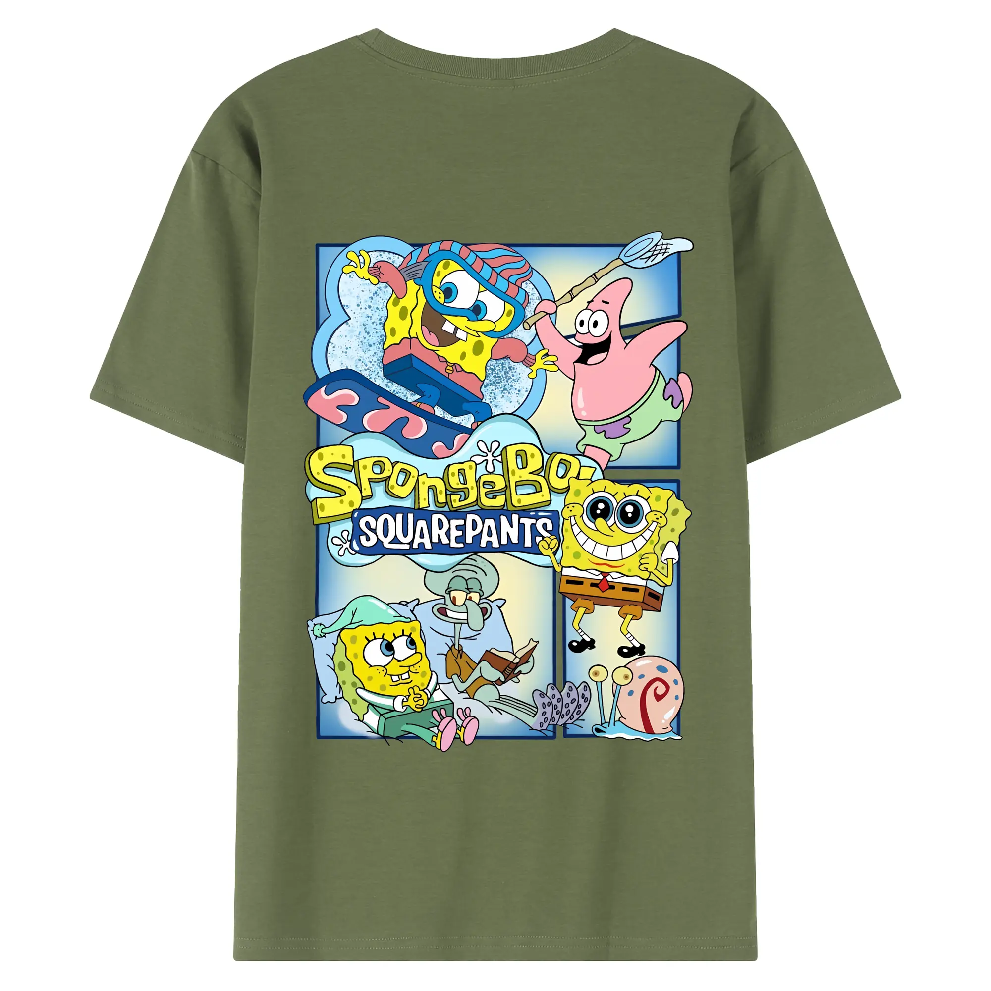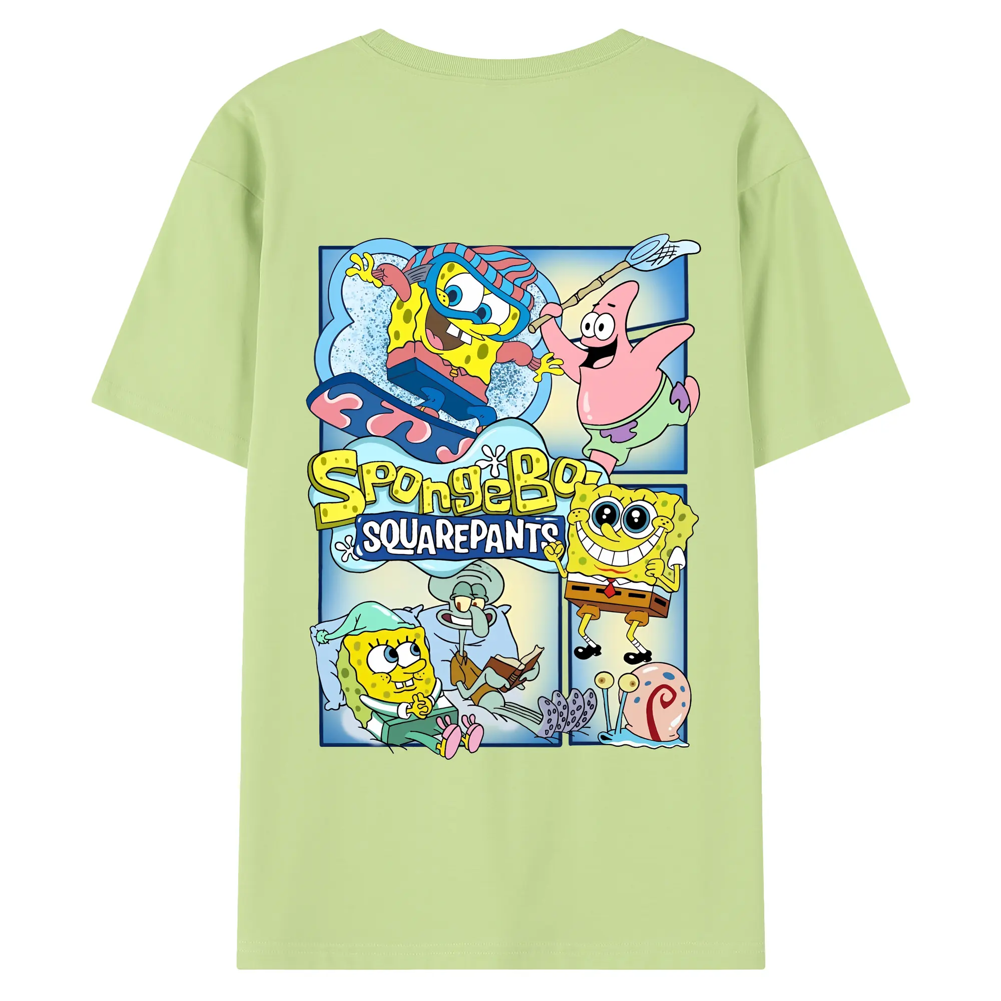 スポンジボブ グッズ スポンジボブ - 綿100% ヴィンテージ風 半袖Tシャツ ・ 背面プリント ・ 柔らか肌触り ・ 通気性 快適 ・ スポーツ カジュアル 外出用