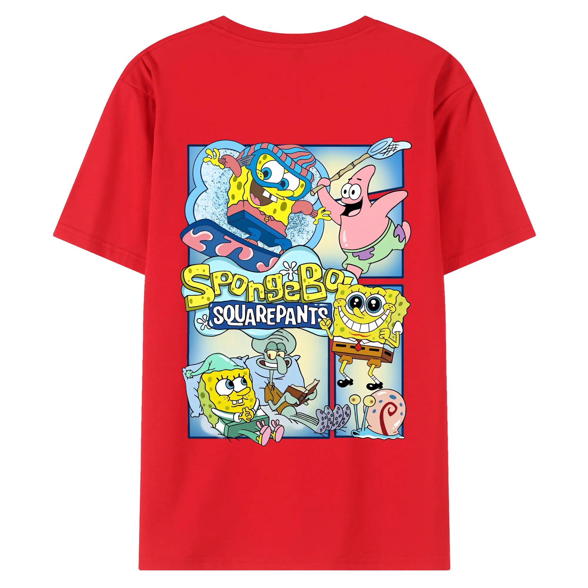 スポンジボブ グッズ スポンジボブ - 綿100% 半袖Tシャツ ・ フロントプリント ・ 快適 通気性 ・ 日常使い 散歩 スポーツ用