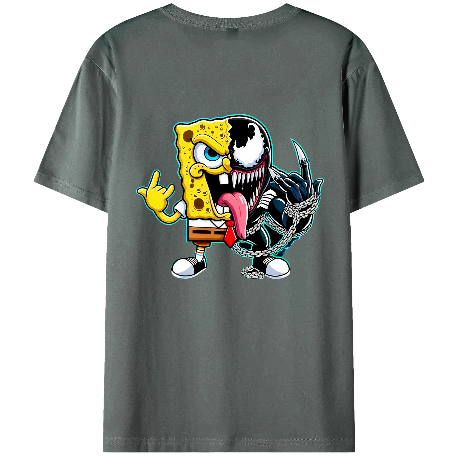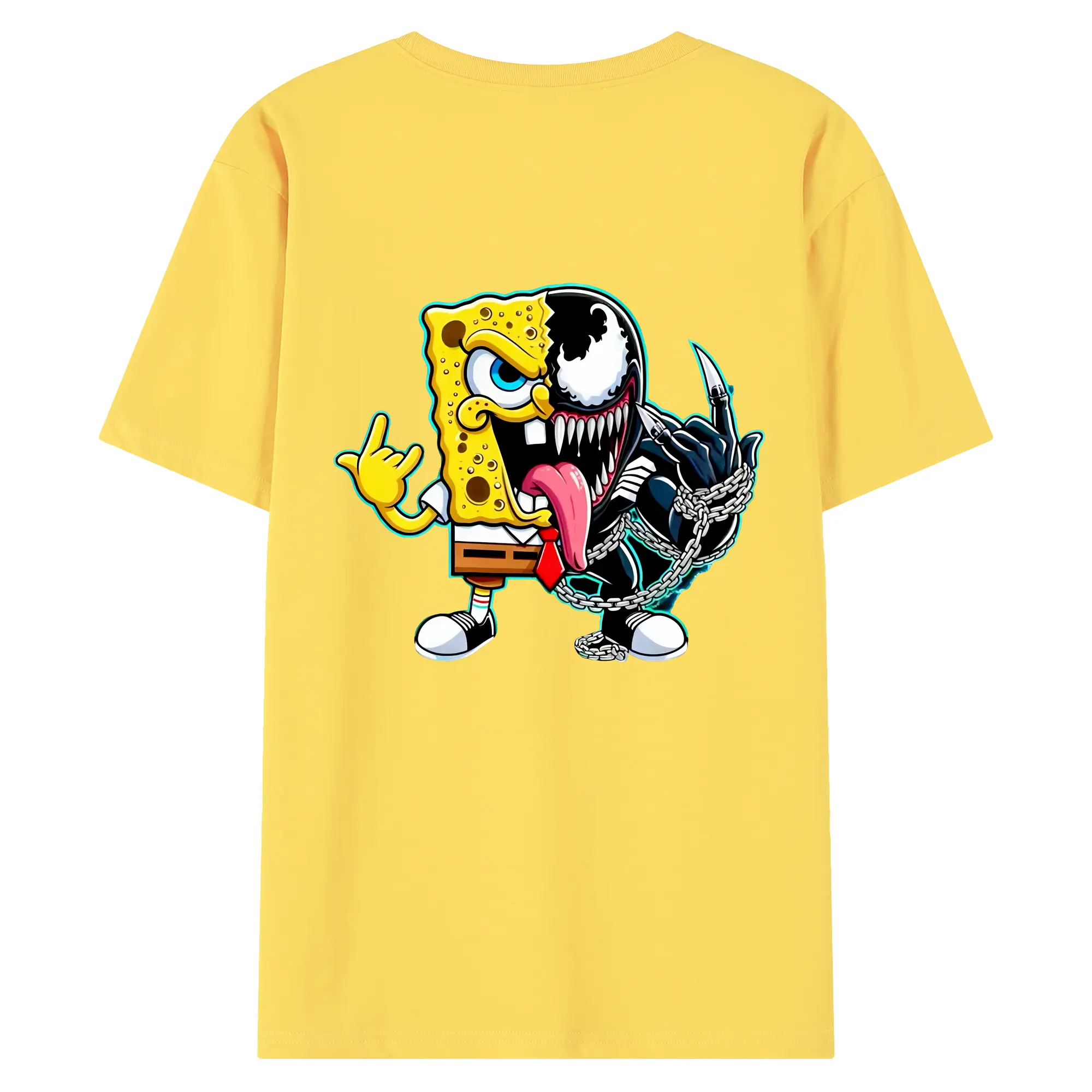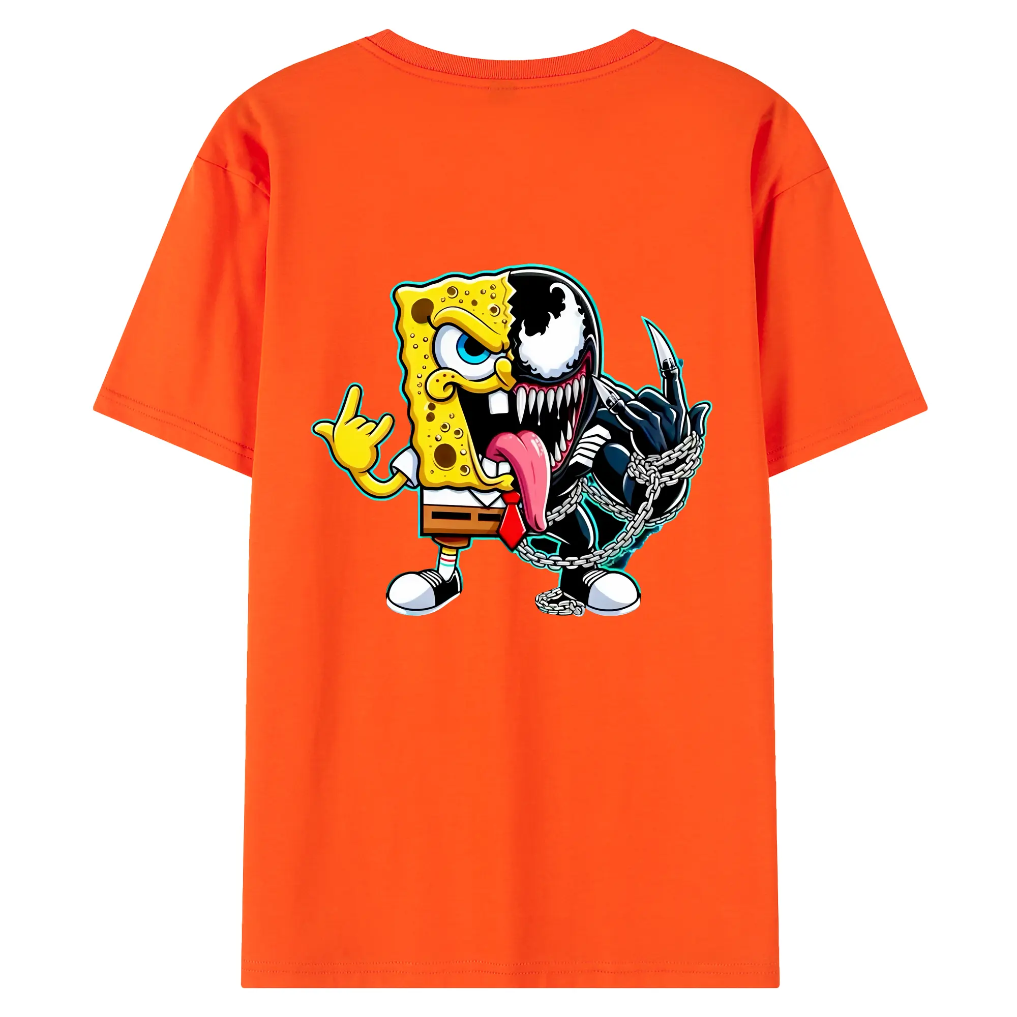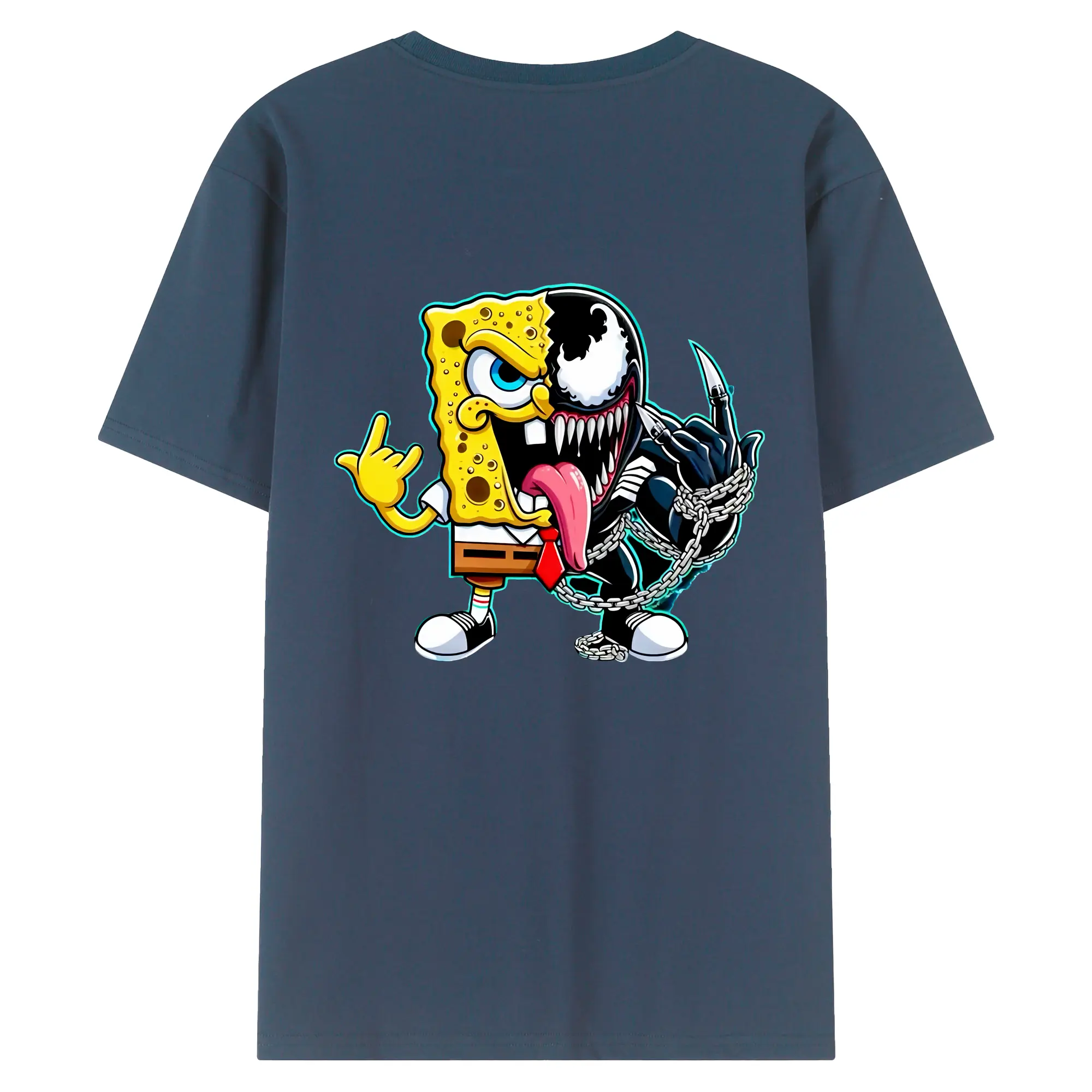スポンジボブ グッズ スポンジボブ - 綿100% ヴィンテージ風 半袖Tシャツ ・ 背面プリント ・ 柔らか肌触り ・ 通気性 快適 ・ スポーツ カジュアル 外出用