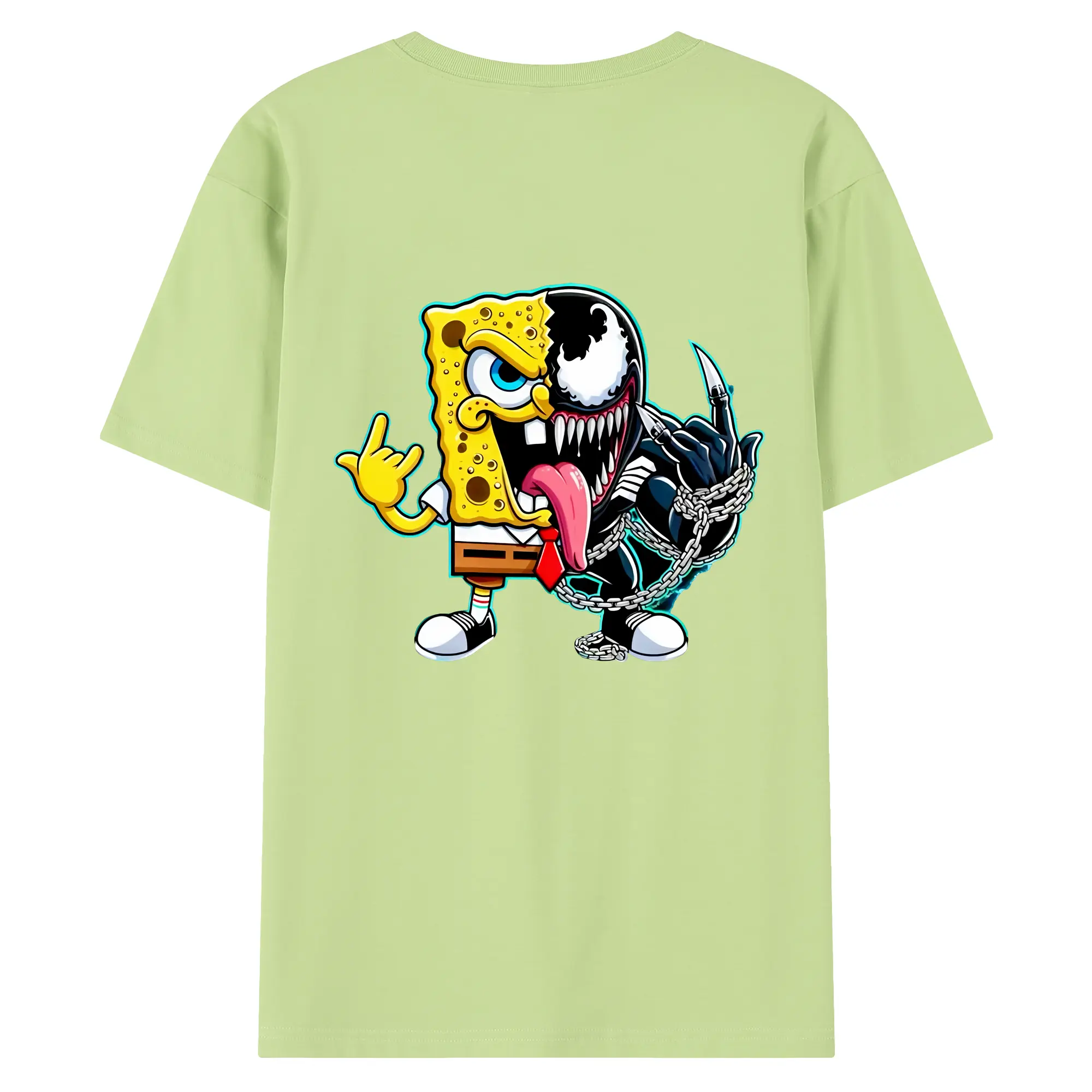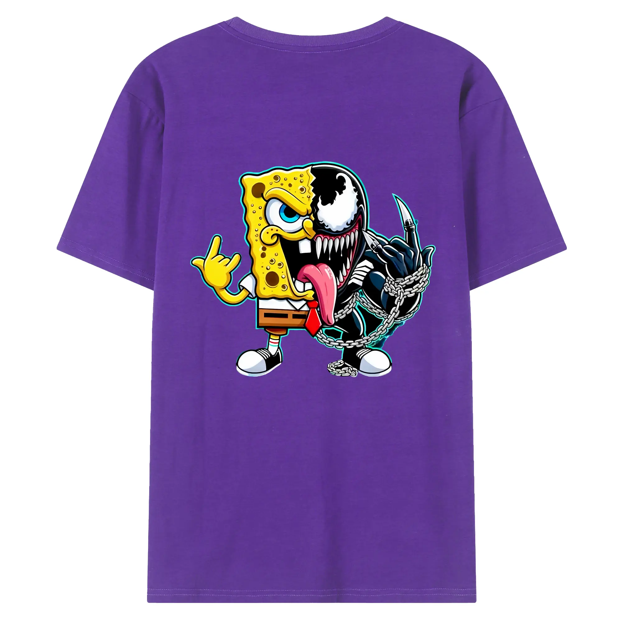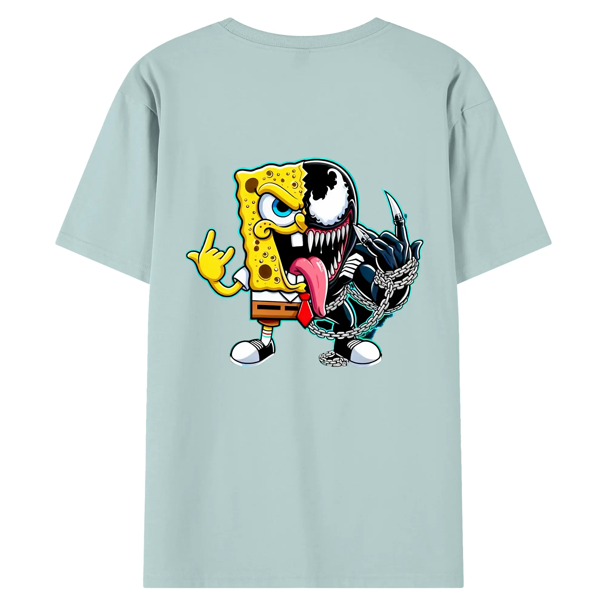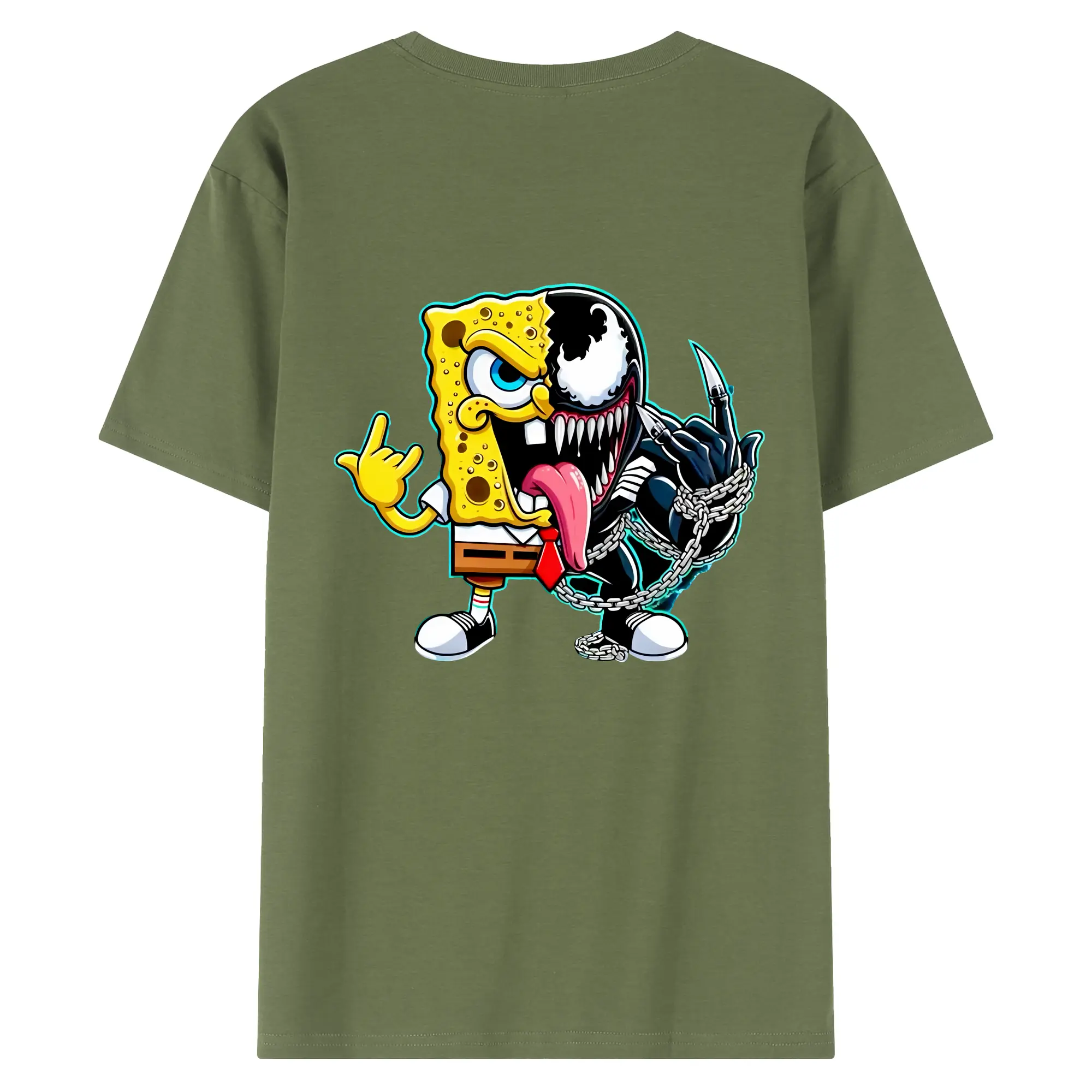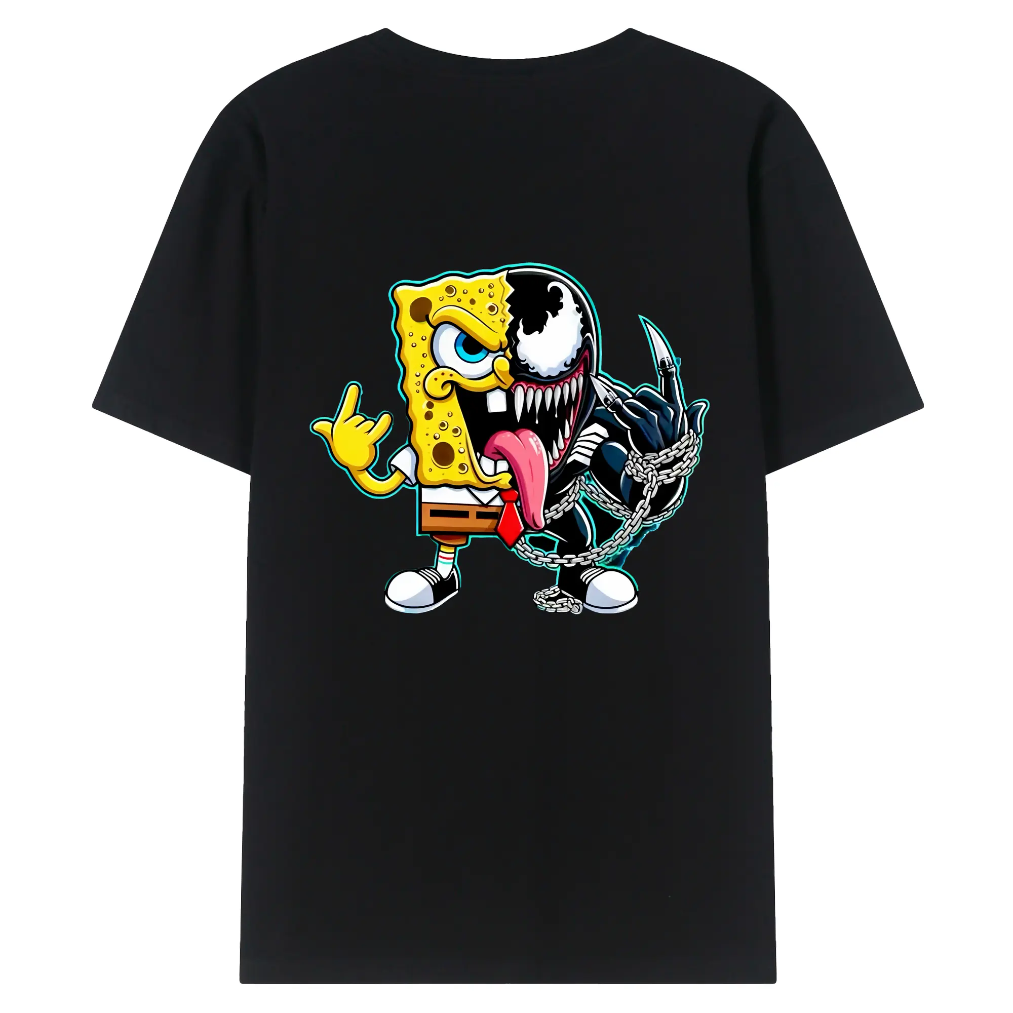 スポンジボブ グッズ スポンジボブ - 綿100% ヴィンテージ風 半袖Tシャツ ・ 背面プリント ・ 柔らか肌触り ・ 通気性 快適 ・ スポーツ カジュアル 外出用