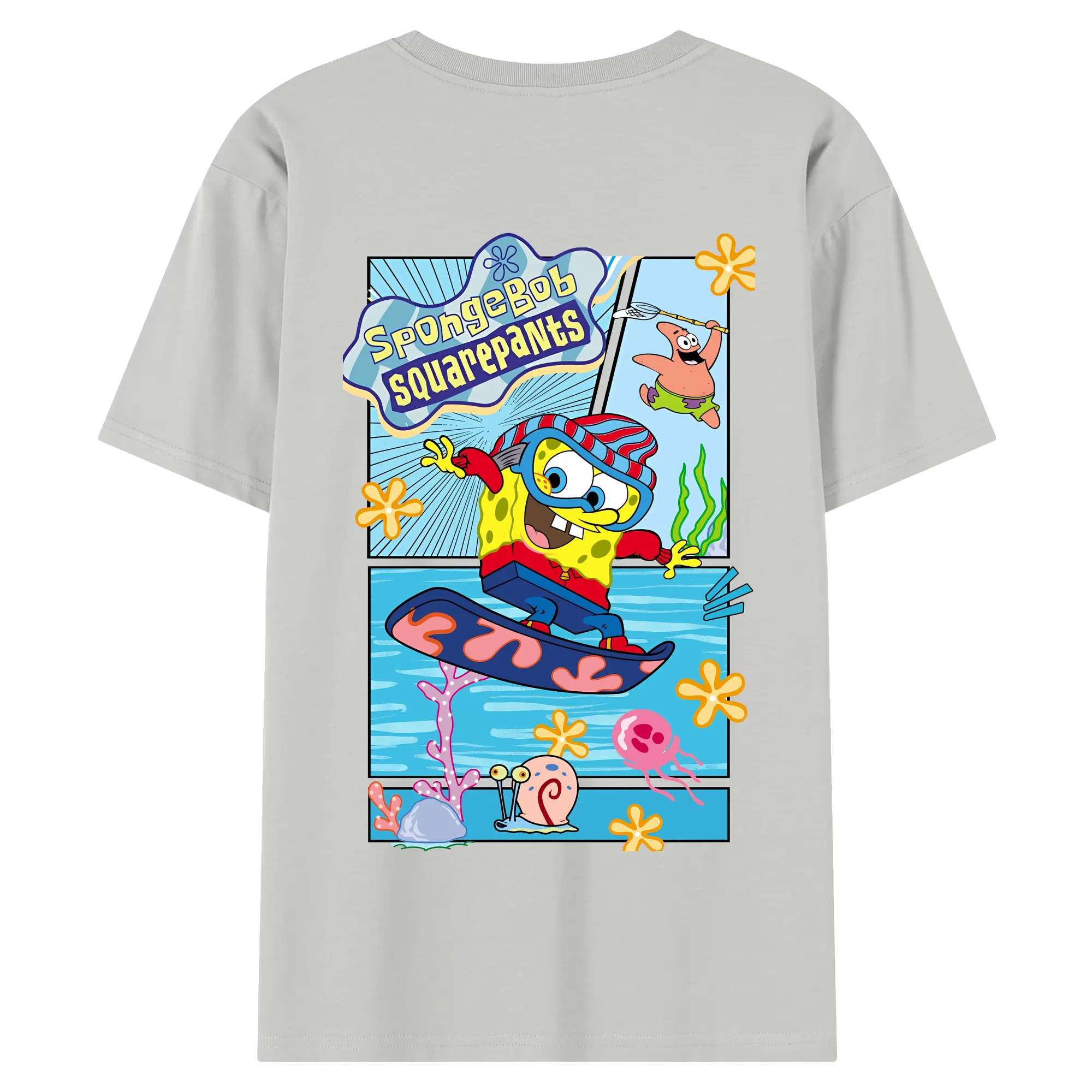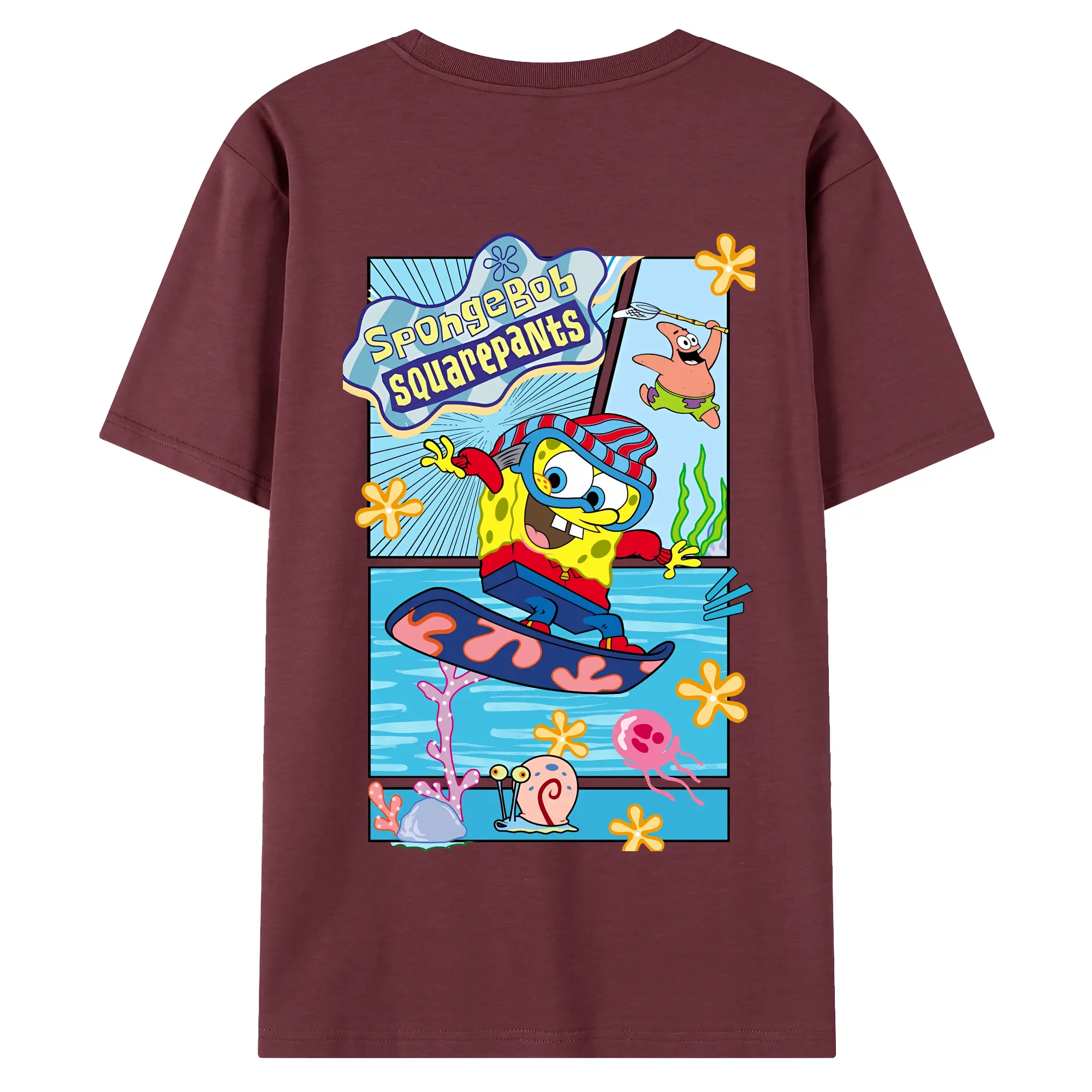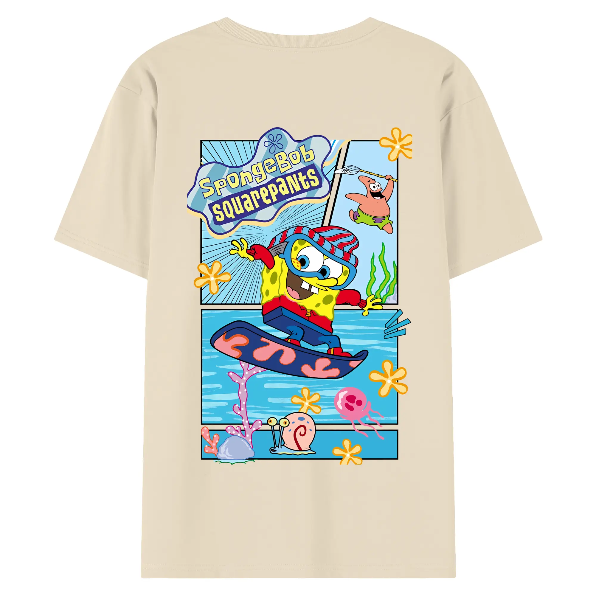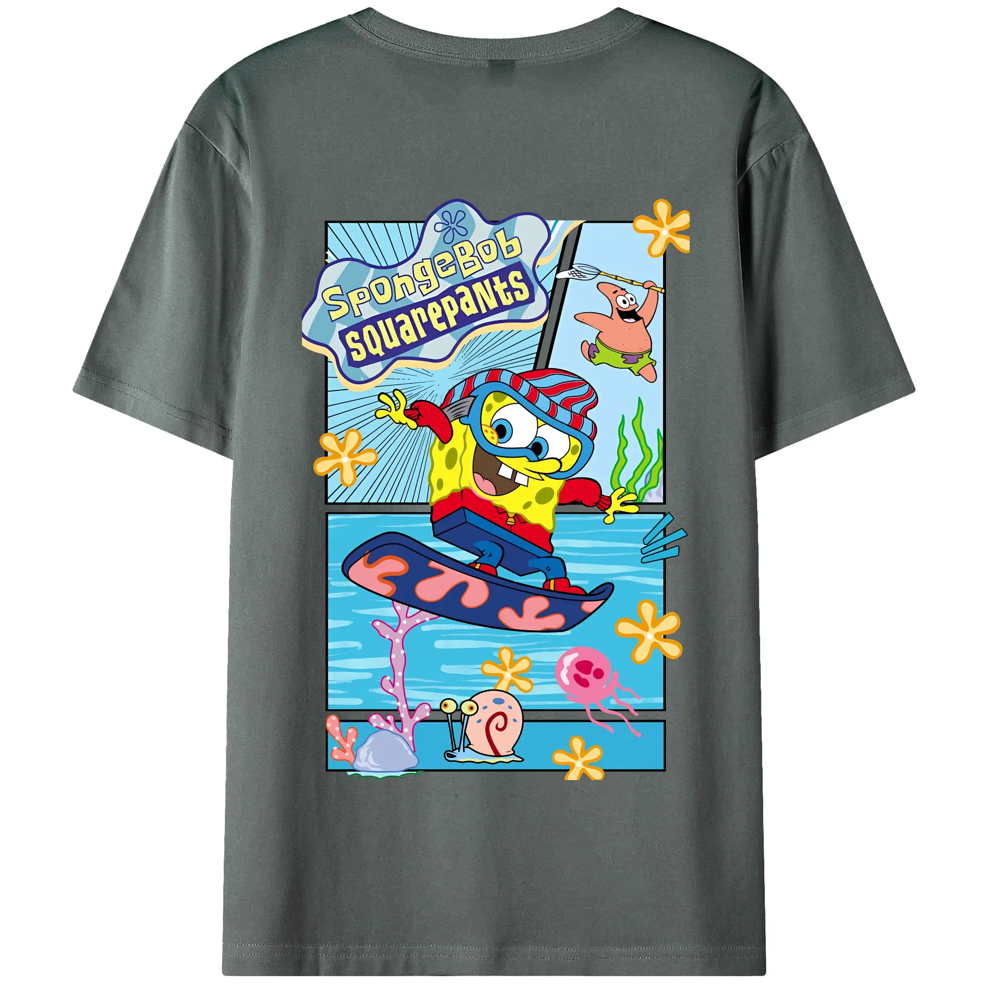 スポンジボブ グッズ スポンジボブ - 綿100% ヴィンテージ風 半袖Tシャツ ・ 背面プリント ・ 柔らか肌触り ・ 通気性 快適 ・ スポーツ カジュアル 外出用