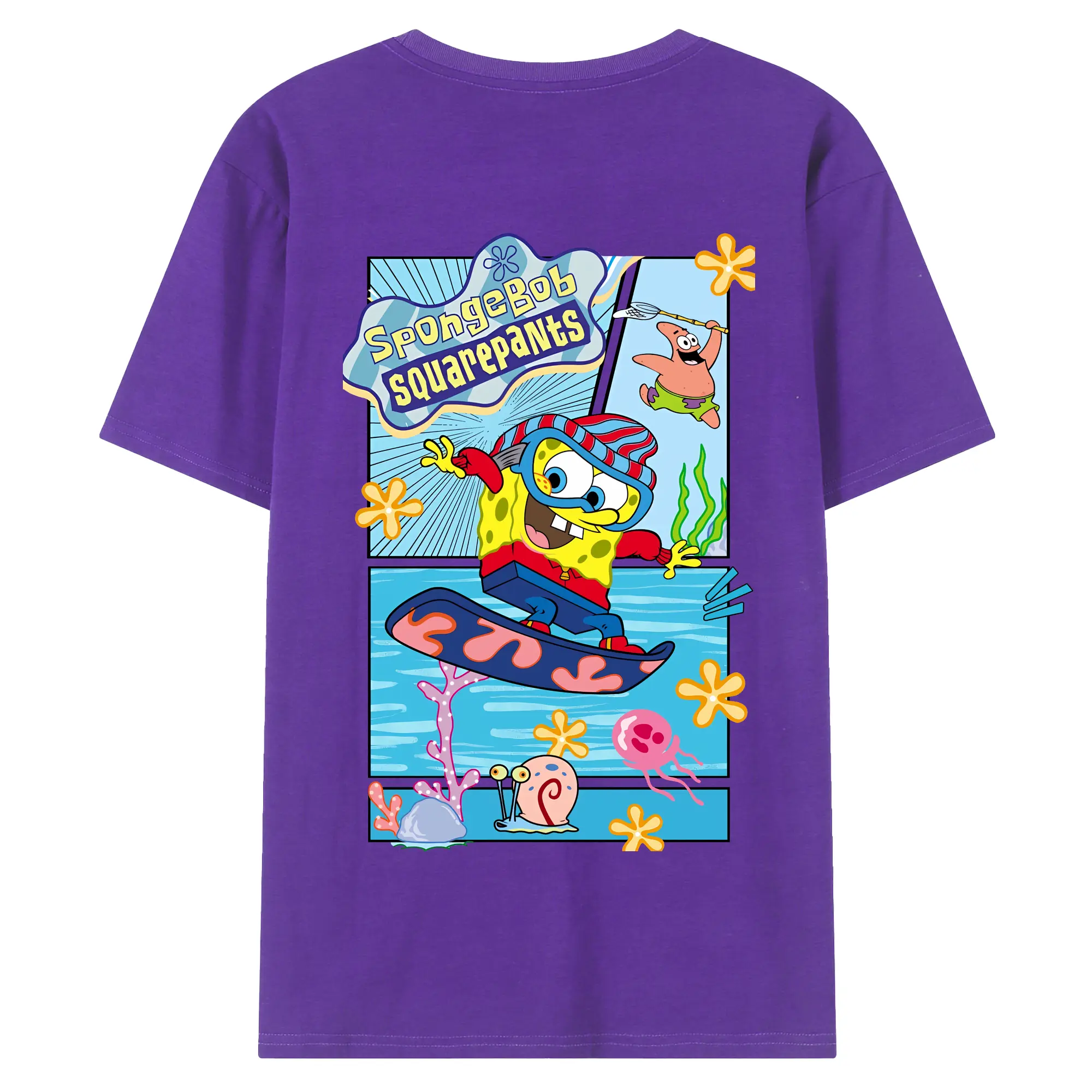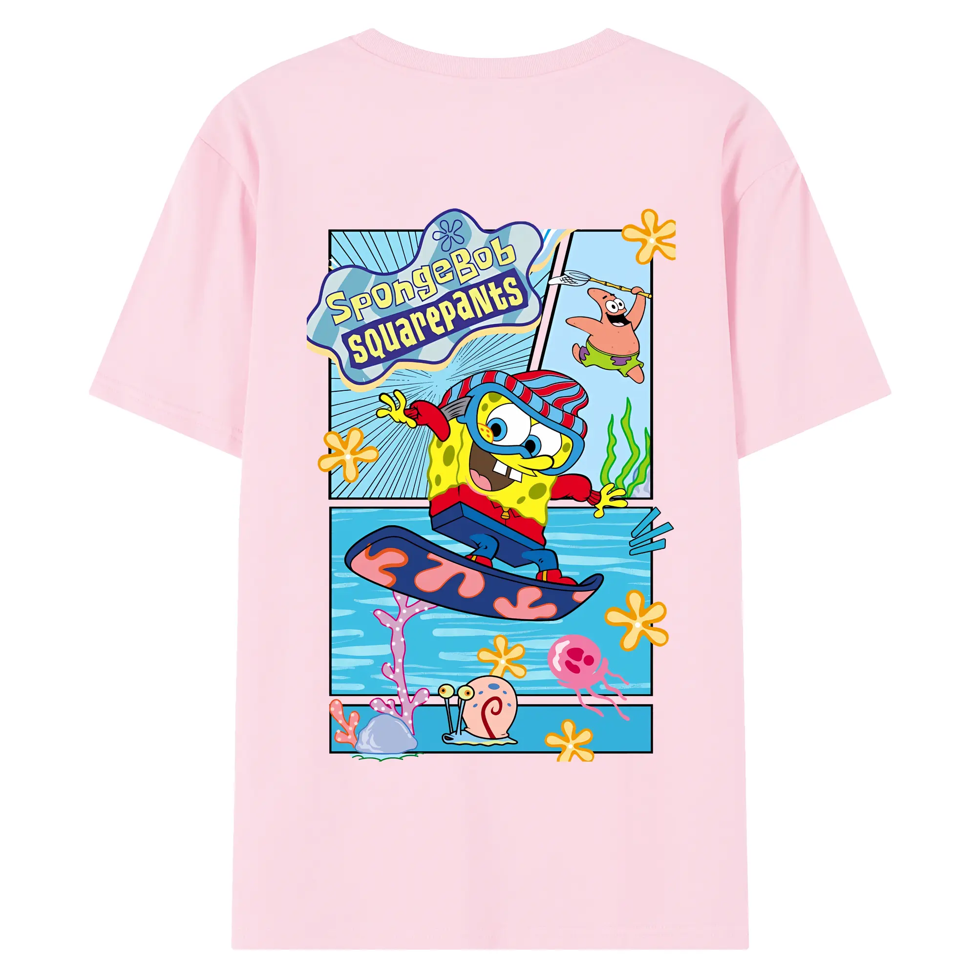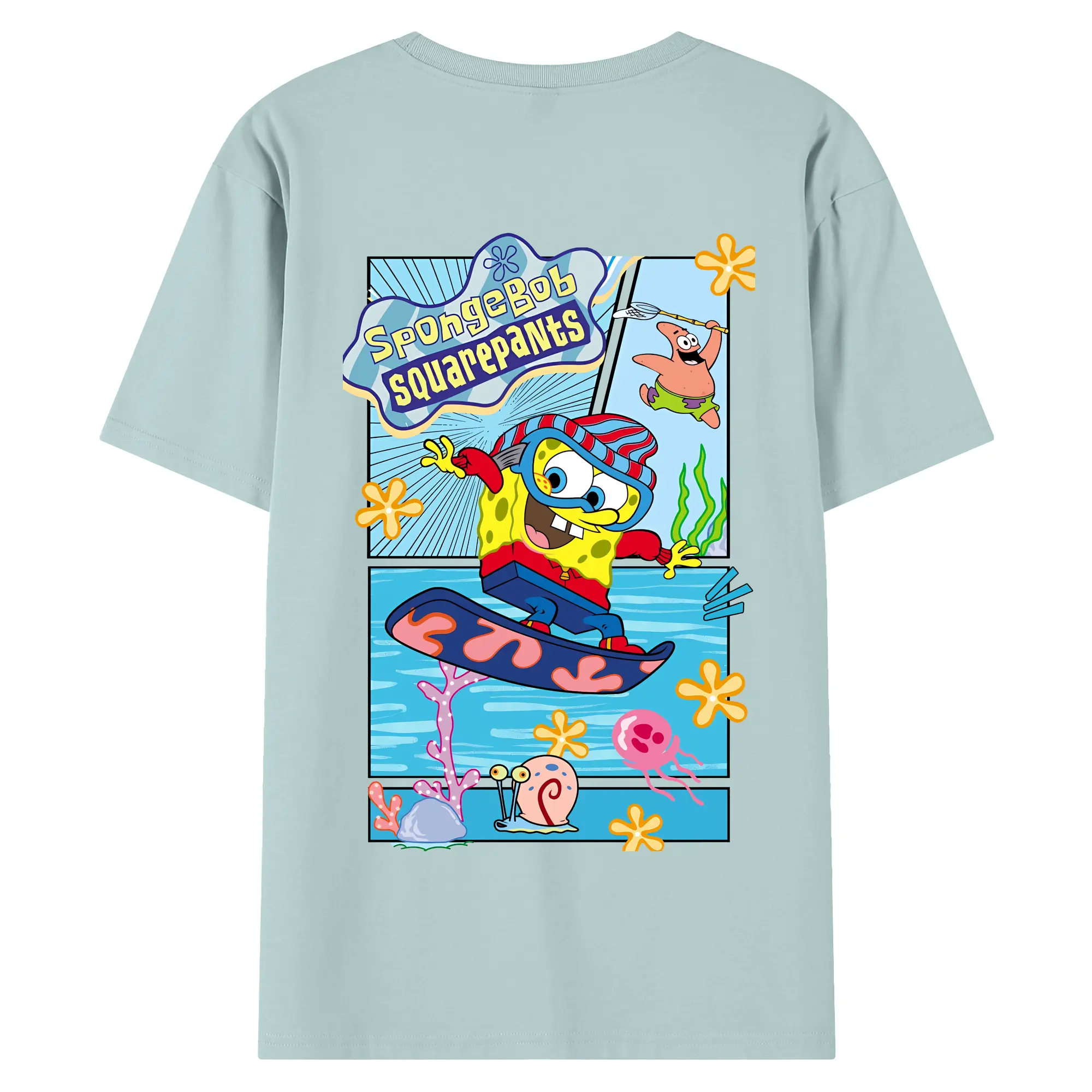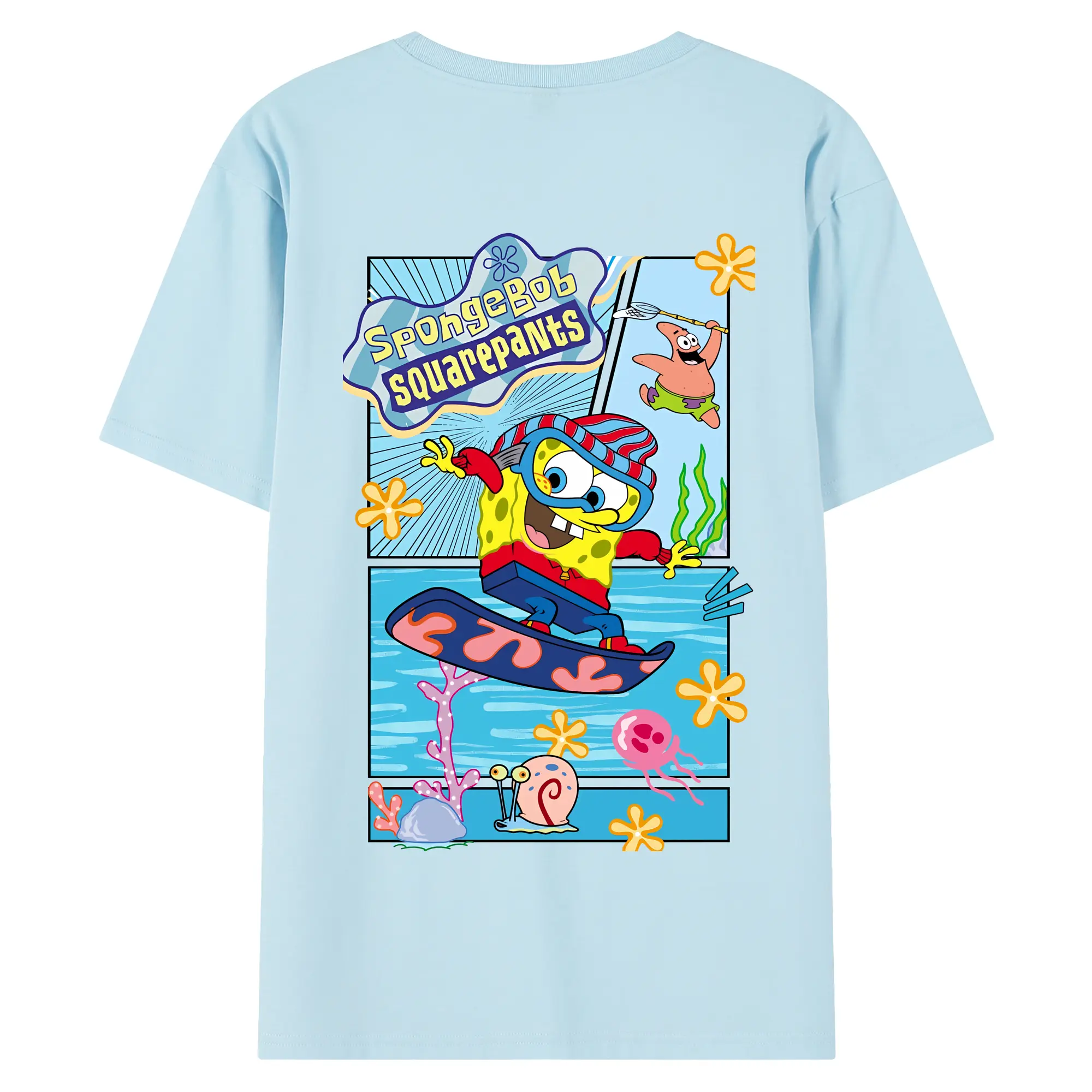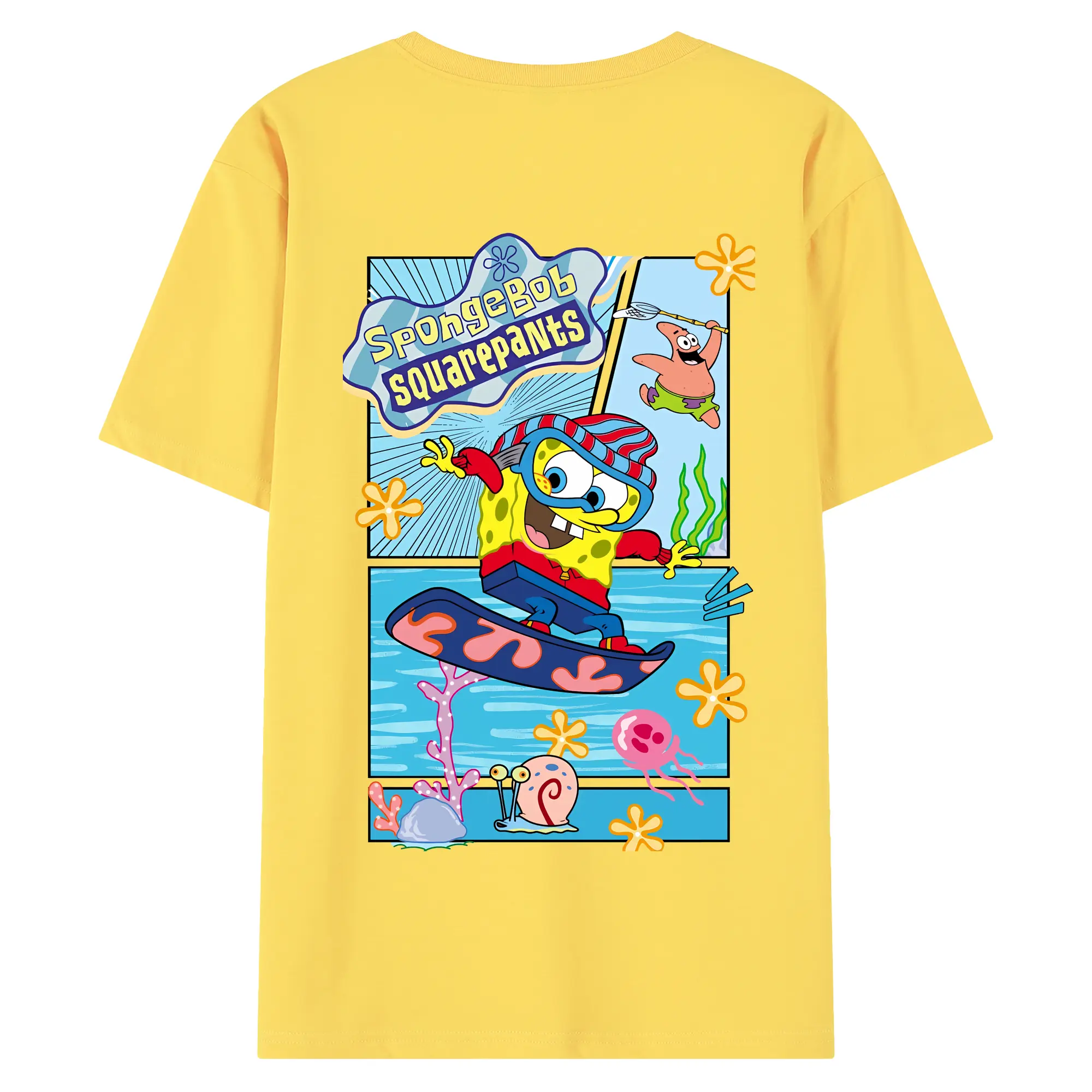 スポンジボブ グッズ スポンジボブ - 綿100% 半袖Tシャツ ・ フロントプリント ・ 快適 通気性 ・ 日常使い 散歩 スポーツ用