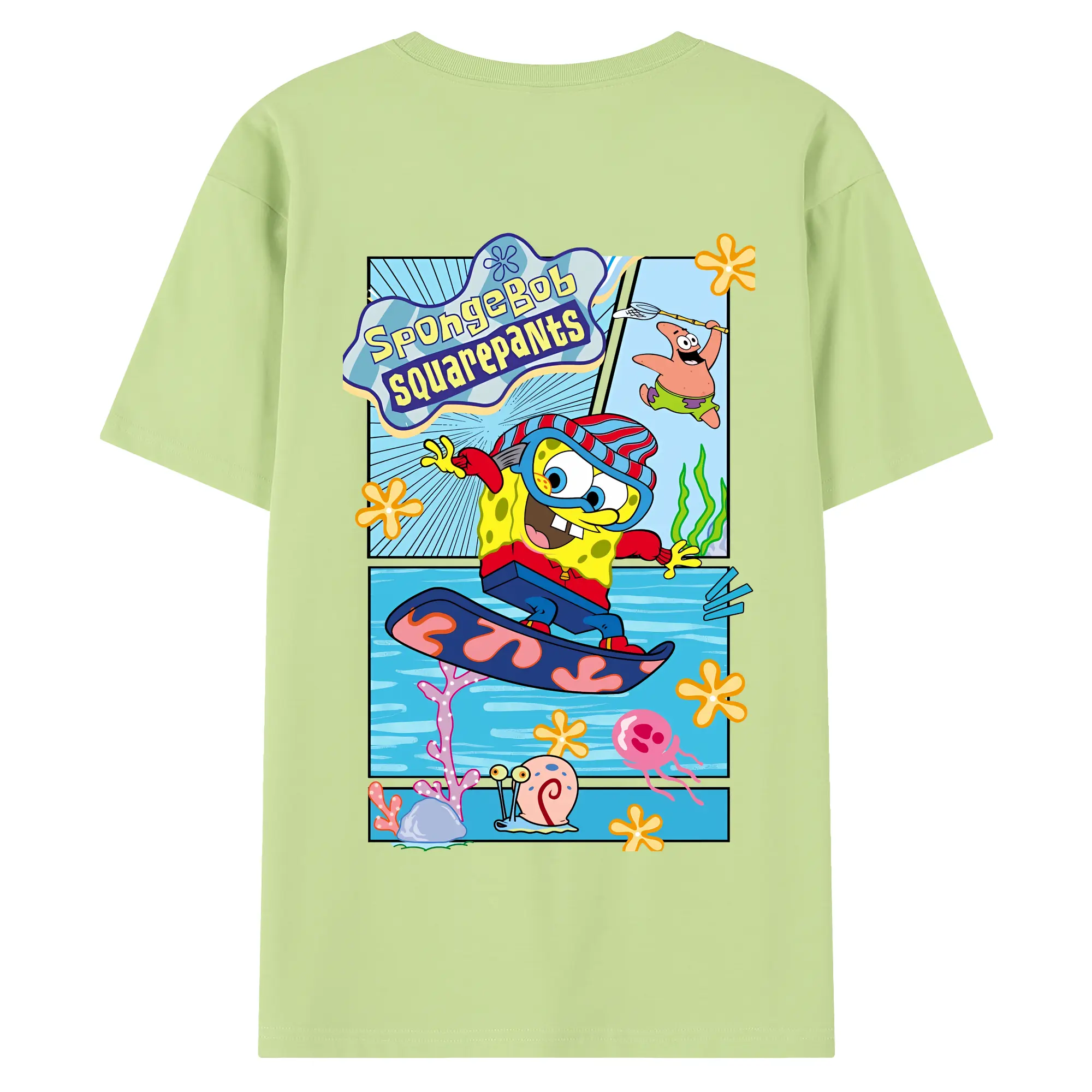 スポンジボブ グッズ スポンジボブ - 綿100% キッズTシャツ ・ フロントプリント ・ 快適 通気性 ・ スポーツ カジュアル 散歩用